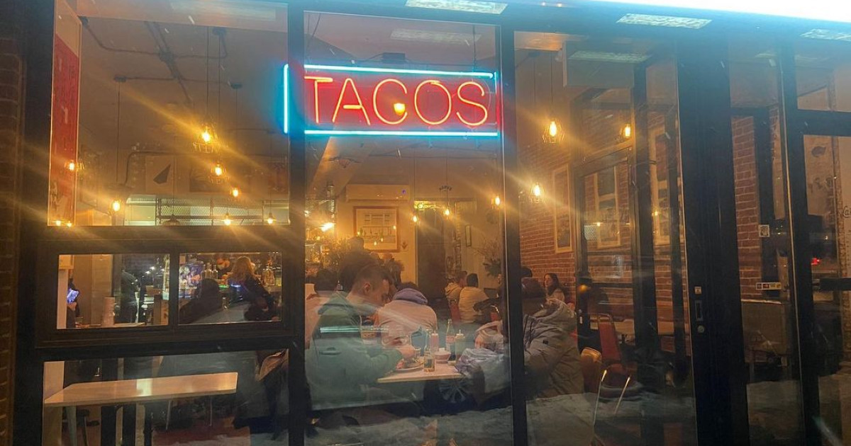 Mets mexicains dans un décor minimaliste aux murs de briques; ambiance décontractée.