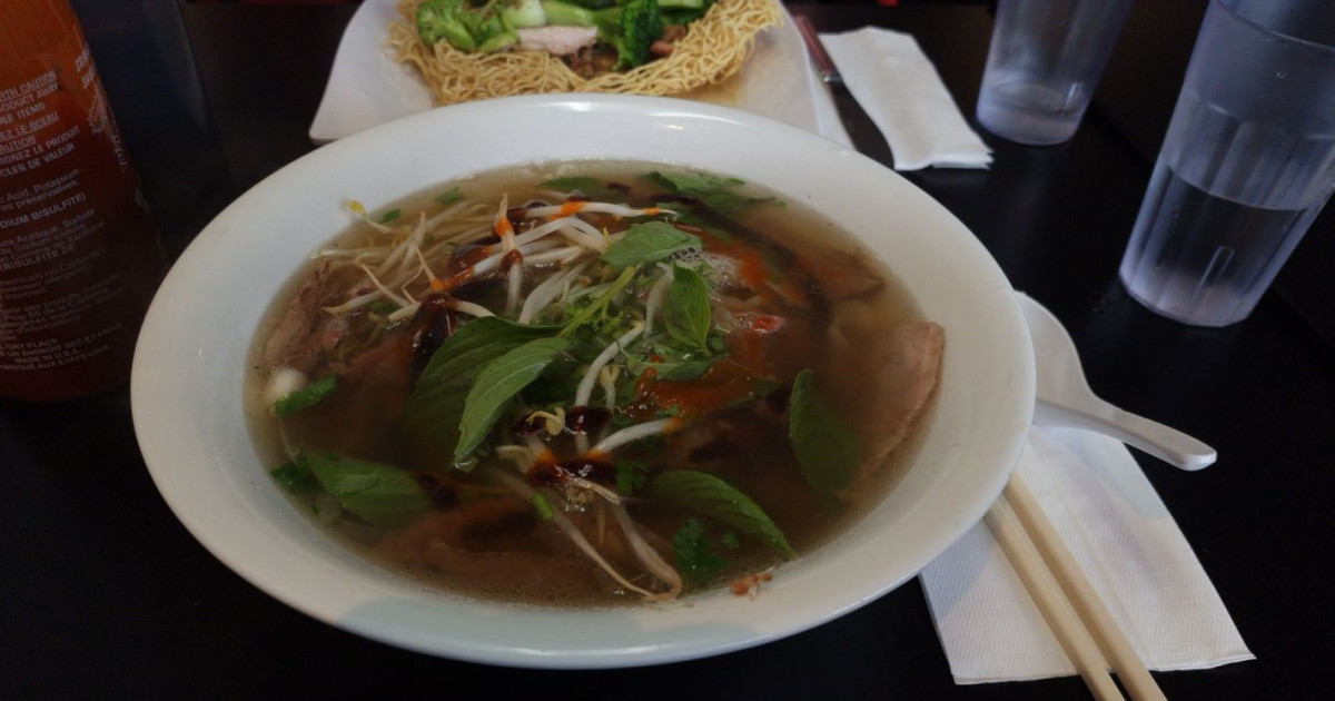 Restaurant de famille cosy situé dans un centre commercial servant des soupes phô et d'autres recettes vietnamiennes traditionnelles.