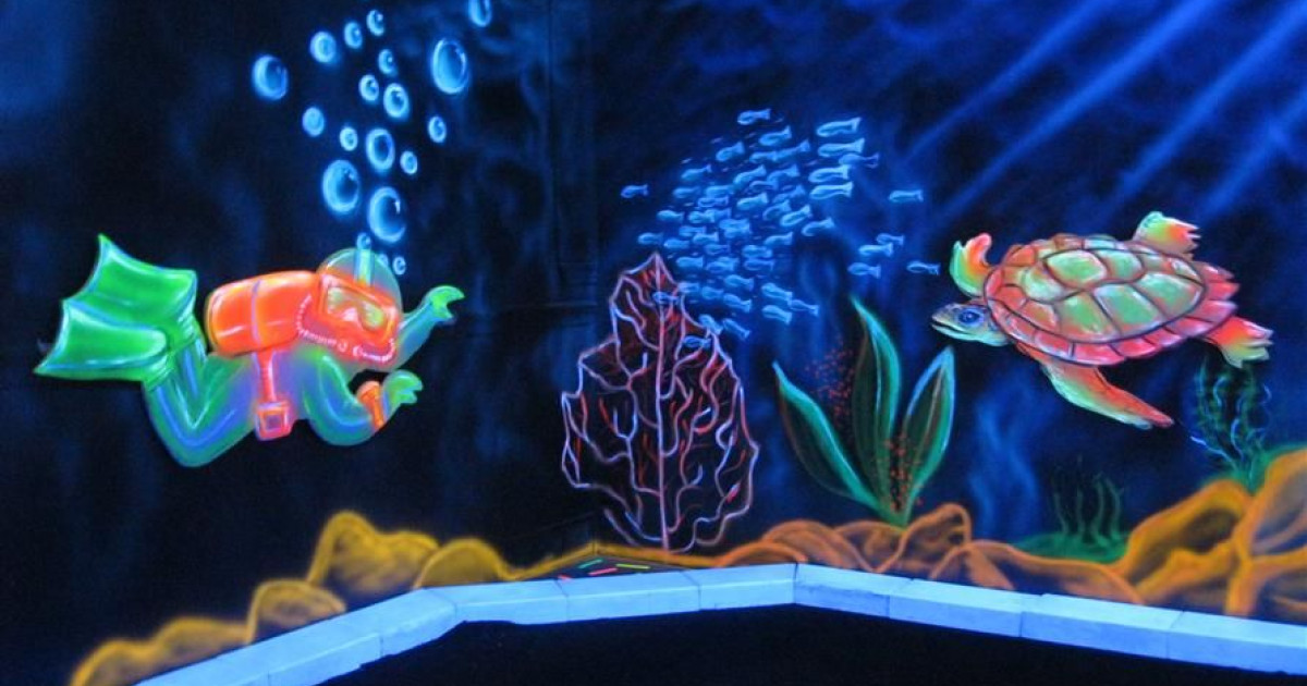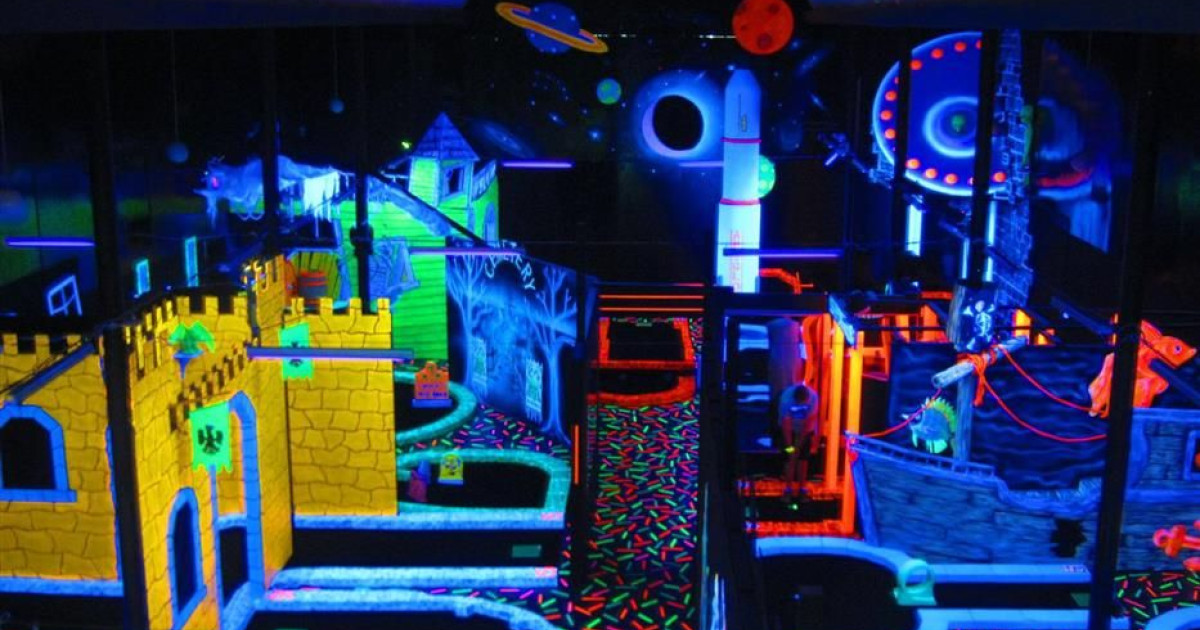 Situé dans une église réaménagée, GLO GOLF AVENTURES vous propose un parcours de 18 trous dans la noirceur, avec des décors 3D accentués par un éclairage de type « black light ». Notre trajet traverse des scènes fantaisistes, il vous fera voyager sous la mer, dans l’espace, traversant tantôt l’époque médiévale, tantôt le Musée des horreurs. Dépaysement garanti!