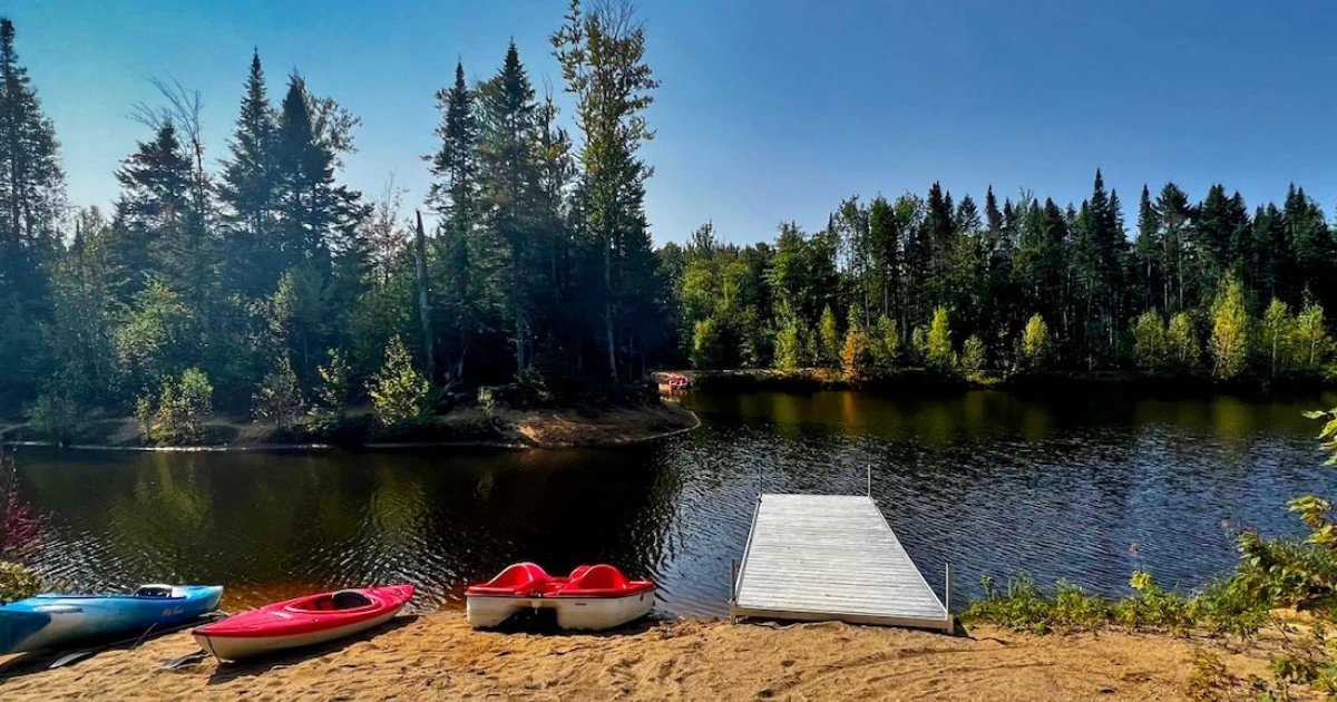 Situé sur un terrain bien boisé, ce chalet est au bord du Lac des Cerfs, et est conçu pour 2 à 8 personnes.