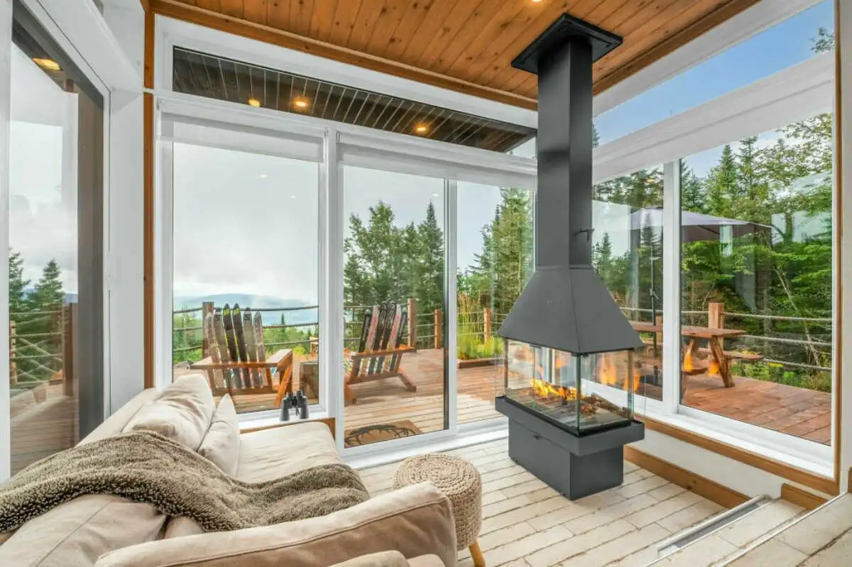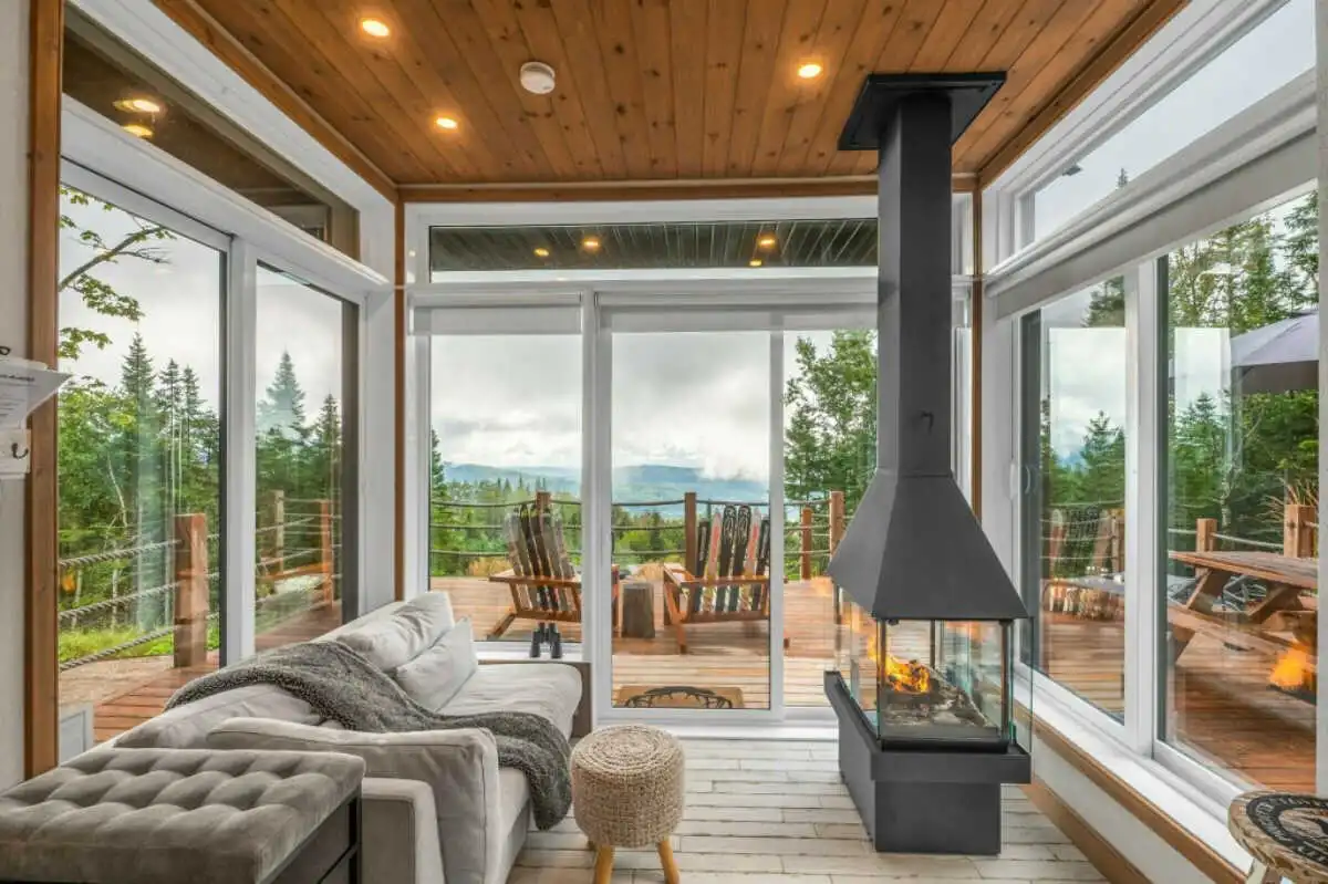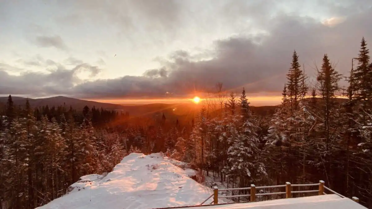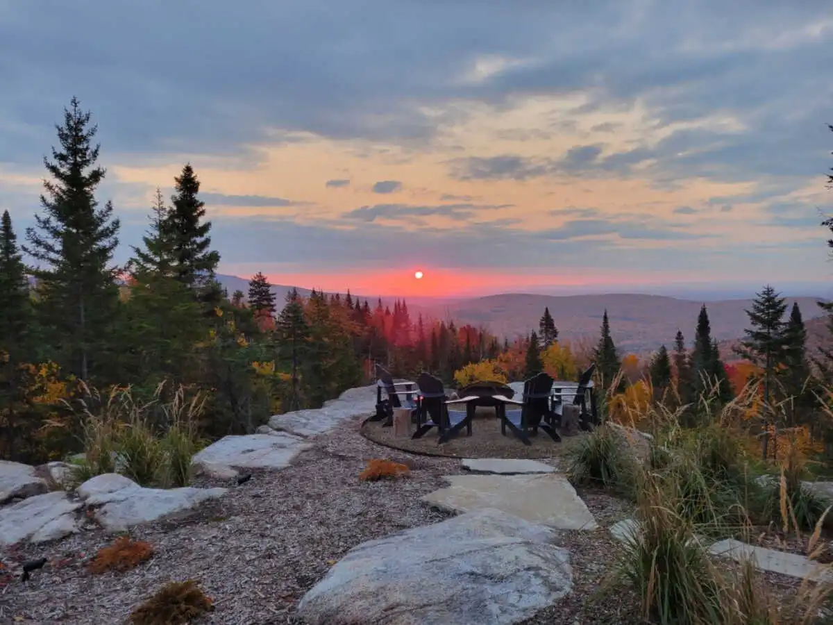 Profitez de magnifiques levers de soleil et d’une vue splendide sur les montagnes et, au loin, le fleuve Saint-Laurent.