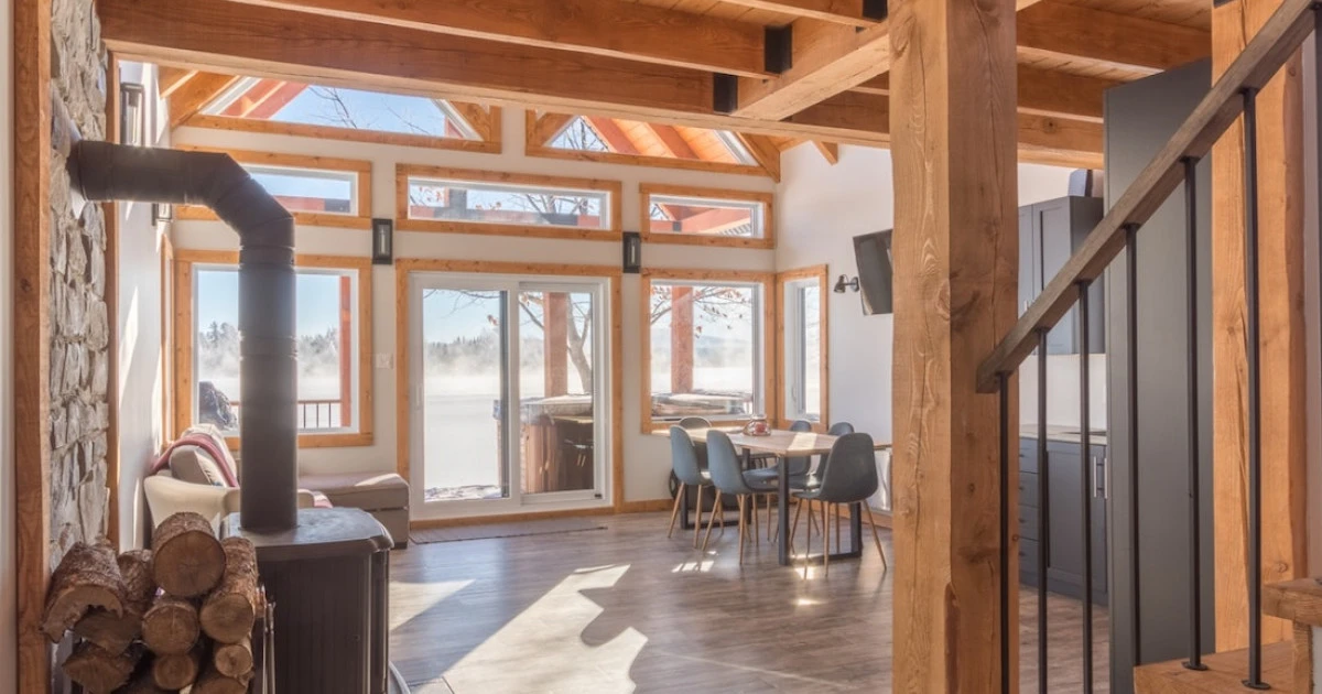 Grâce à ses grandes baies vitrées et sa proximité avec le lac, vous aurez l’impression de vivre dehors tout en étant confortablement installé.