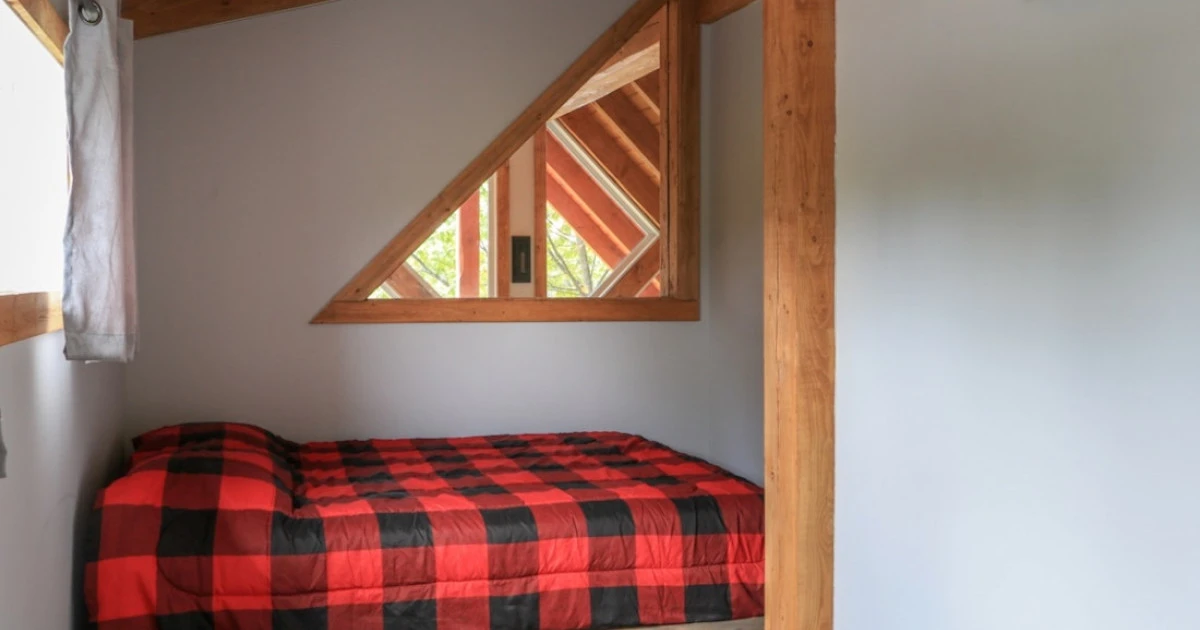 À l’étage : 2 chambres fermées avec lits Queen, lumineuses et chaleureuses