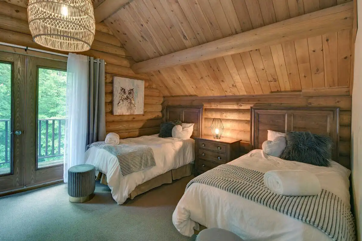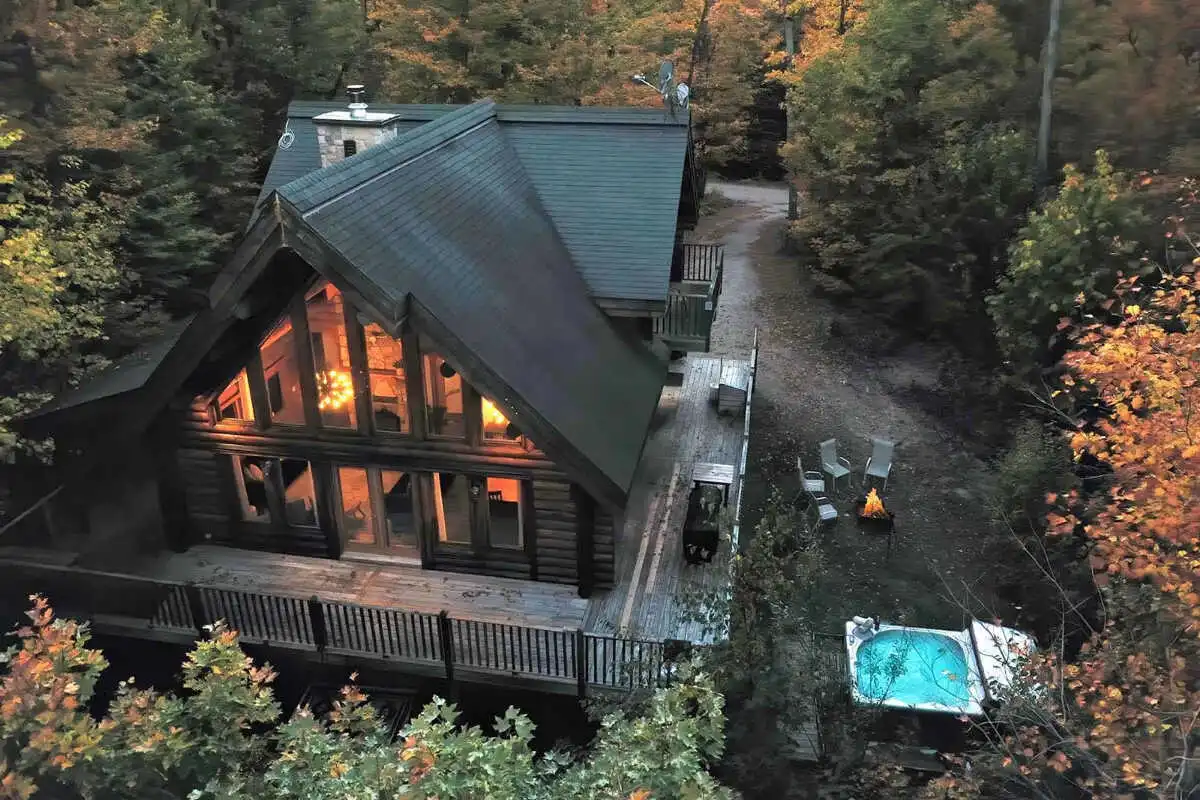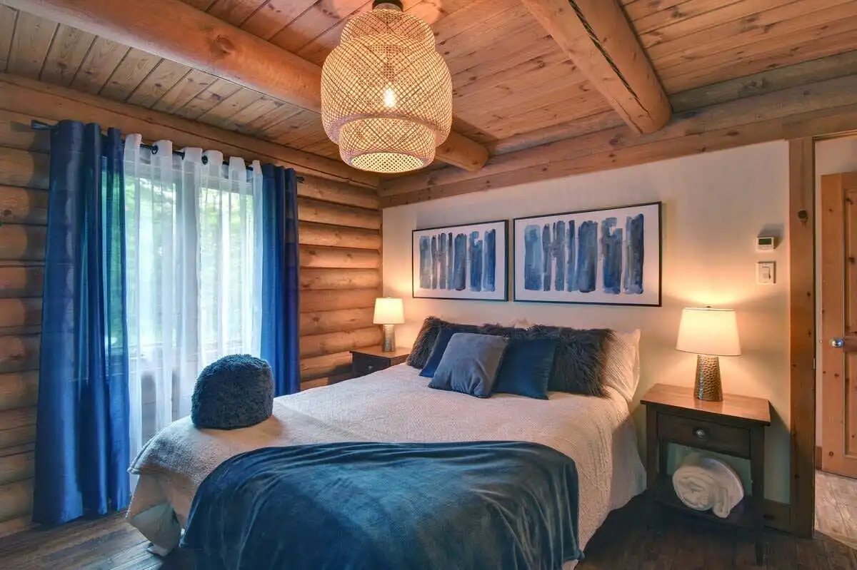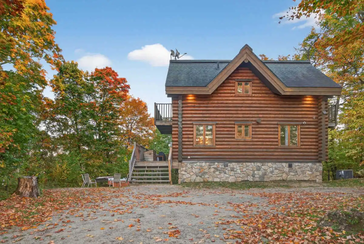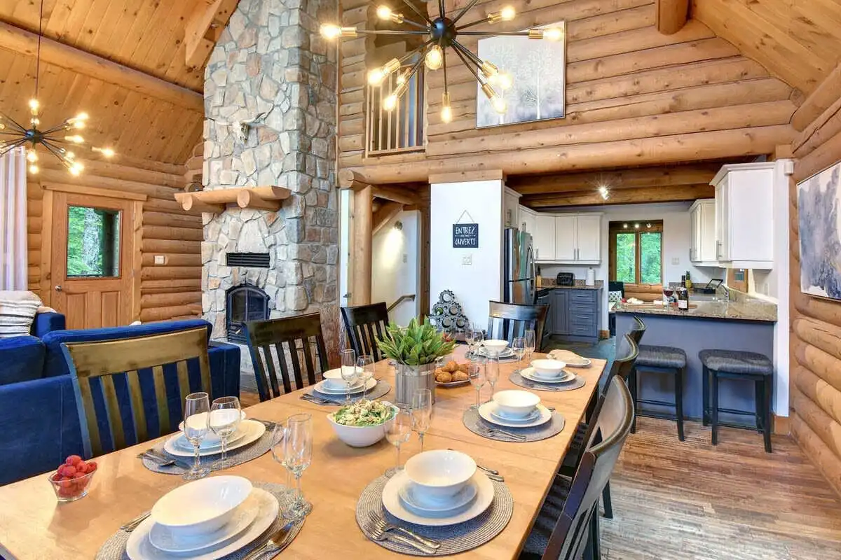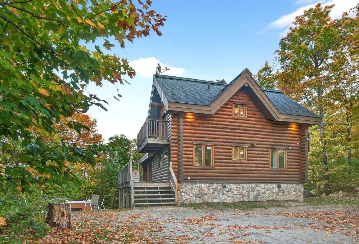 De véritables bûches luxueuses. Vous pourrez vous détendre dans le spa ouvert toute l’année réservé à votre groupe. Le chalet est situé à seulement 30 minutes de Mont-Tremblant et à 15 m. en voiture d’une belle plage de sable.