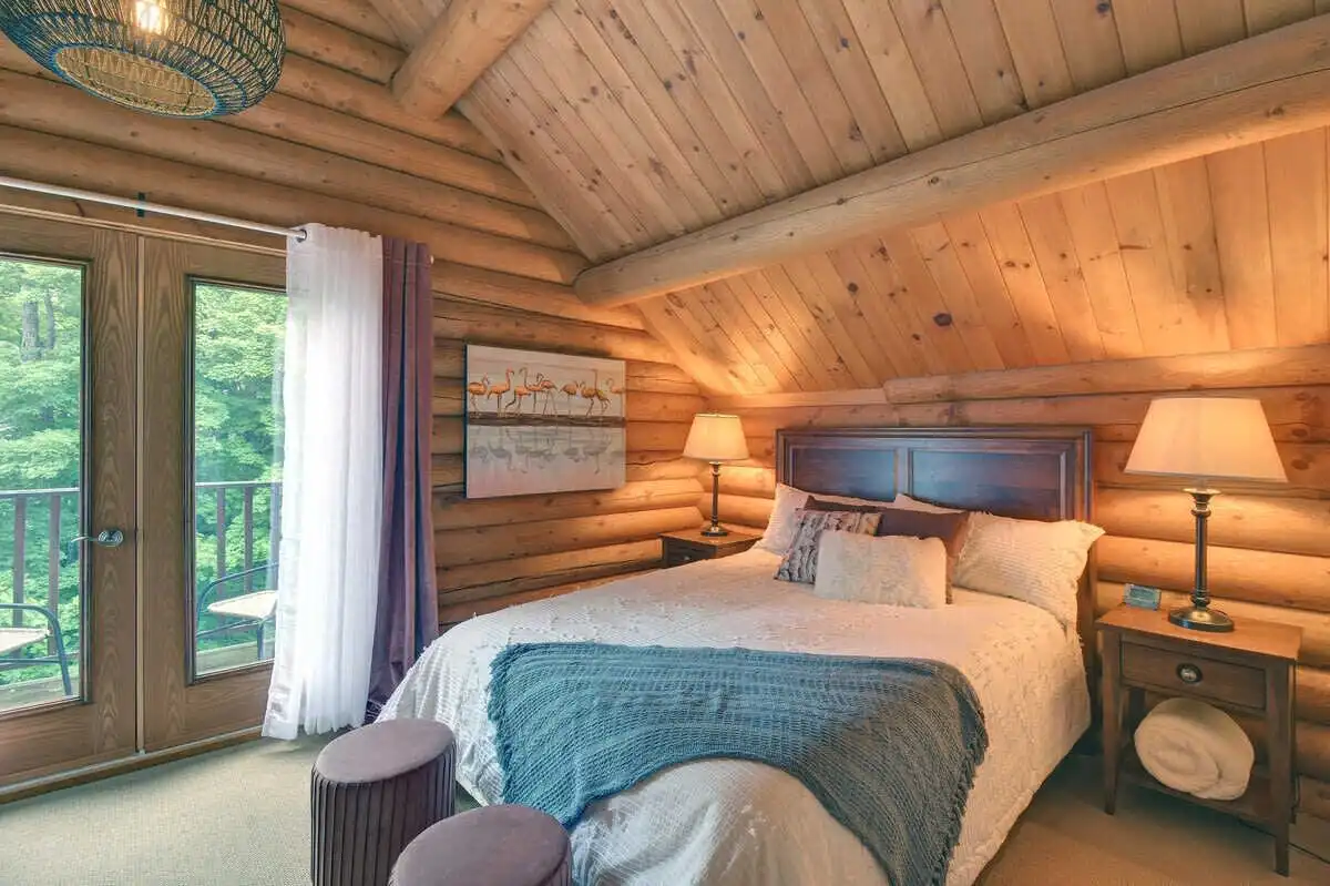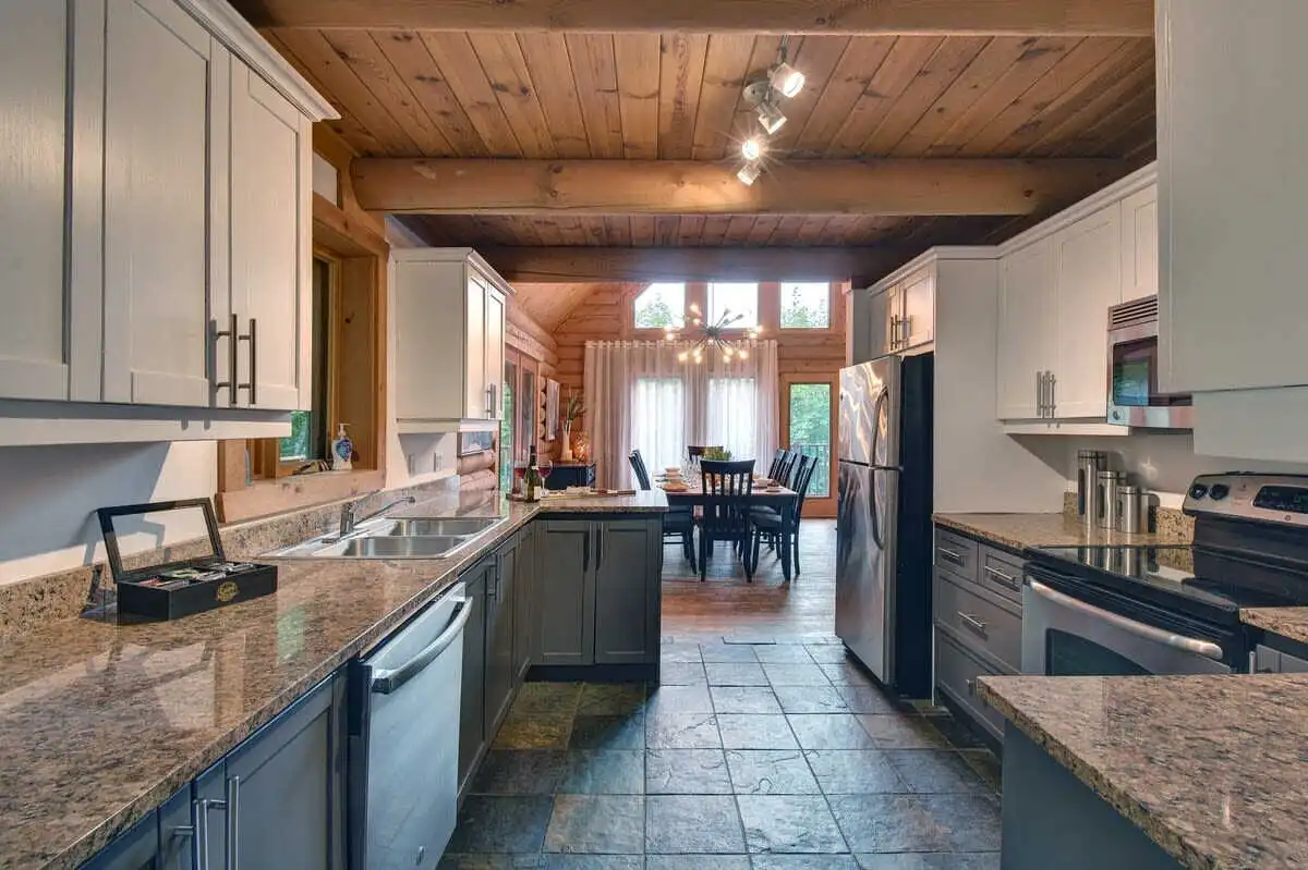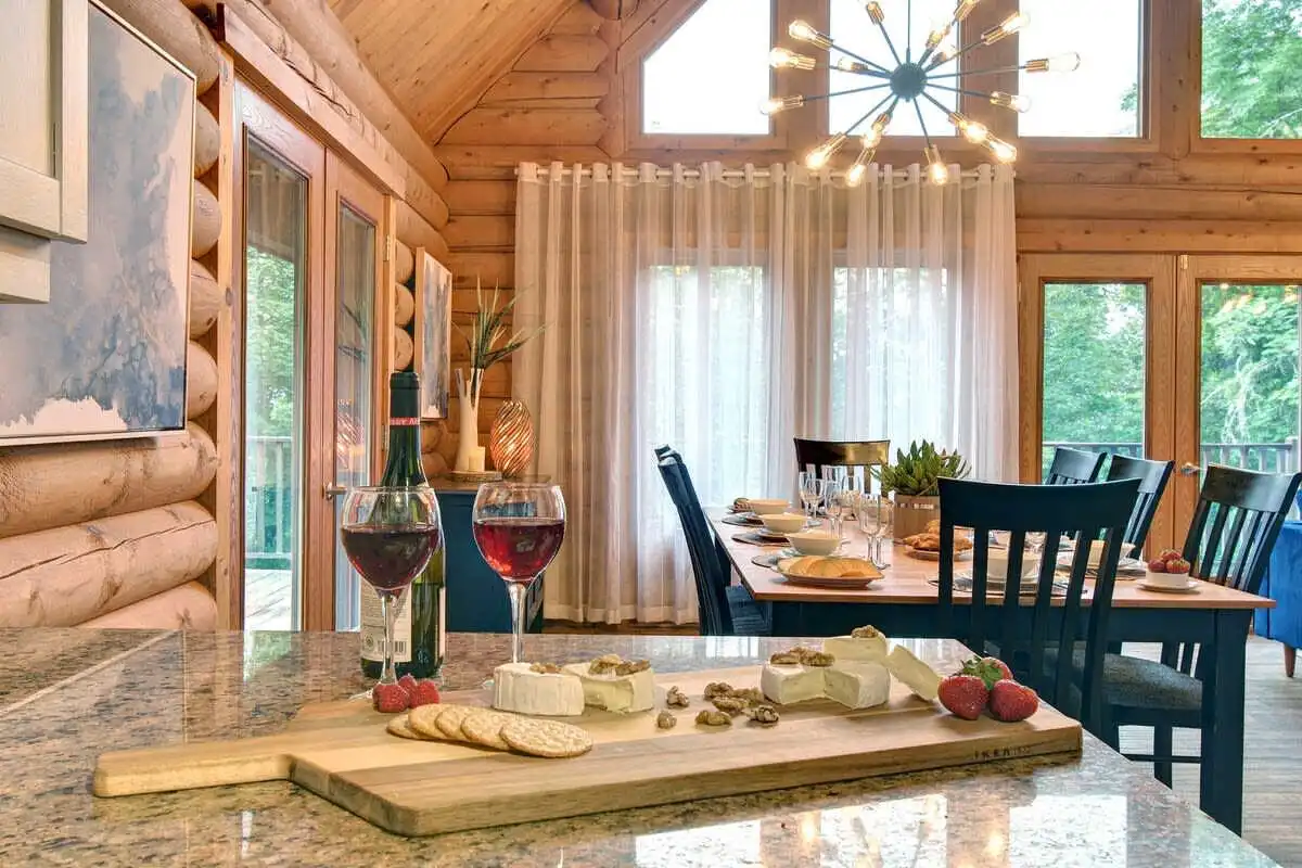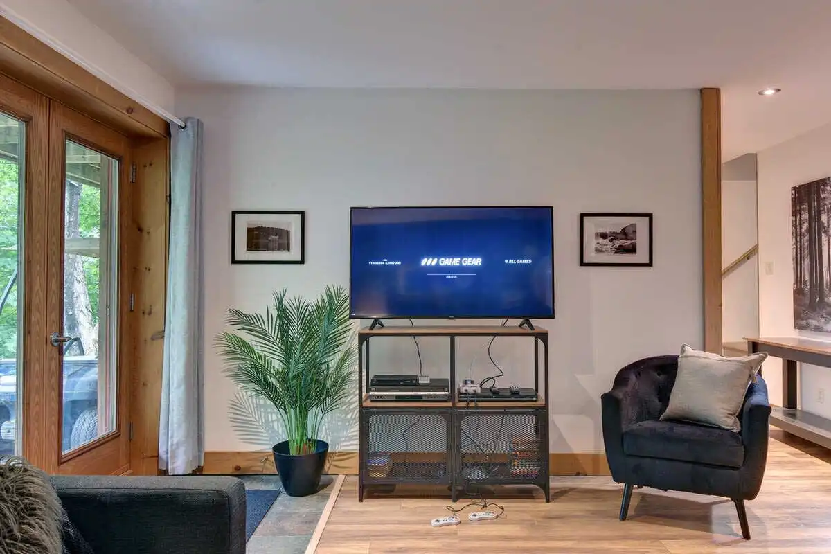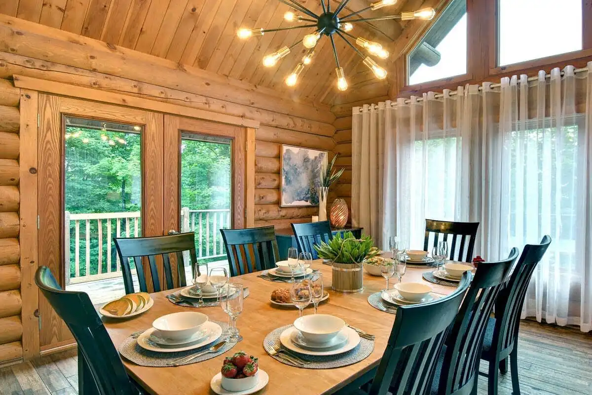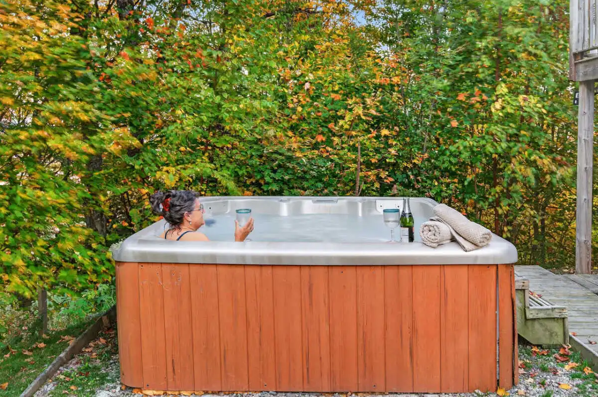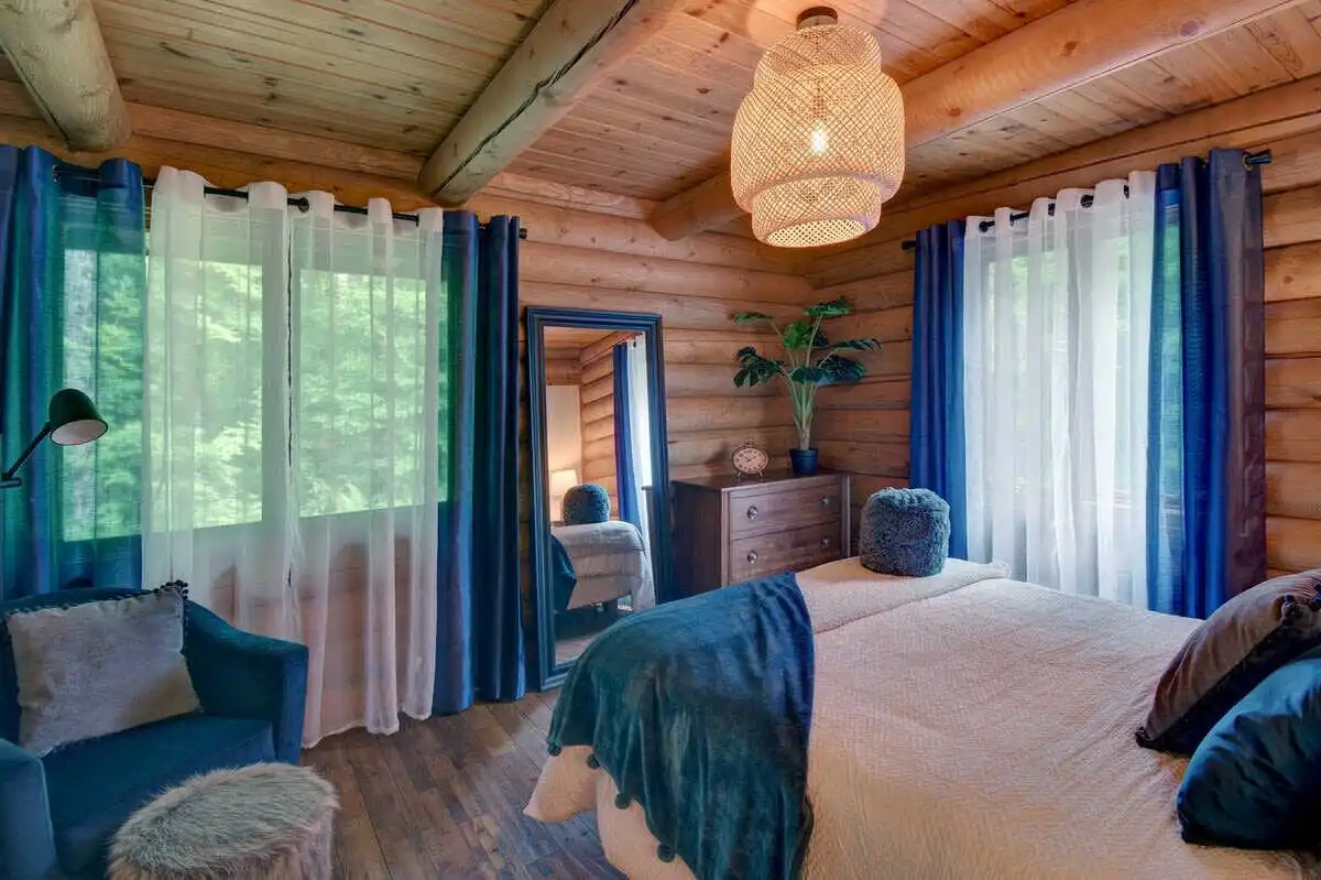 De véritables bûches luxueuses. Vous pourrez vous détendre dans le spa ouvert toute l’année réservé à votre groupe. Le chalet est situé à seulement 30 minutes de Mont-Tremblant et à 15 m. en voiture d’une belle plage de sable.