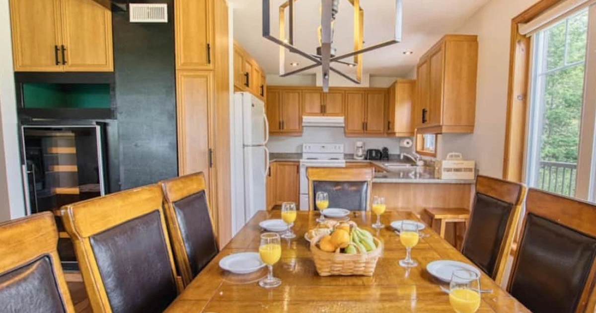Découvrez le Chinook et Mistral, où l'atmosphère est paisible et les nombreuses fenêtres offrent une vue magnifique sur les arbres. Le salon, avec son foyer au bois, dégage une chaleur réconfortante et vous apprécierez également la touche classique de la cuisine, dont les tons boisés s'harmonisent parfaitement avec la table de la salle à manger. Pouvant accueillir jusqu'à 20 personnes, ce chalet jumelé est idéal pour les réunions de famille ou des vacances entre amis. Équipé d... Lire la suite
