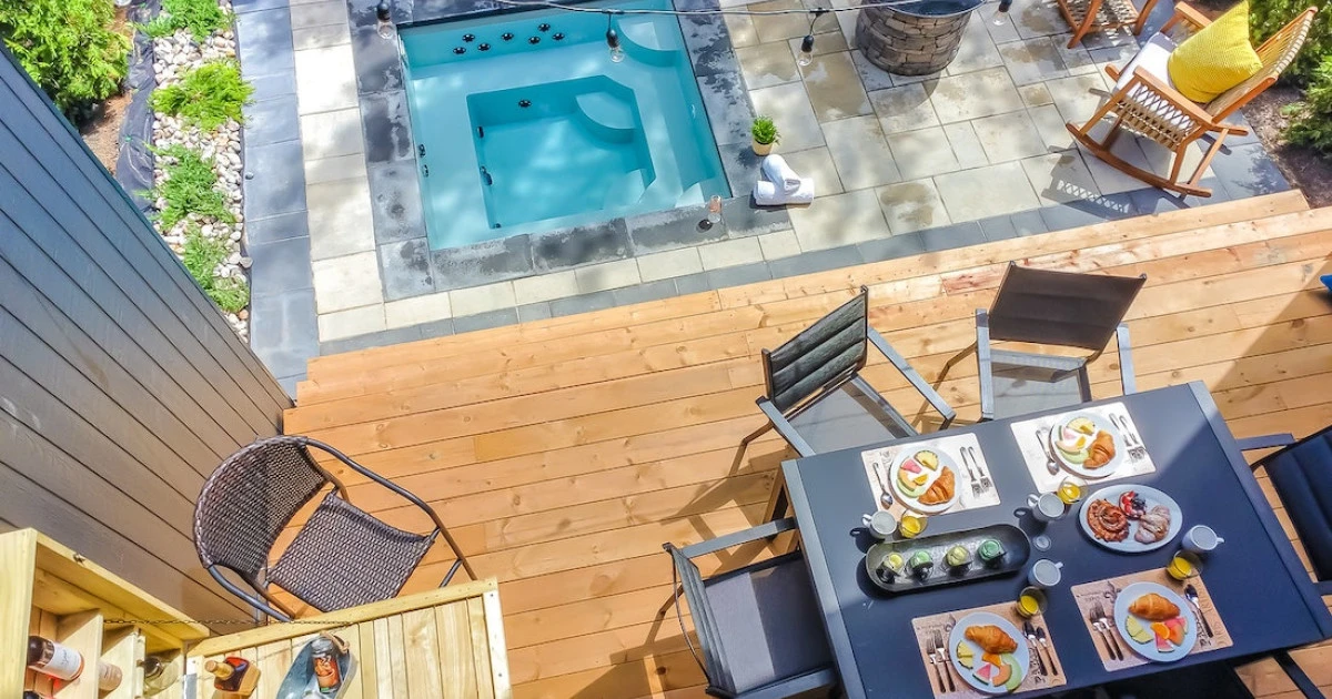Les espaces communs du site (spa, piscine, sauna) sont partagés avec d’autres voyageurs