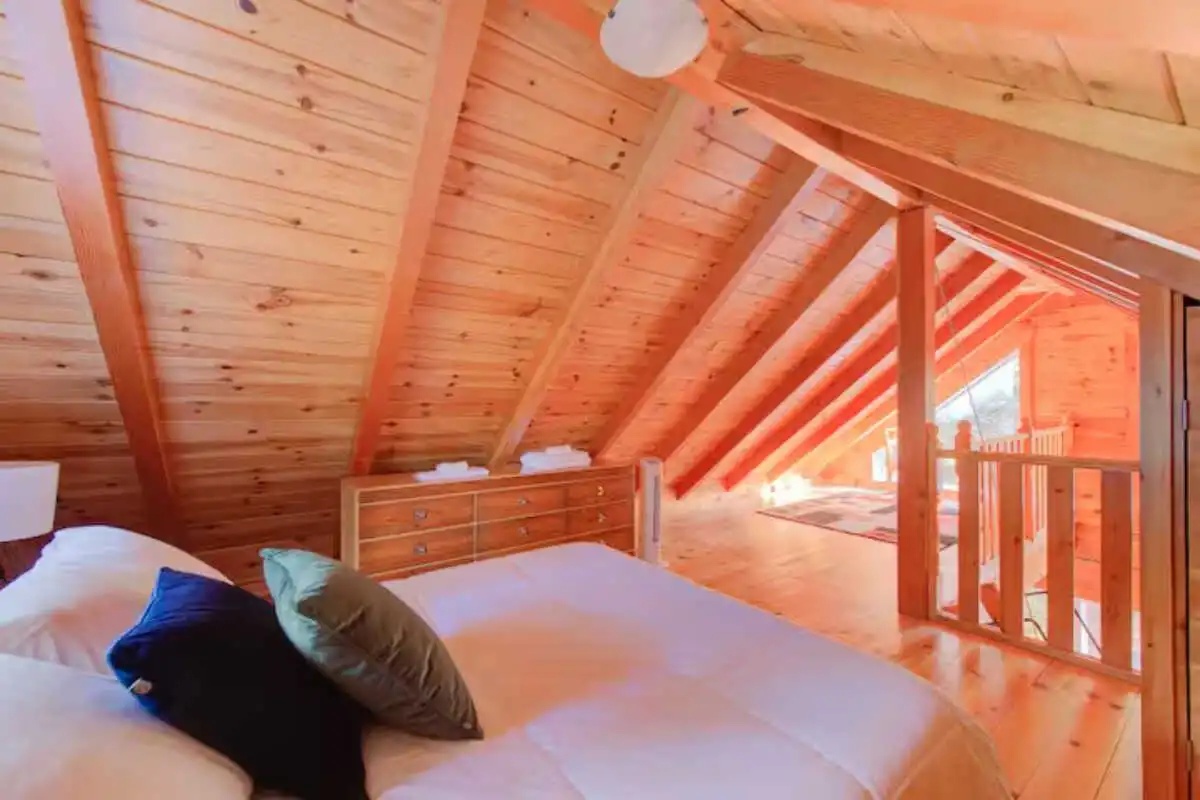 Ce chalet en bois avec toit cathédrale est niché au cœur de la nature et offre un cadre idyllique pour un séjour mémorable en famille ou entre amis.