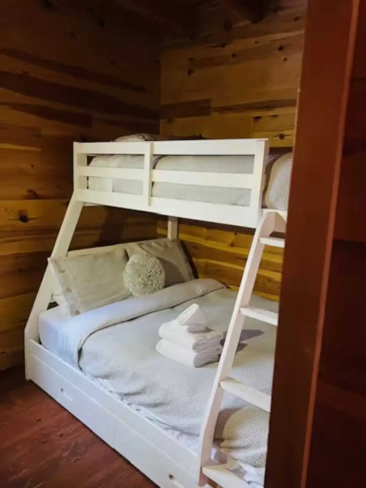 Le Chalet Sherwood #4 comprend une mezzanine pour la chambre principale avec un lit Queen, une chambre avec un lit superposé ( 1 matelas double et 1... Lire la suite