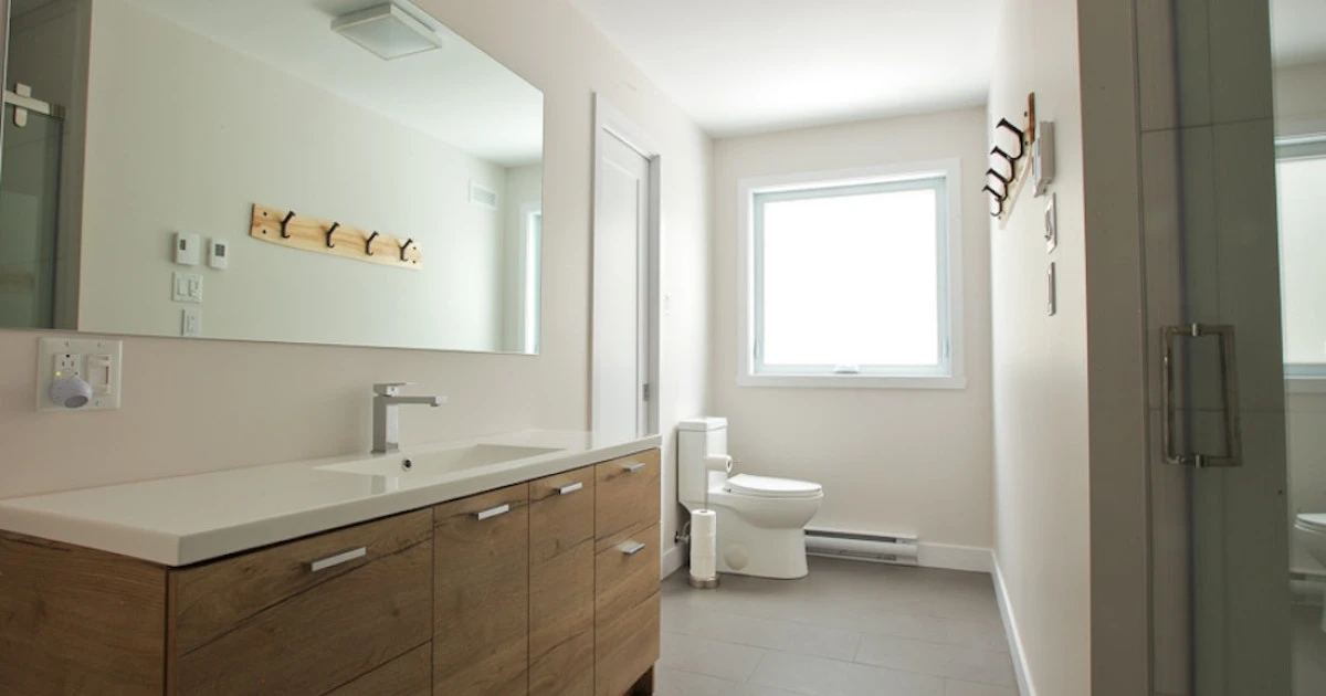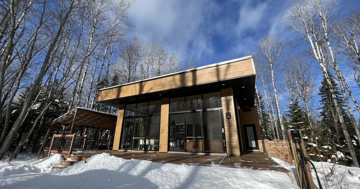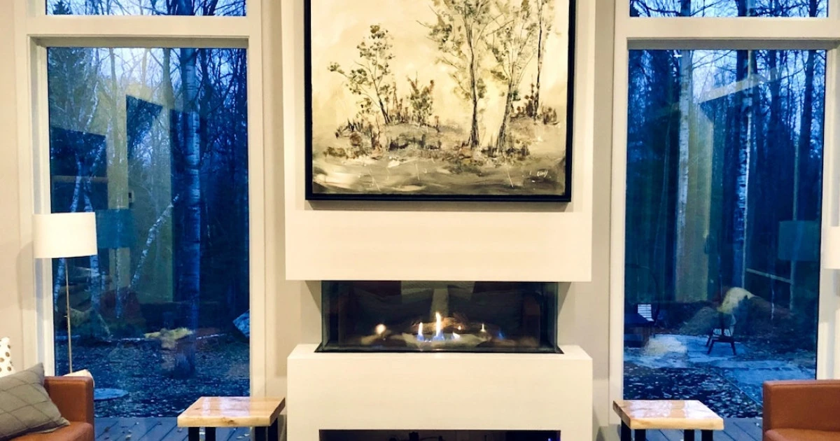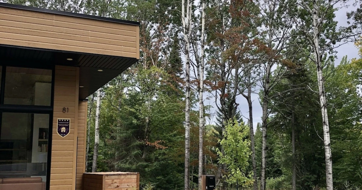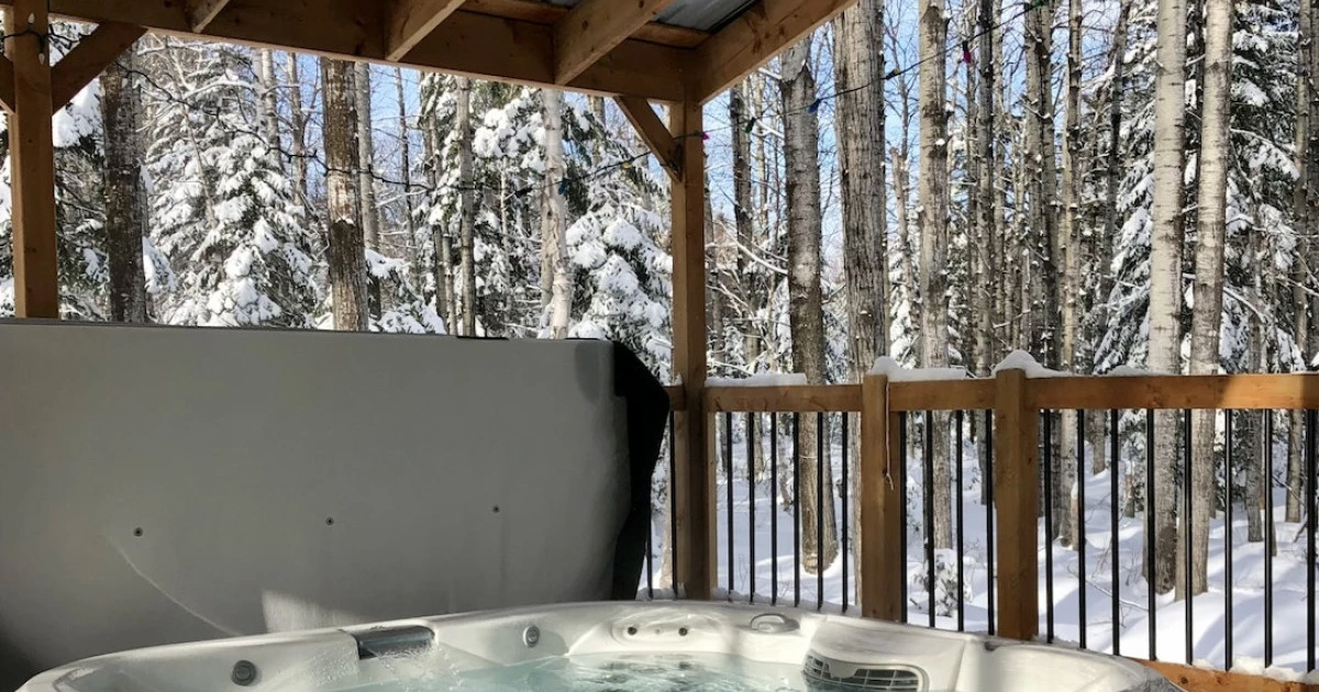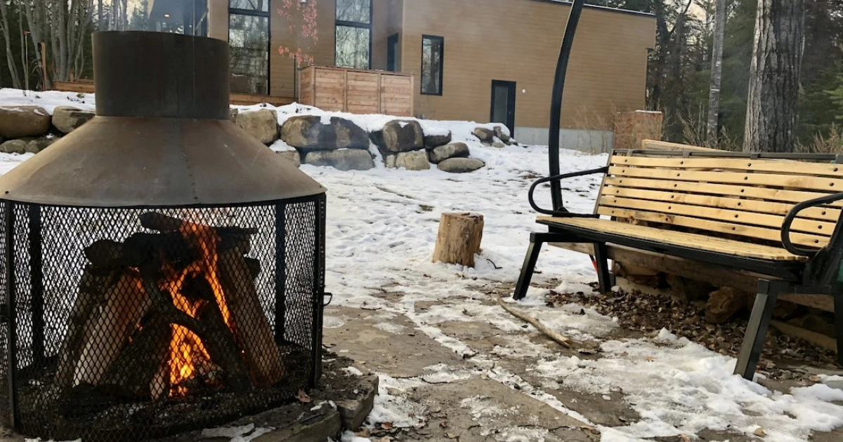 Venez vous ressourcer dans la nature et profitez de cette somptueuse résidence. Elle dispose de trois chambres, de six lits et peut accueillir jusqu'à huit voyageurs. La cuisine très moderne est à la fois fonctionnelle et esthétique. Avec ses armoires foncées, elle contraste parfaitement avec le plafond en lattes de bois clair. Le salon est chaleureux et invitant avec son foyer au gaz et ses deux immenses fenêtres qui innondent la pièce de lumière naturelle.