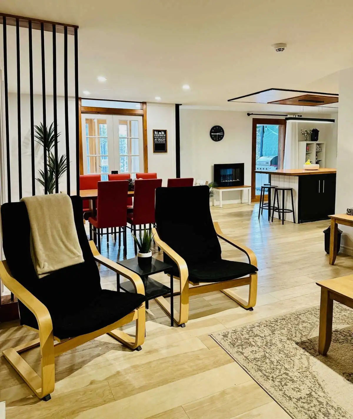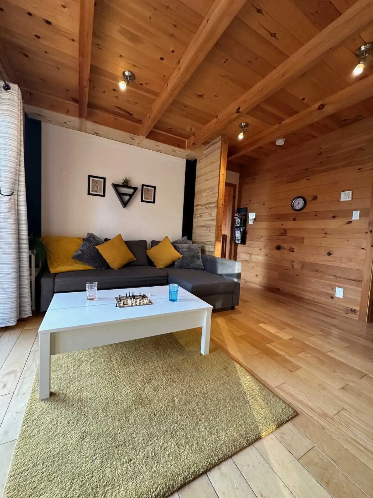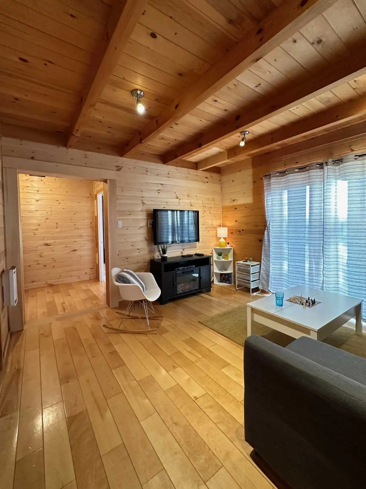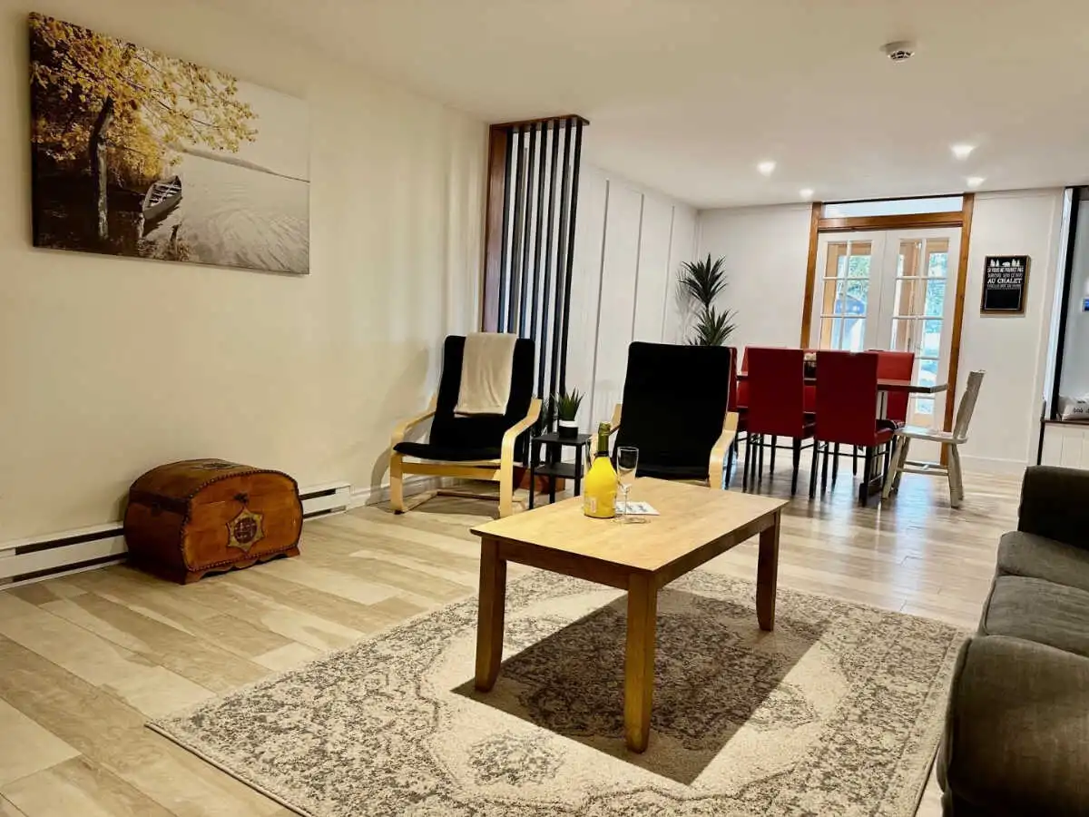 Le Chalet Rustique Moderne Détente, le coin de paradis parfait pour des vacances mémorables en famille ou entre amis au cœur de Pohénégamook. Avec une capacité d'accueil jusqu'à 12 personnes (8 adultes et 4 enfants), ce chalet allie avec brio charme rustique et touches modernes pour vous offrir un séjour chaleureux.
