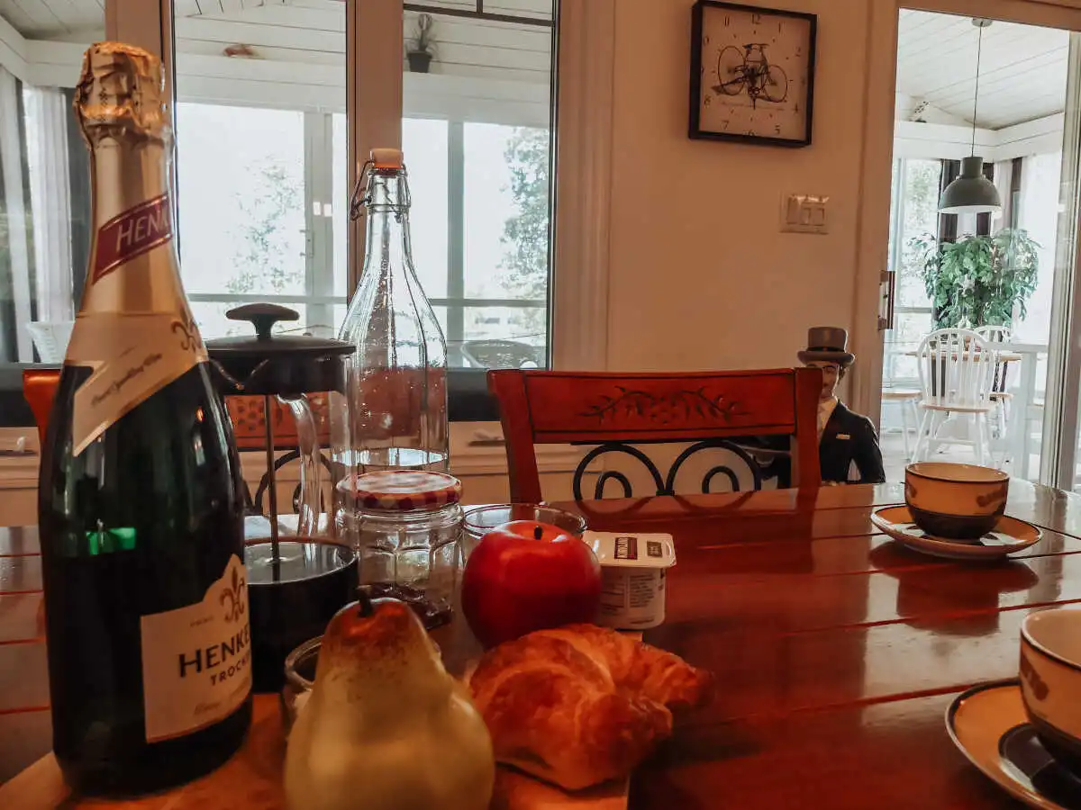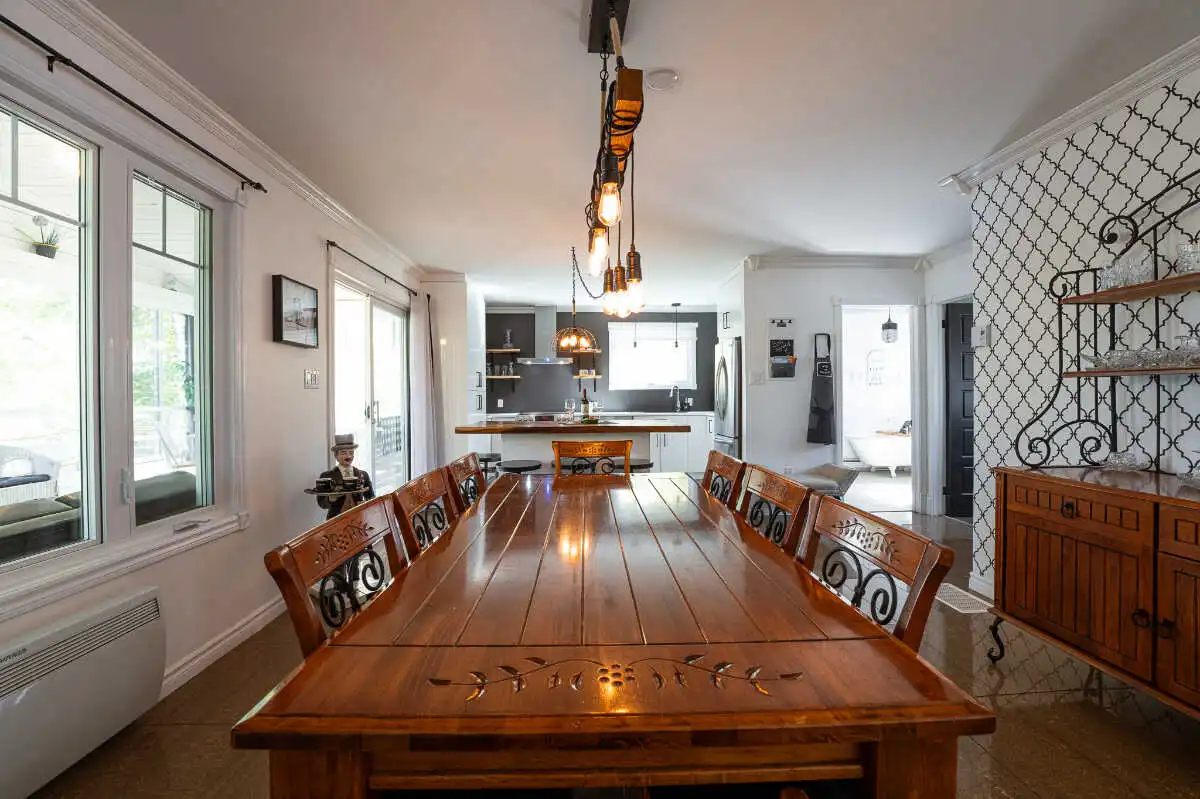 la table de la salle à manger ainsi que sur les tables de la verrière.