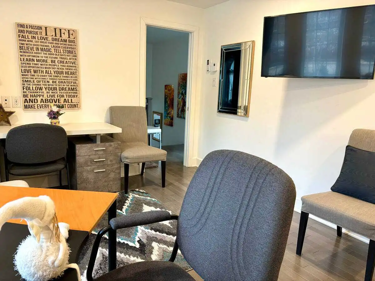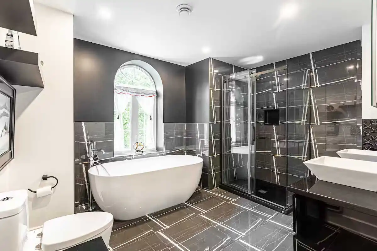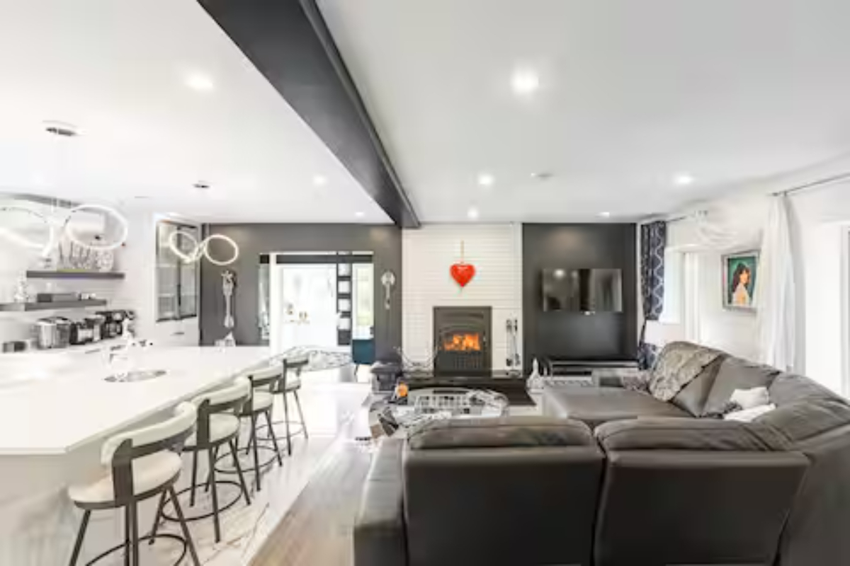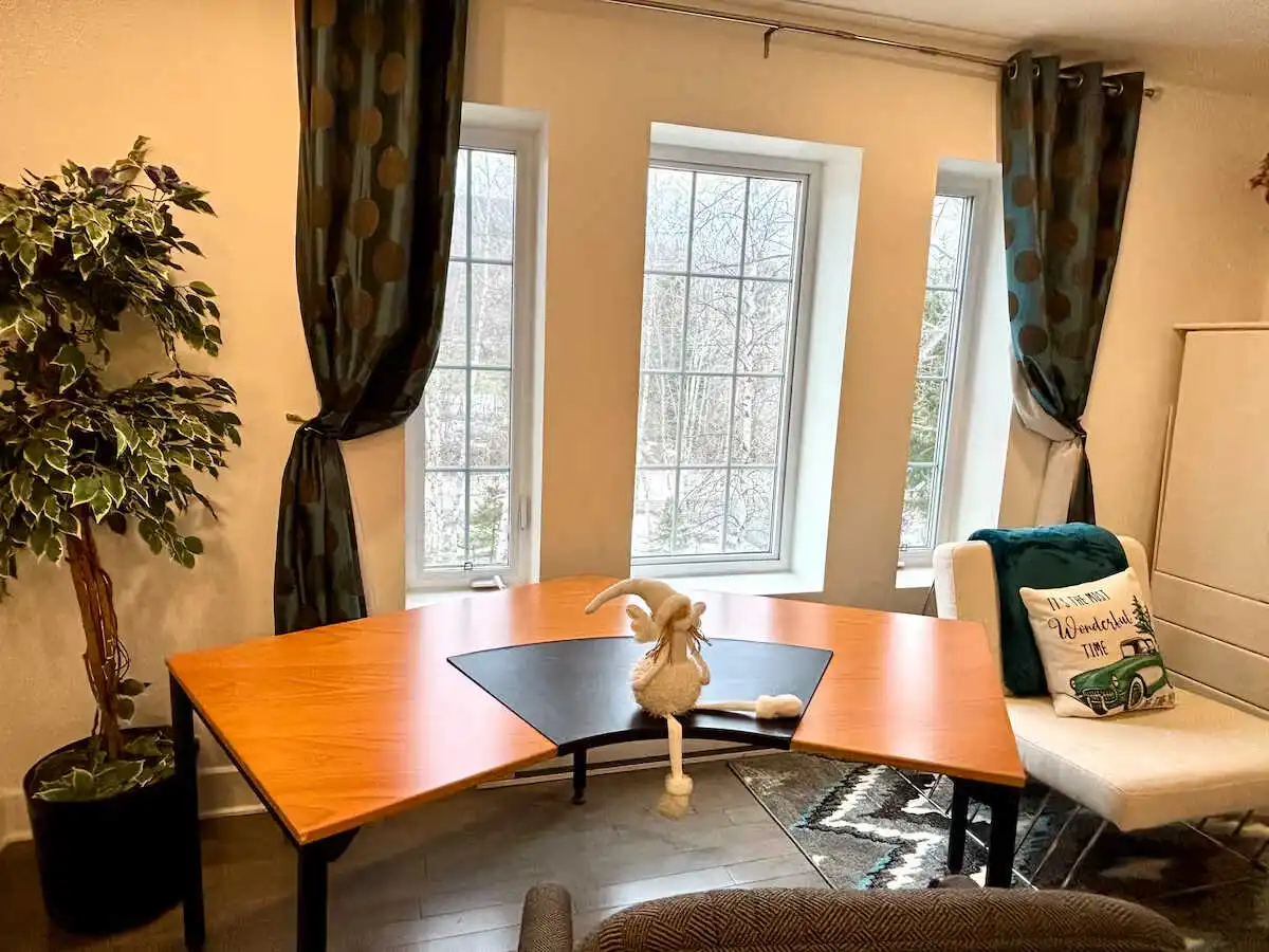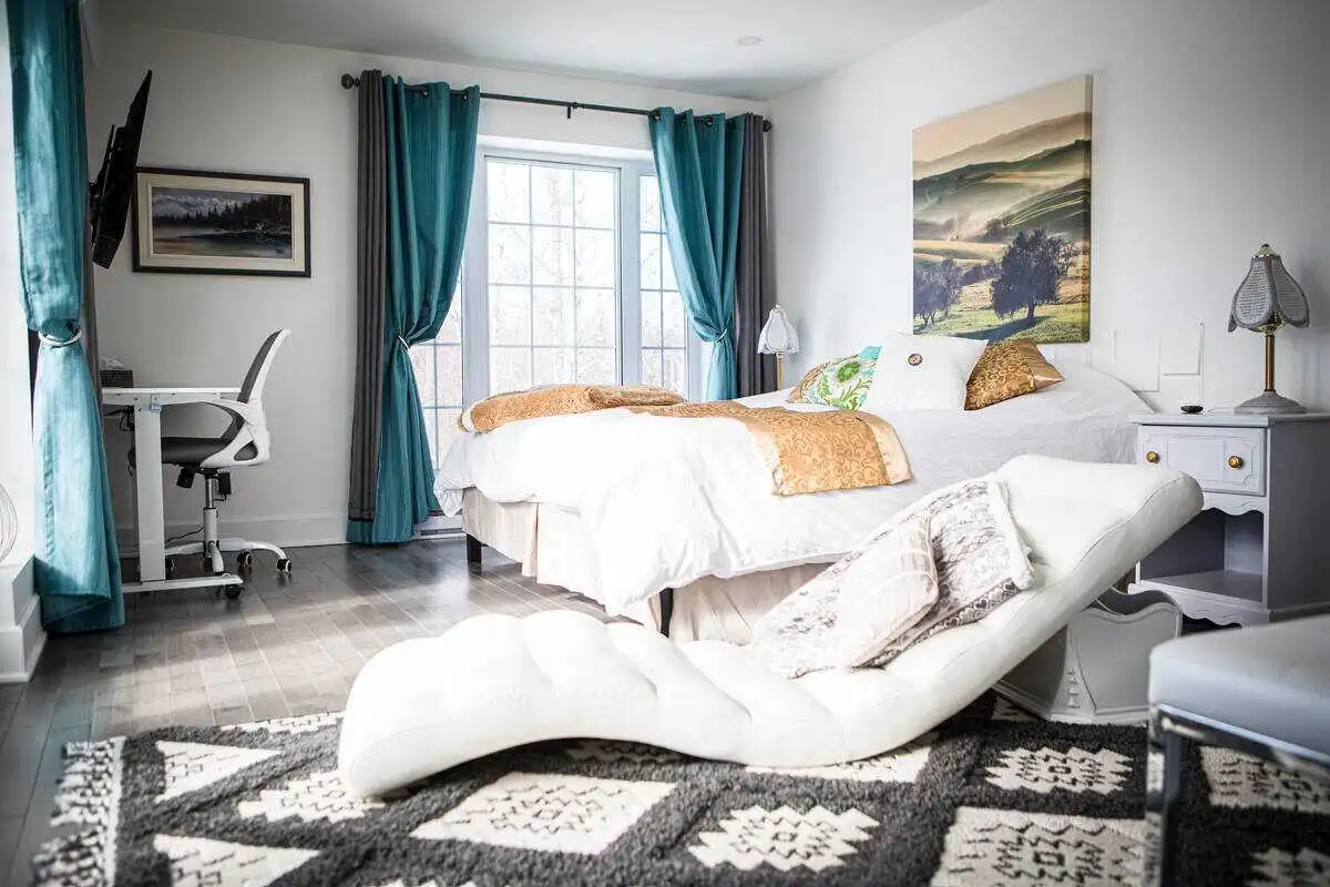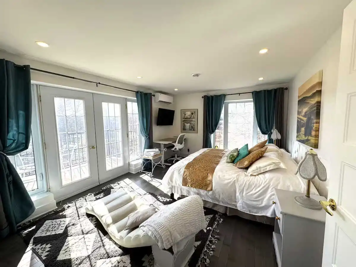 Notre calme villa, en face de la piste cyclable l'Estriade et du Mont Bromont est à 10 min des terrains de golf, du Parc Équestre, de la station de Ski de Bromont et de la plage de Waterloo. Détendez-vous dans le boudoir vitré, le Jacuzzi (SPA) ou sur l'une des 4 terrasses de la propriété avec des vues sur le mont Bromont! Le Chalet l'Abondance de 3 chambres, 3 salons, 3. 5 salles de bains et 3 bureaux de travail, vous offre des conditions idéales de télétravail et une expérience ino... Lire la suite