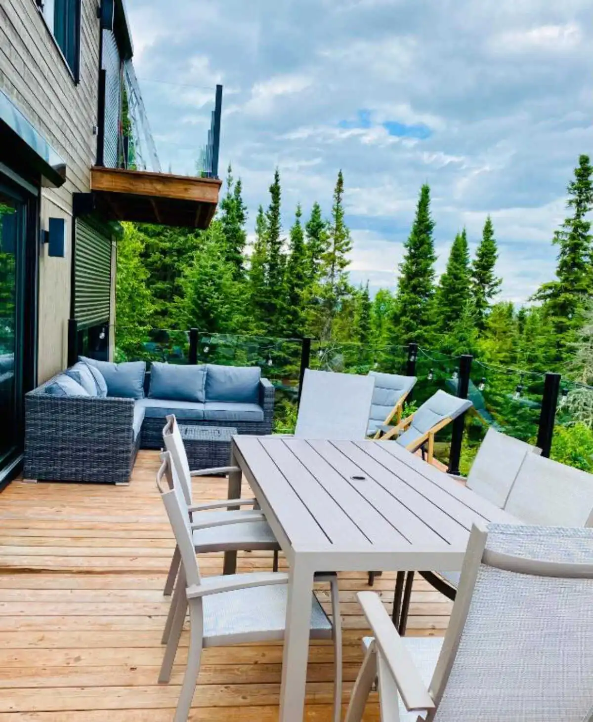 Contemporaine et baignée de lumière, entre forêt et fleuve elle a tout pour vous plaire ! Equipée d'un spa extérieur, d’une vaste galerie avec salon de jardin, espace repas et BBQ. Dedans, c'est un intérieur chaleureux et une cuisine moderne. Tout le confort pour un séjour ressourçant. Idéale pour vivre Charlevoix en beauté, été comme hiver, en famille ou entre amis.