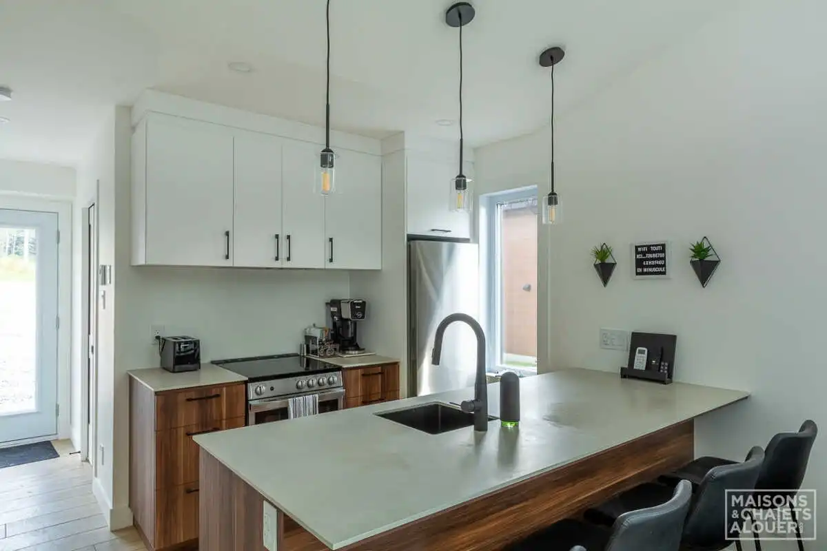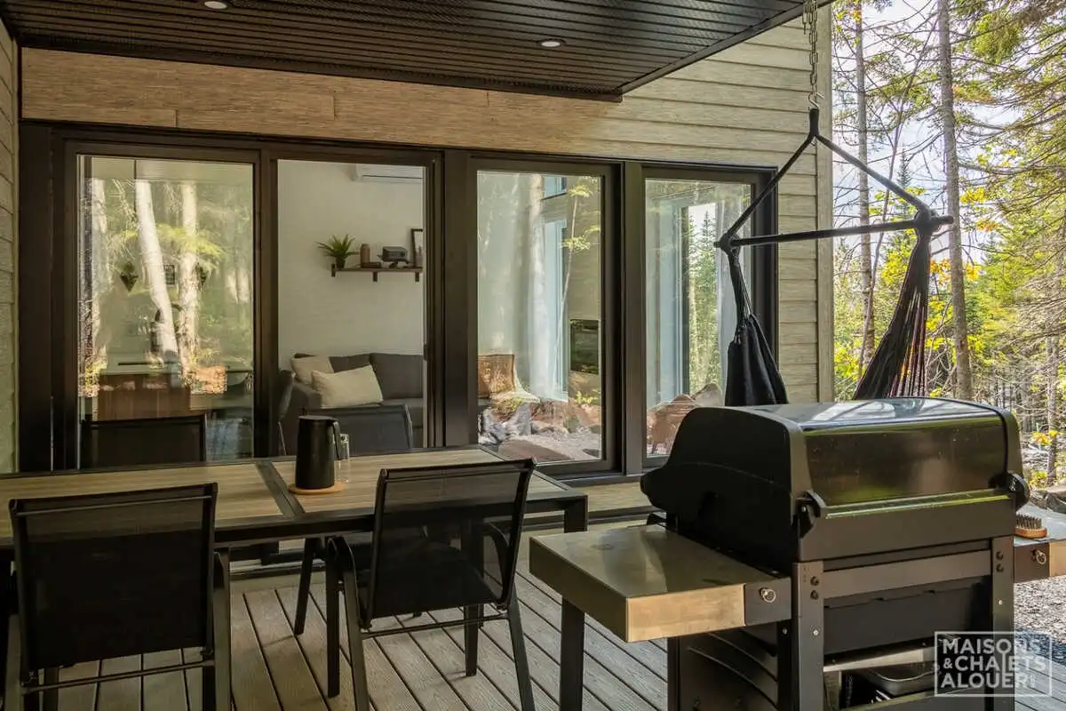 Le Touti du Domaine Escapad à Mont-Adstock est une expérience de 485 pieds carrés de bonheur moderne. Chaque élément a été soigneusement pensé afin de marier confort et maximisation de l'espace, offrant ainsi un séjour tout à fait unique en forêt.