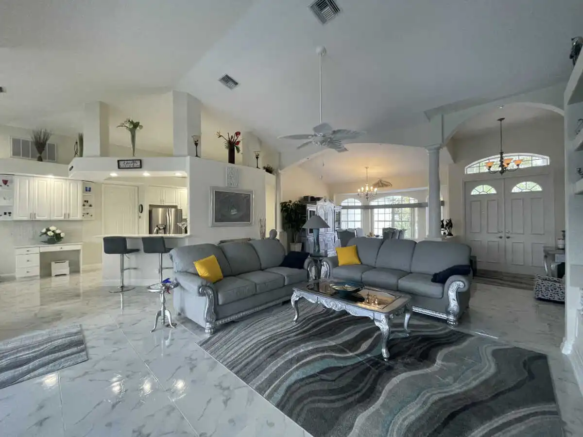 Bienvenue à la Maison Blanche, une splendide propriété située à quelques pas du Yacht Club Beach de Cape Coral, avec un accès direct à la mer, au chic quartier Cape Harbour, plage Fort Myers , plage Sanibel ou encore votre propre île privé en sable blanc fin. Vivez le paradis de la navigation!