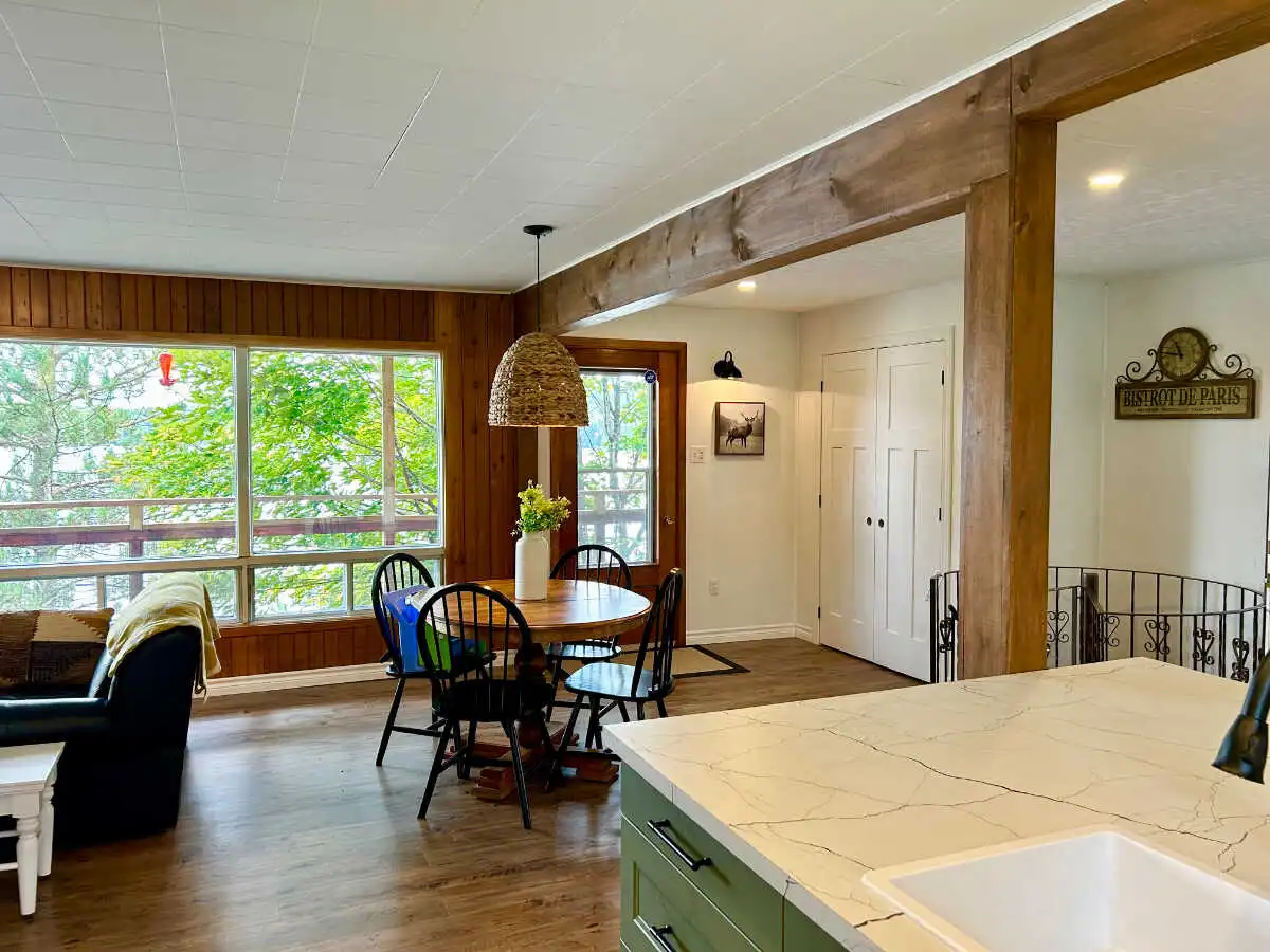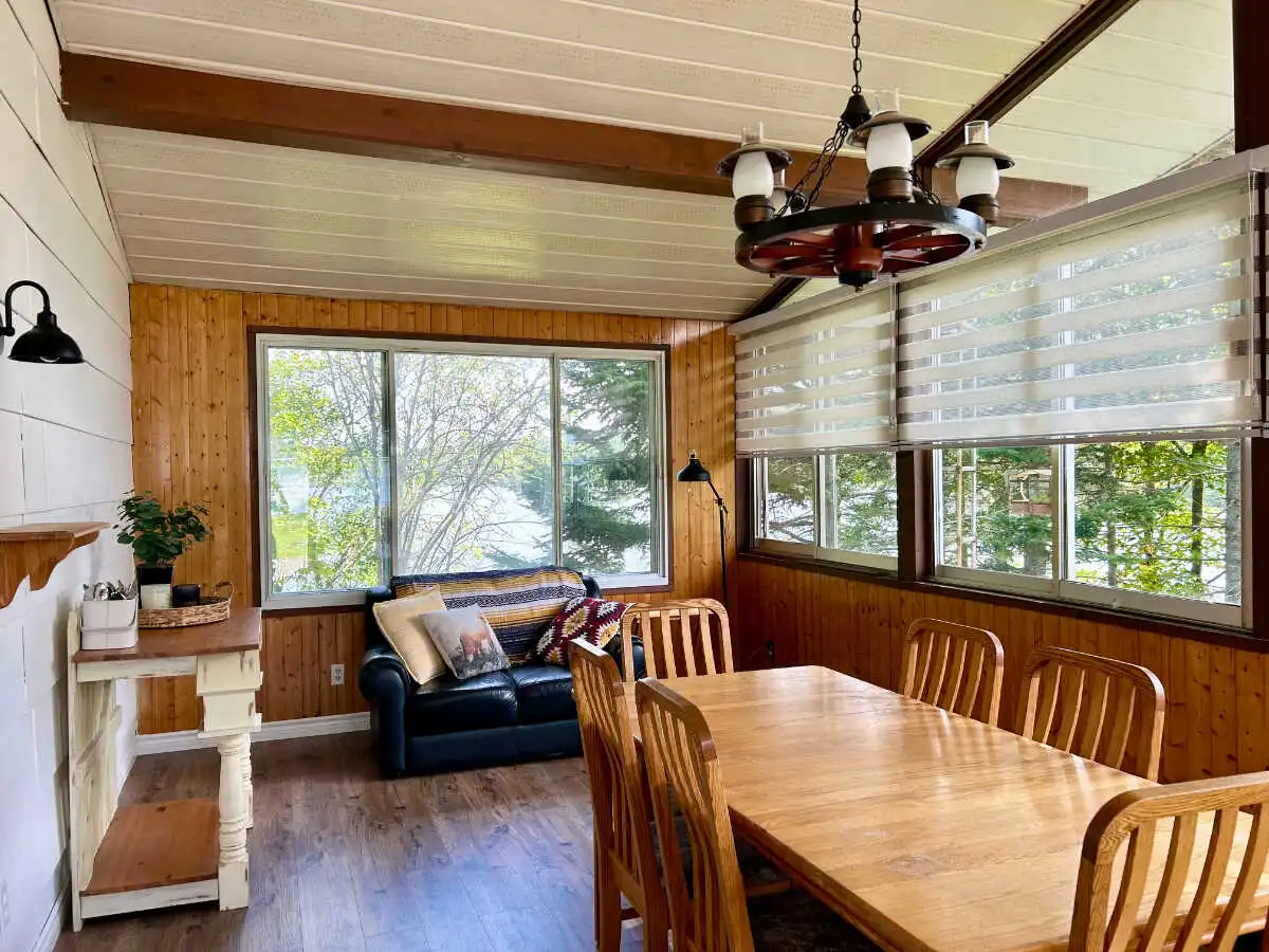 Situé directement sur les rives du lac Quenouille, ce chalet vous plonge dans un cadre paisible et authentique où la nature est à l’honneur. S’étendant sur plus de 4,5 km, le lac est navigable et traverse trois municipalités : Sainte-Agathe-des-Monts, Lac-Supérieur et Val-des-Lacs.