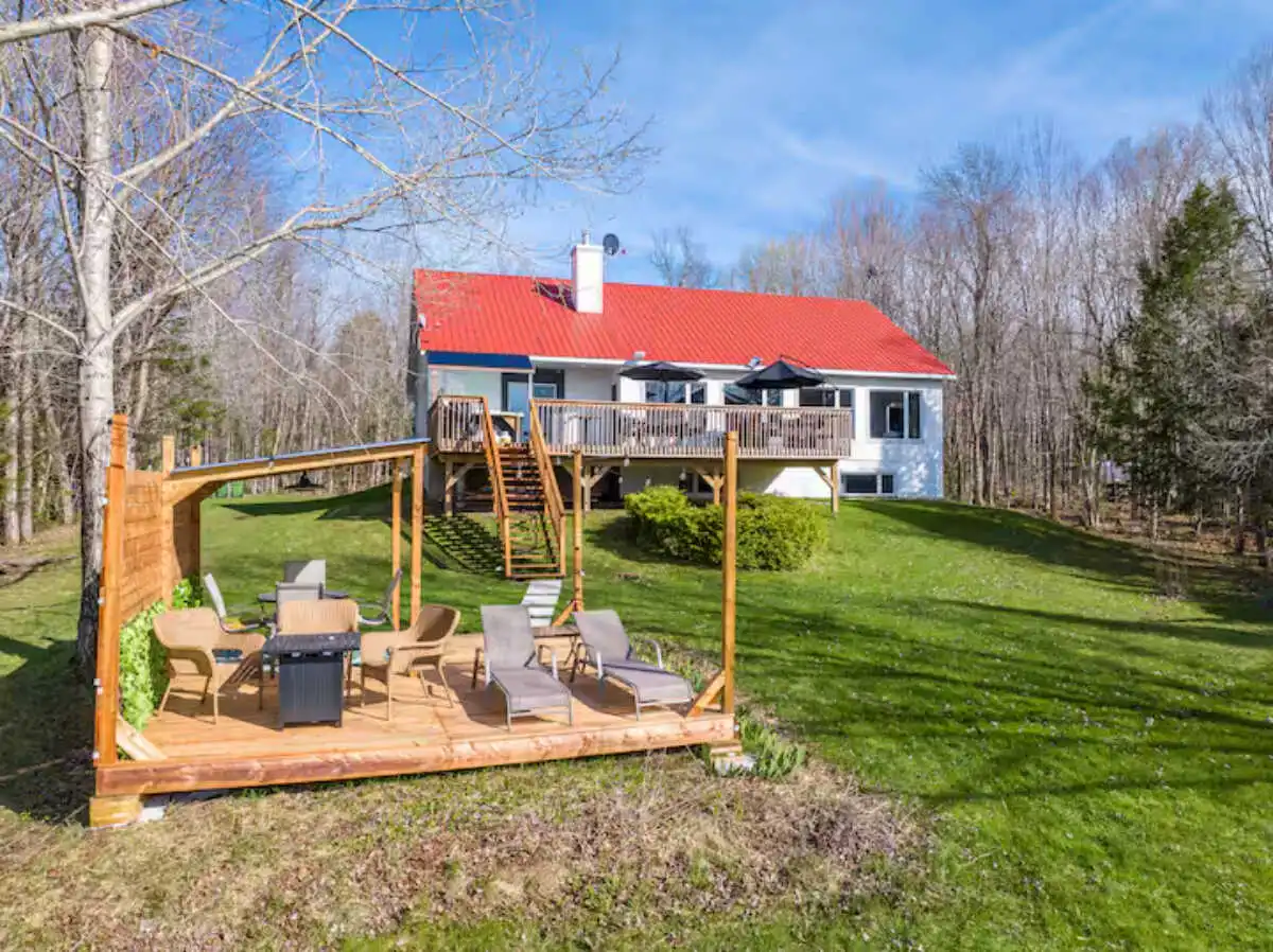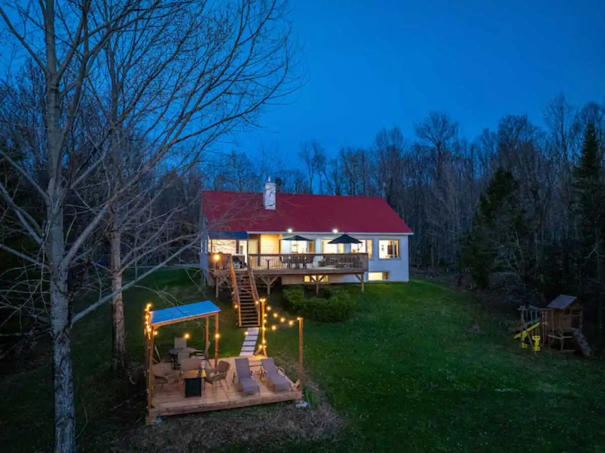 Situé sur les rives du lac Louise à Weedon, le Chalet des Oiseaux Bleus offre un espace spacieux et confortable pour un séjour en pleine nature. Profitez d’une grande cour arrière, d’un spa et d’un accès direct au lac avec embarcations à disposition.