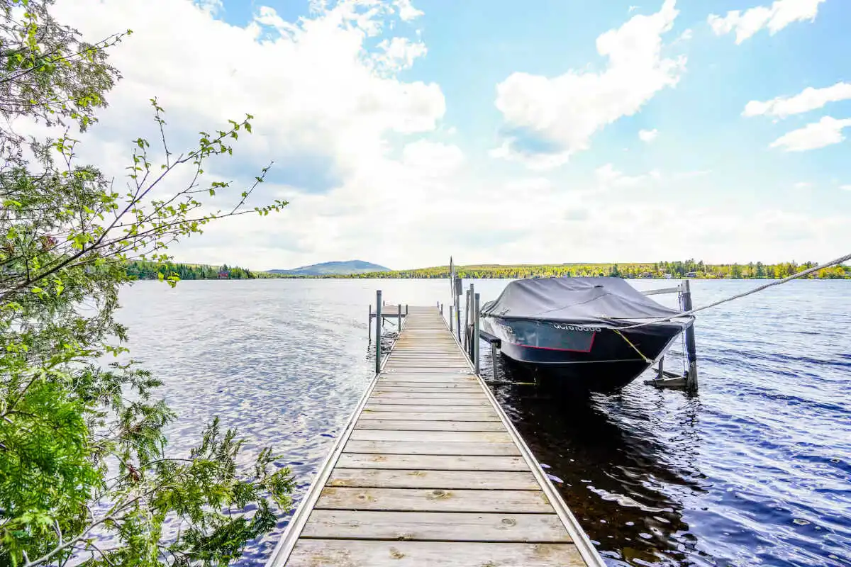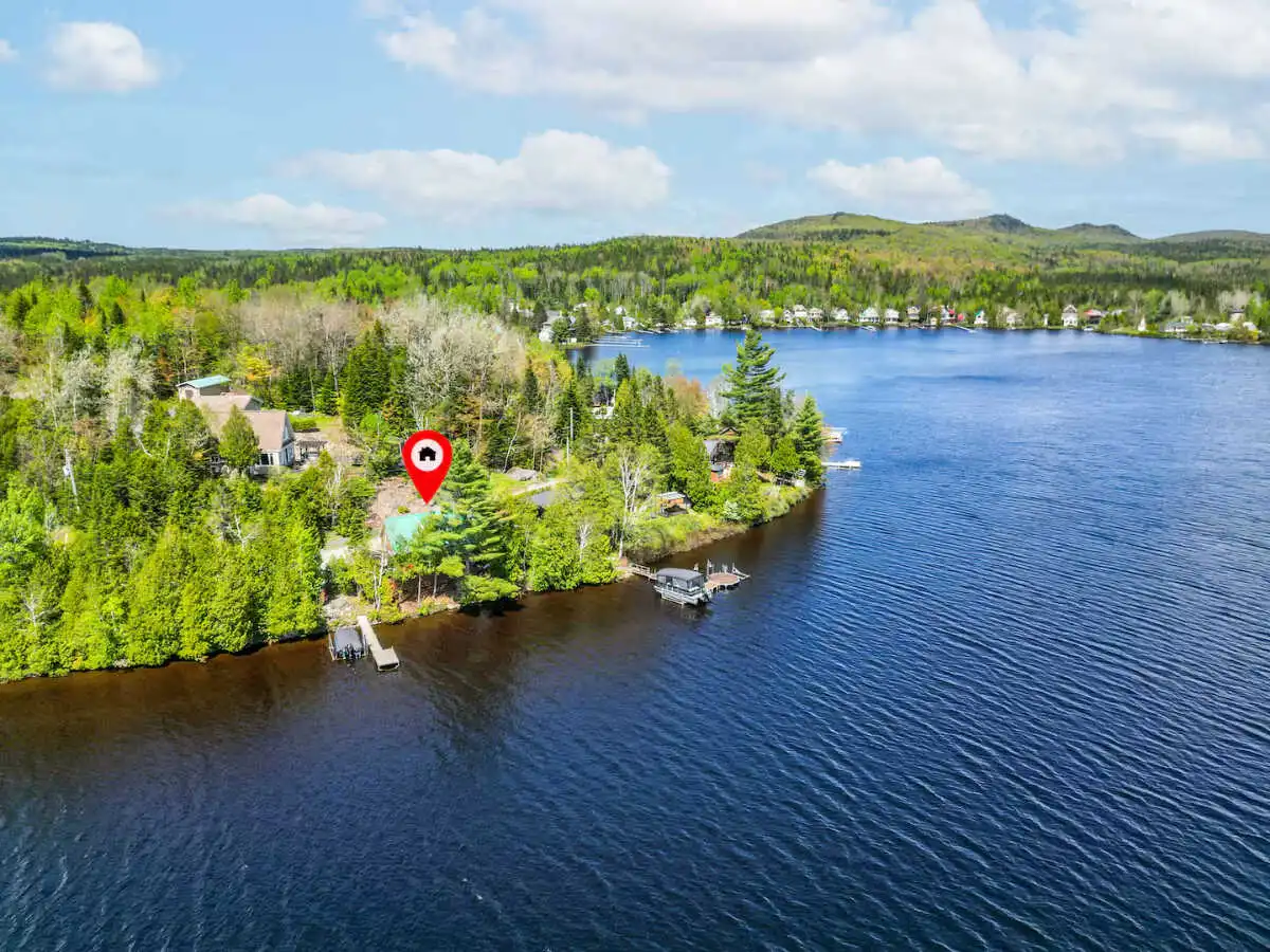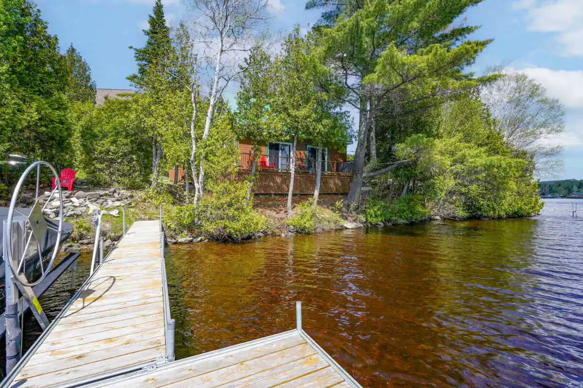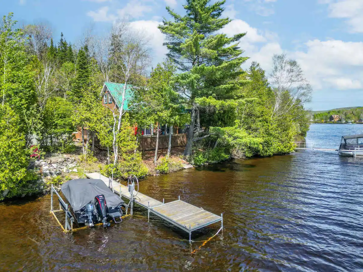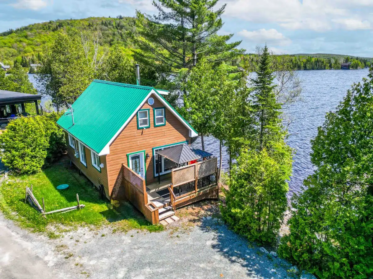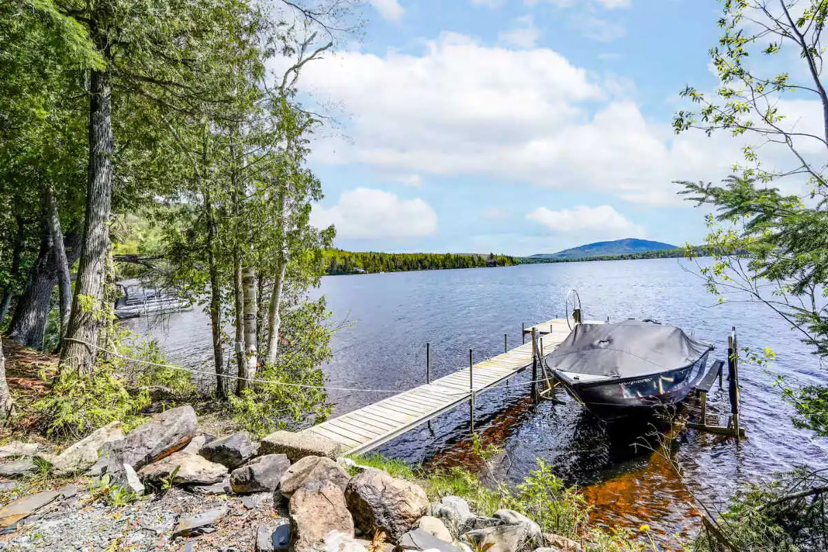 Évadez-vous à Adstock dans ce chalet confortable au bord du lac du Huit, avec quai privé idéal pour la baignade ou le kayak.