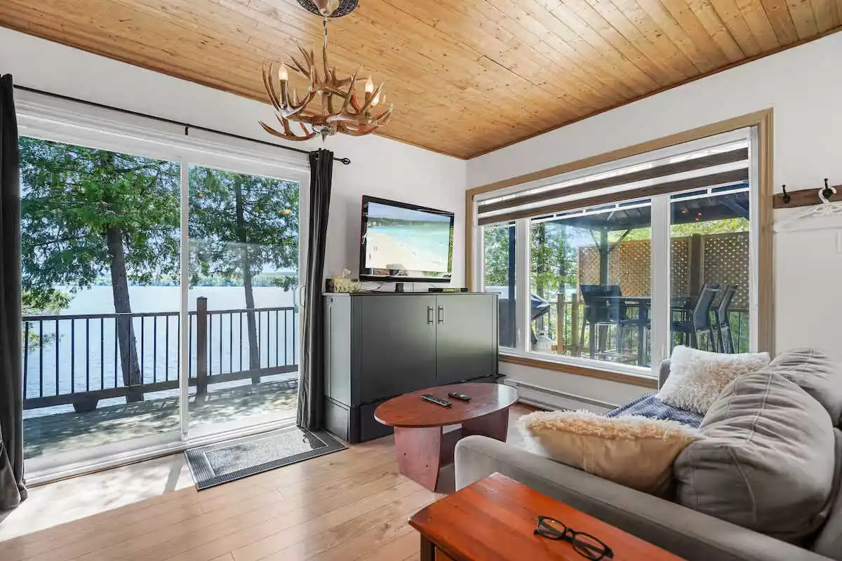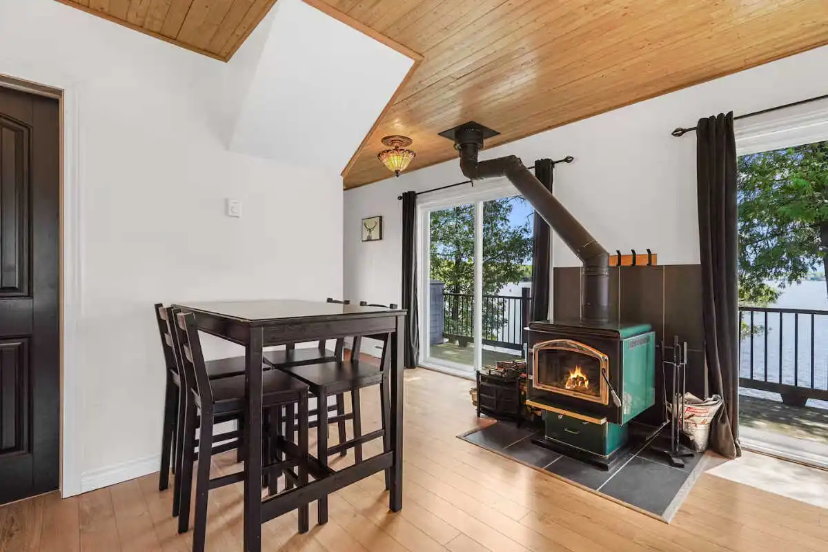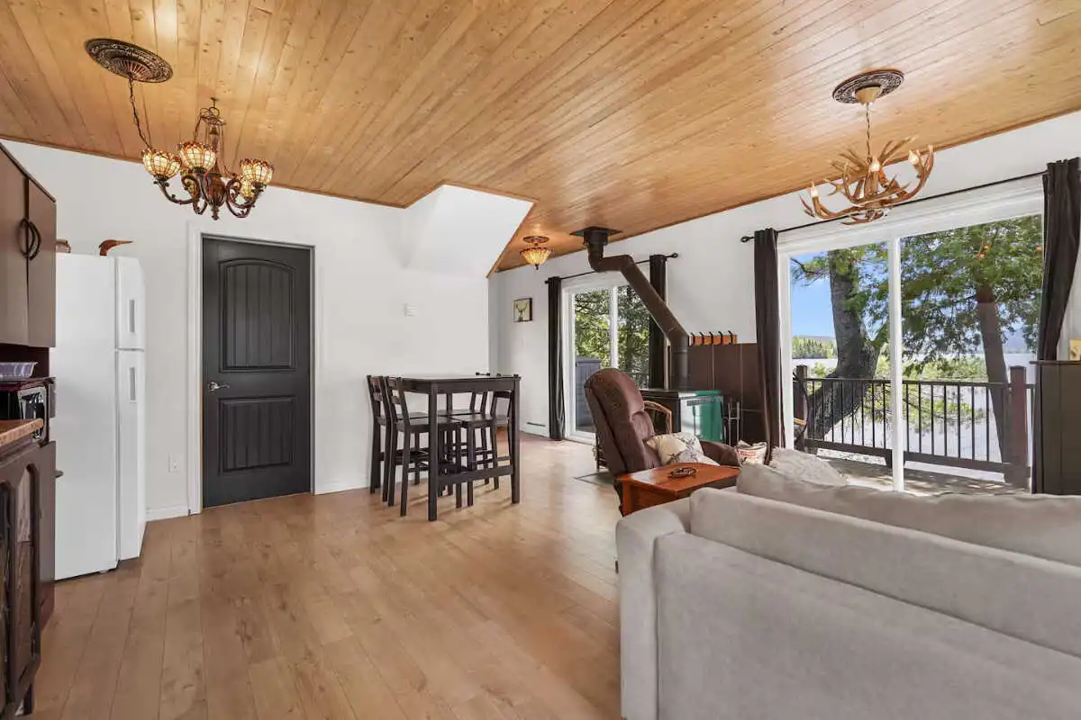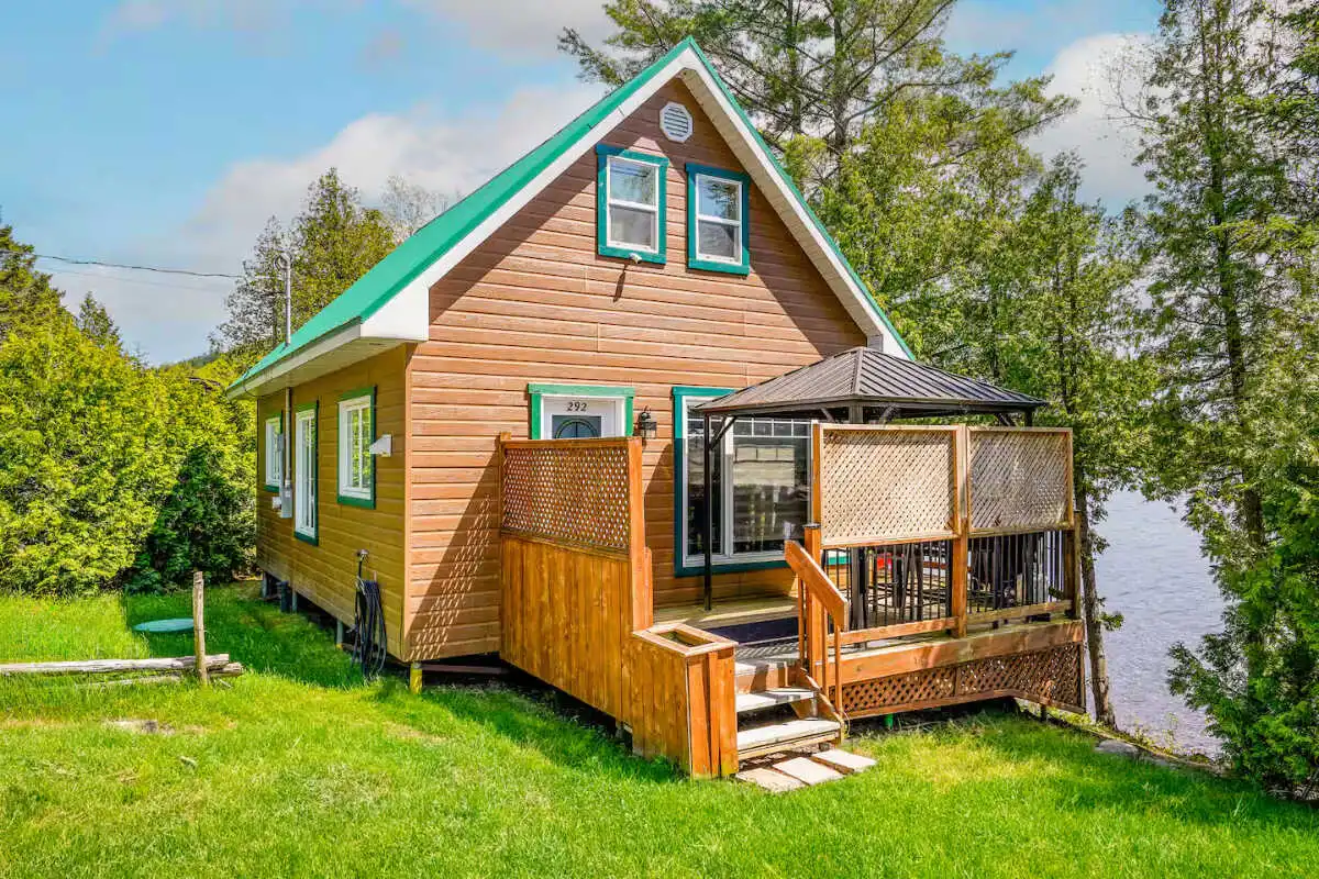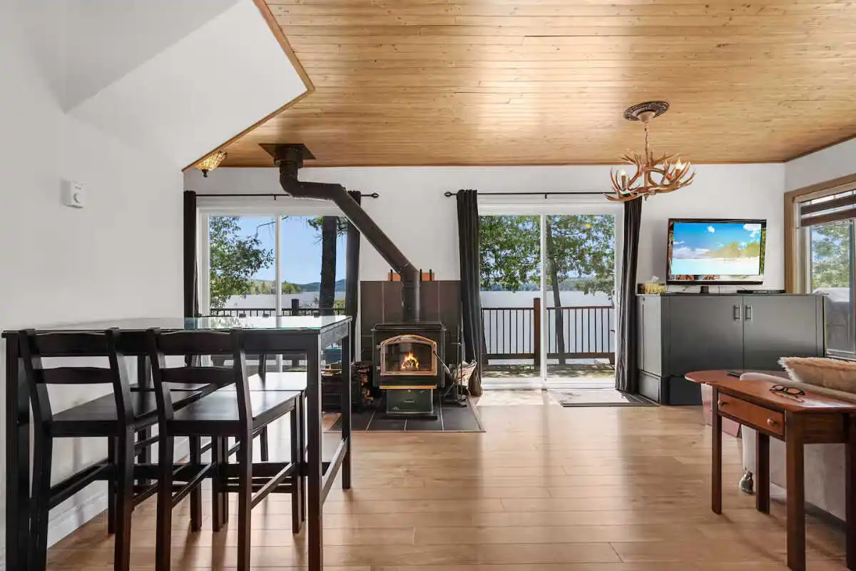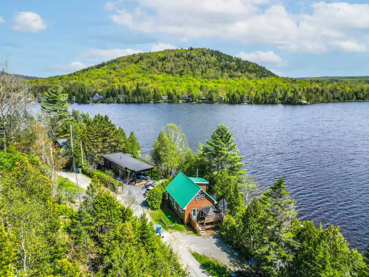 Évadez-vous à Adstock dans ce chalet confortable au bord du lac du Huit, avec quai privé idéal pour la baignade ou le kayak.