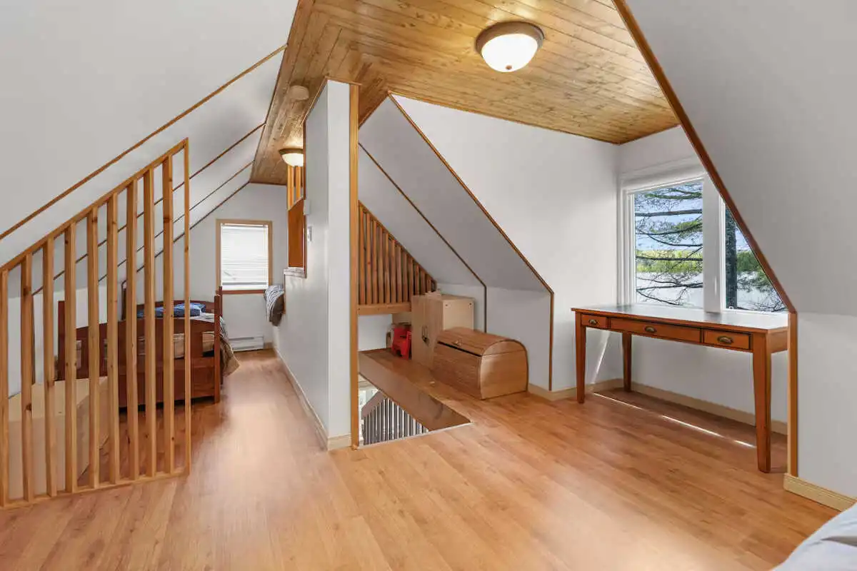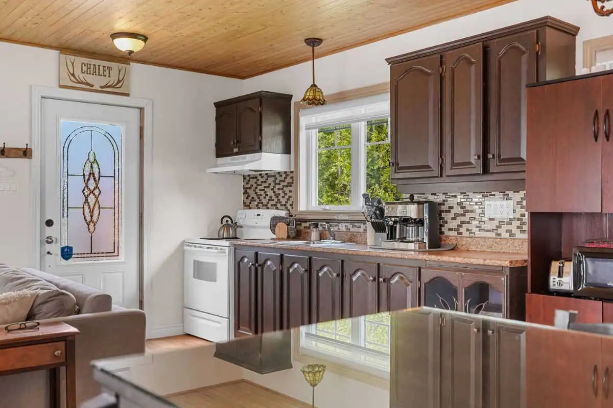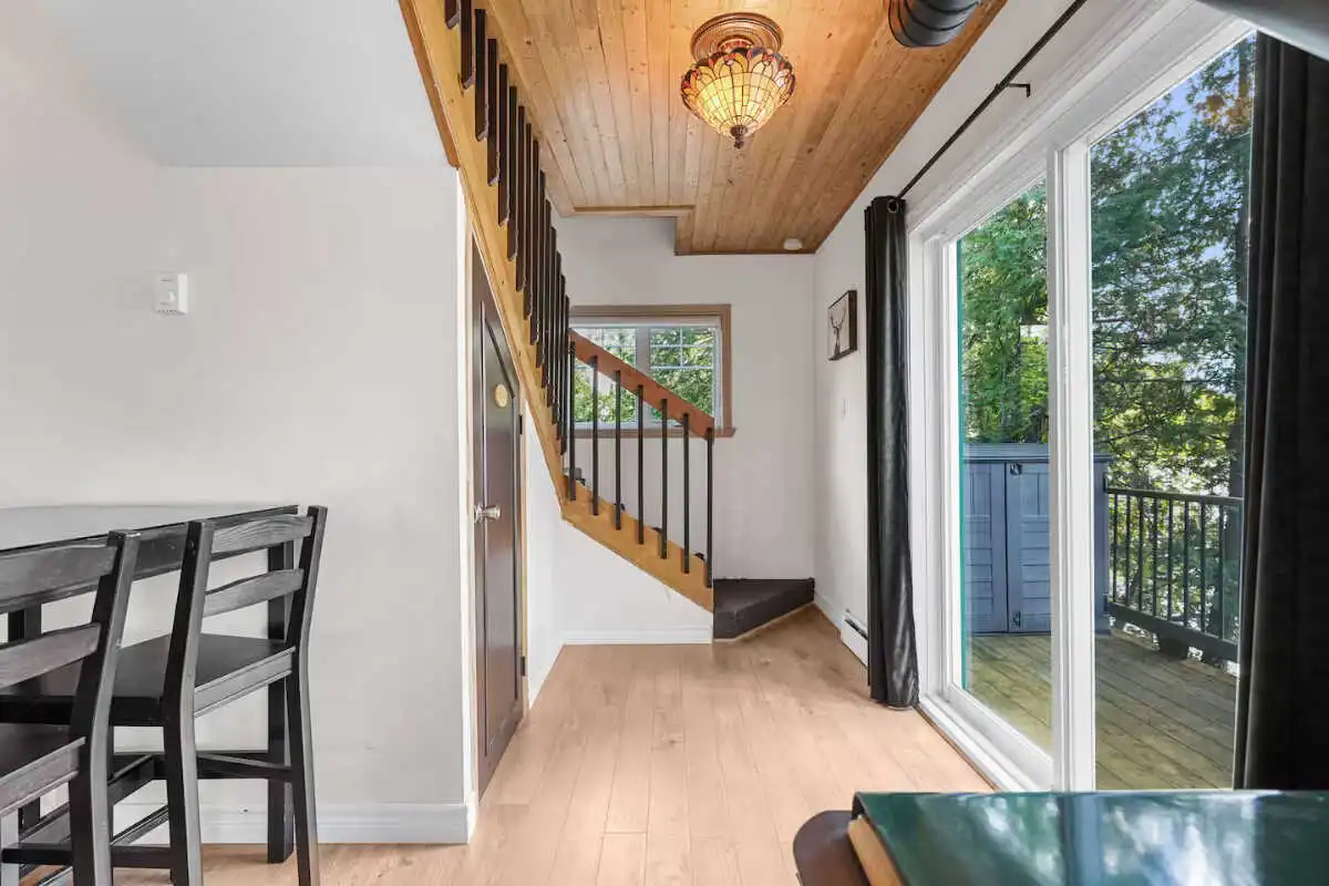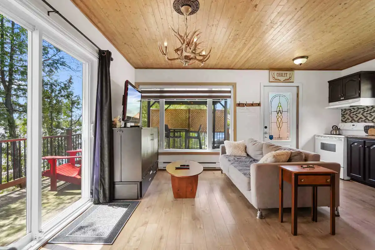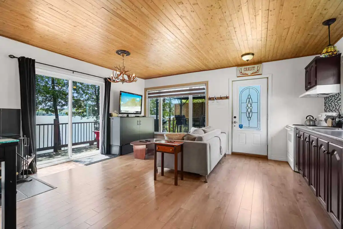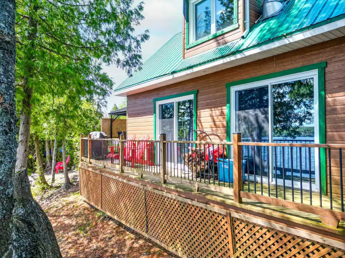 Évadez-vous à Adstock dans ce chalet confortable au bord du lac du Huit, avec quai privé idéal pour la baignade ou le kayak.