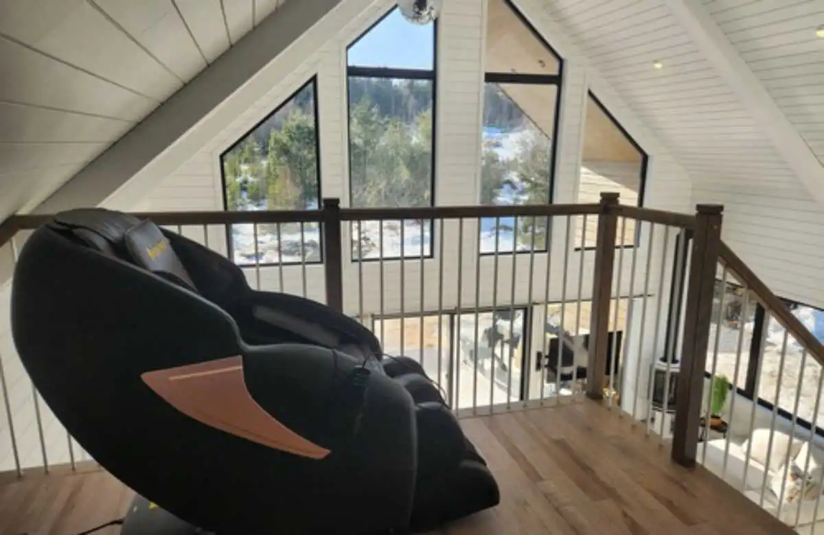 Détendez-vous dans un spa relaxant 6 places, une chaise de massage ou près du foyer chaleureux après une journée d’aventure.