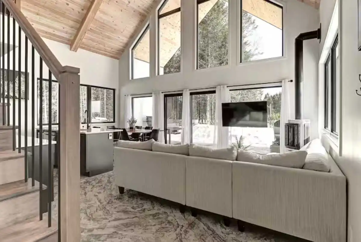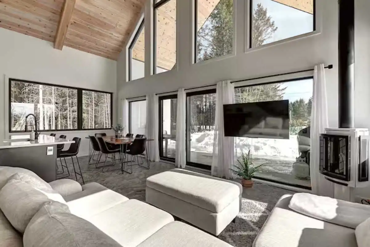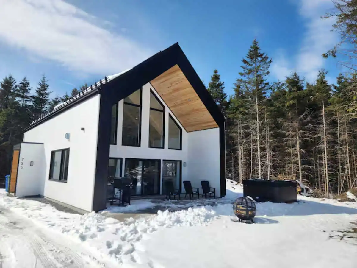 Magnifique et lumineux chalet neuf sur un grand terrain boisé. Venez relaxer en couple ou en famille et profiter de notre spa, foyer et de l'incroyable chaise à massage.