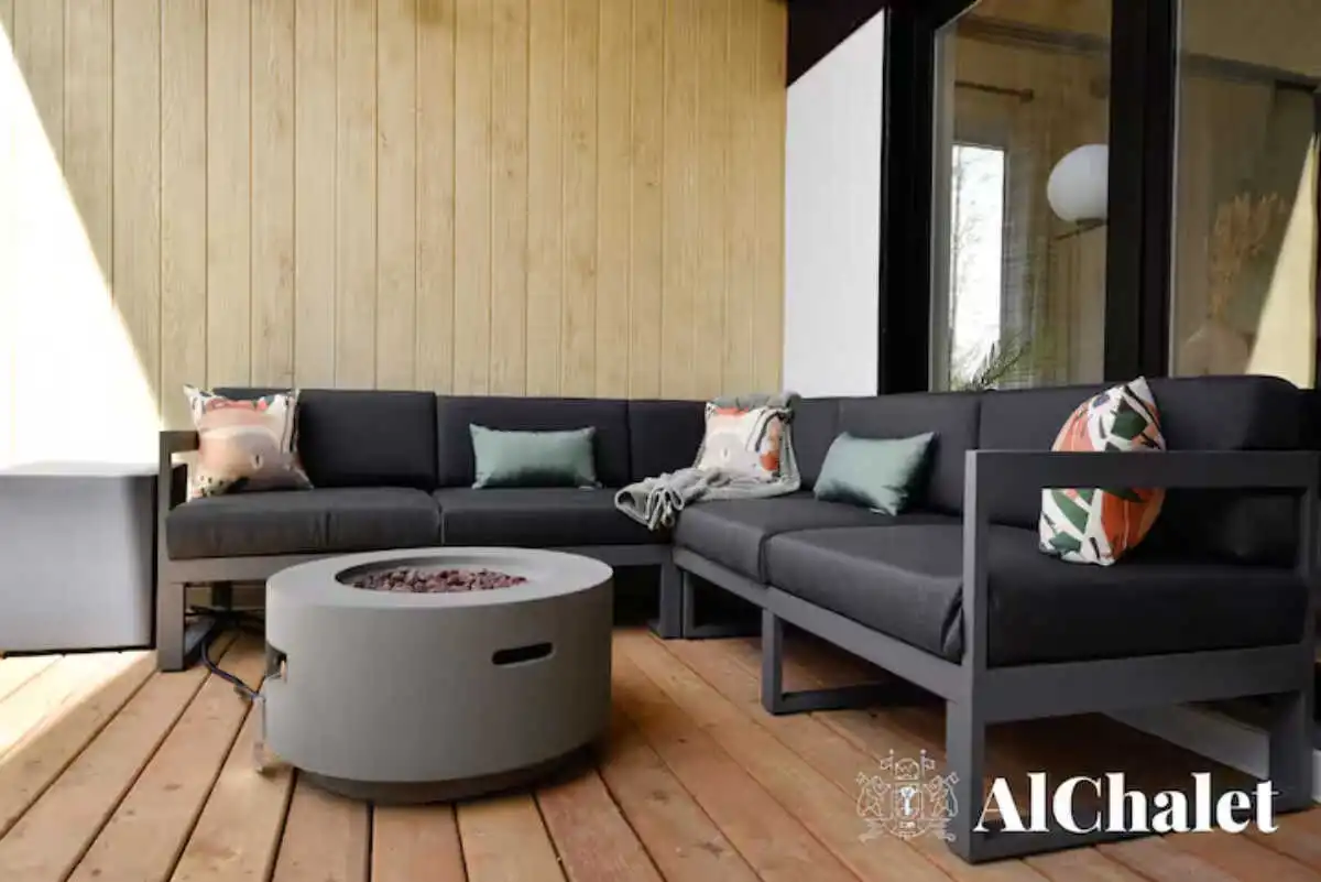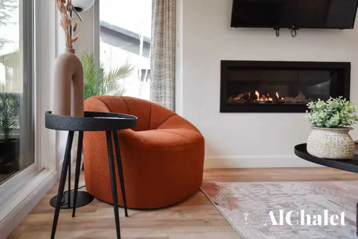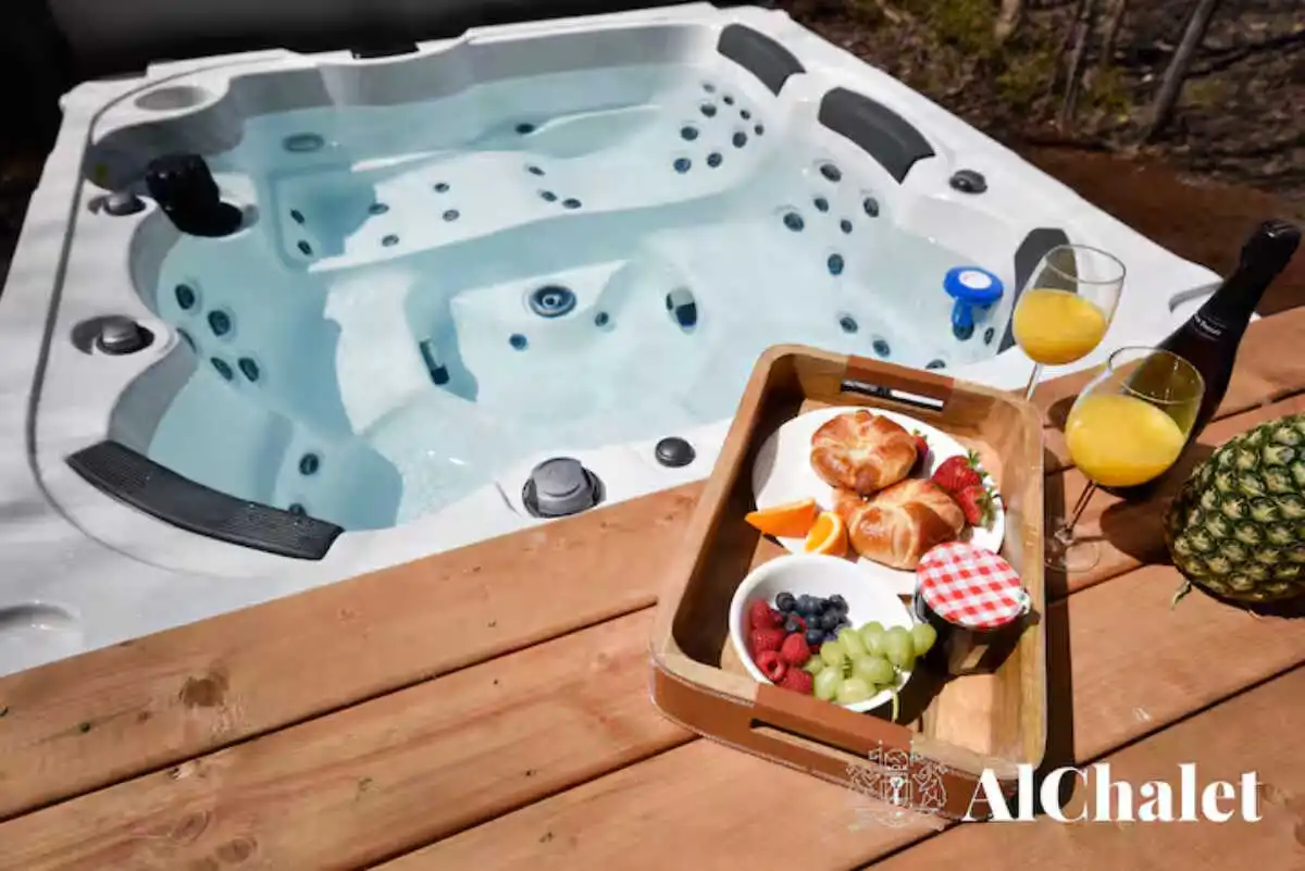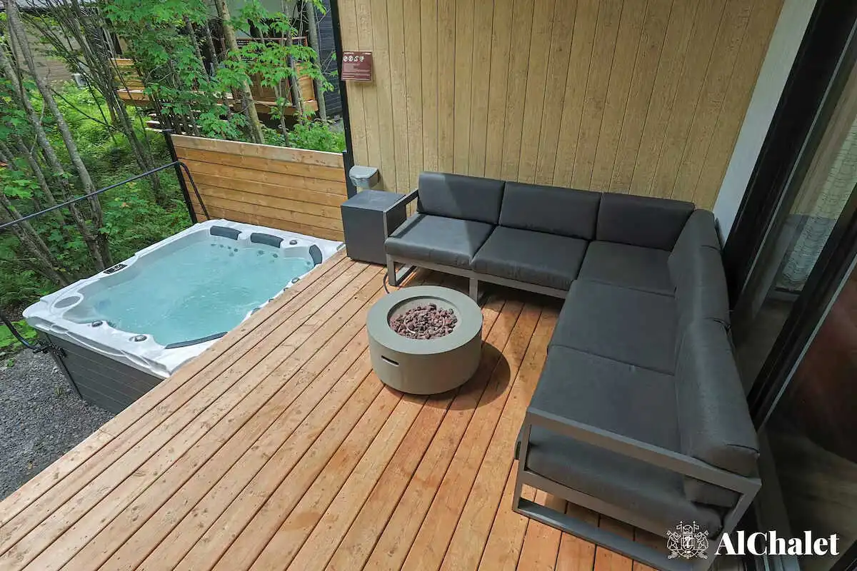 Mais c’est sur la terrasse que le chalet révèle son âme : un espace paisible bordé par les arbres, avec un spa privé et un foyer extérieur pour prolonger les soirées, été comme hiver. Même vos animaux de compagnie sont les bienvenus – parce qu’ici, l’expérience se vit ensemble.