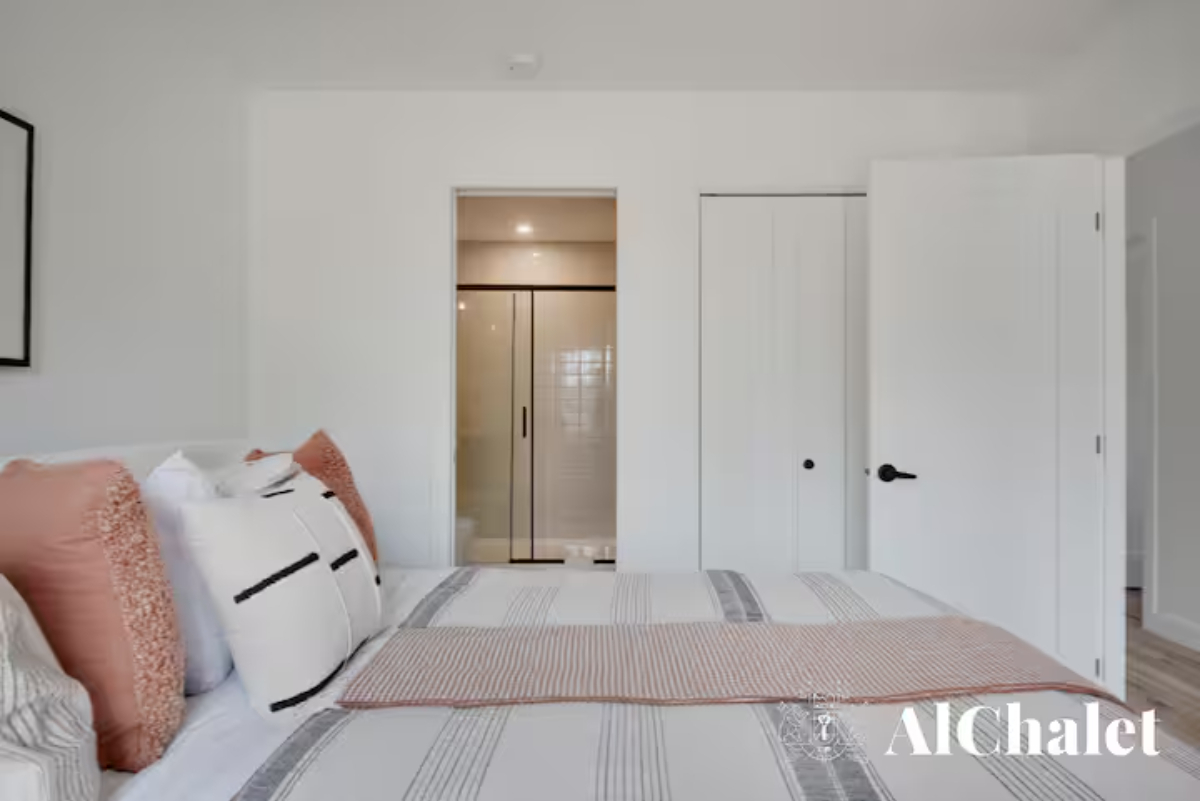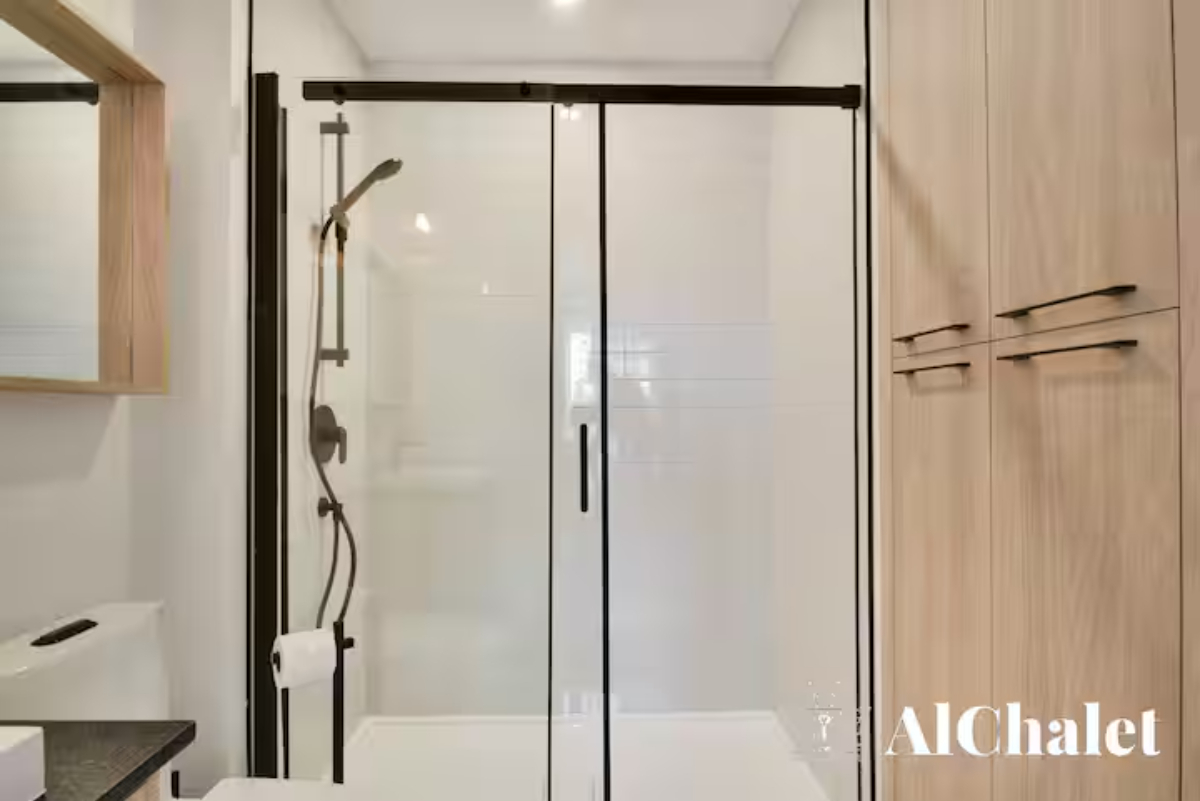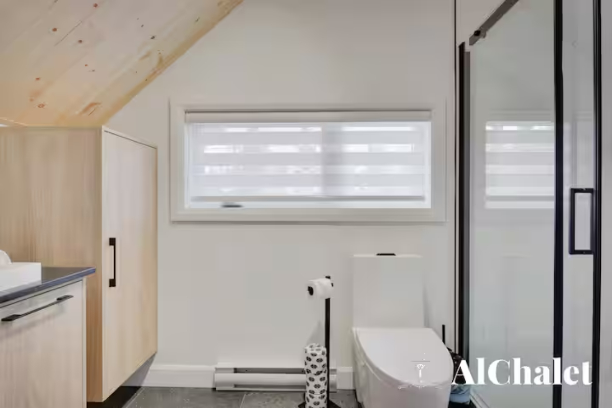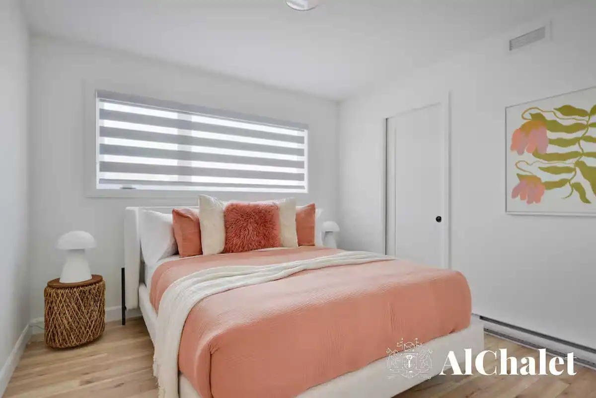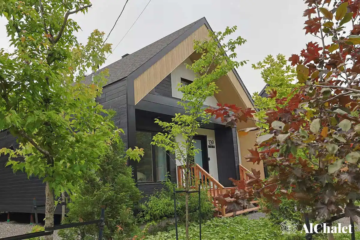Évadez-vous au Chalet Aurora Borealis, un havre où design moderne et touches nordiques fusionnent. Profitez de chambres lumineuses avec lits Queen confortables. Son toit cathédrale en bois naturel inspirent la sérénité. La cuisine ouverte invite à la convivialité avec ses tons de noir élégant et de bois chaleureux.
