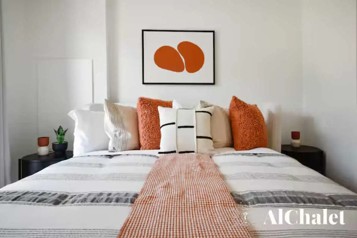 Perché à l’étage, un coin lecture vous attend sur la mezzanine, juste à côté d’un petit bureau en retrait – parfait pour écrire, travailler à distance ou simplement observer le salon en contrebas, où les conversations s’animent près du foyer électrique. Chacune des 3 chambres a été conçue comme une bulle de confort, ainsi que le divant-lit du salon, et les 3 salles de bain modernes assurent intimité et fluidité au quotidien.