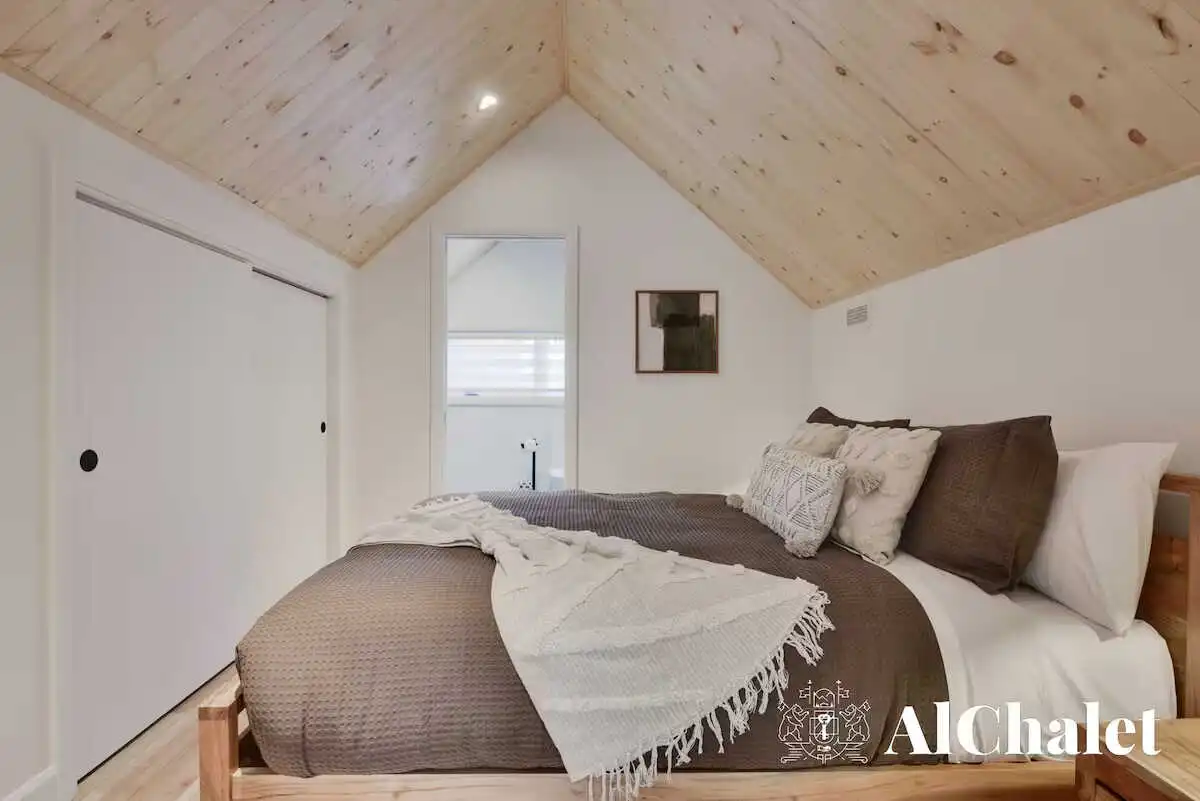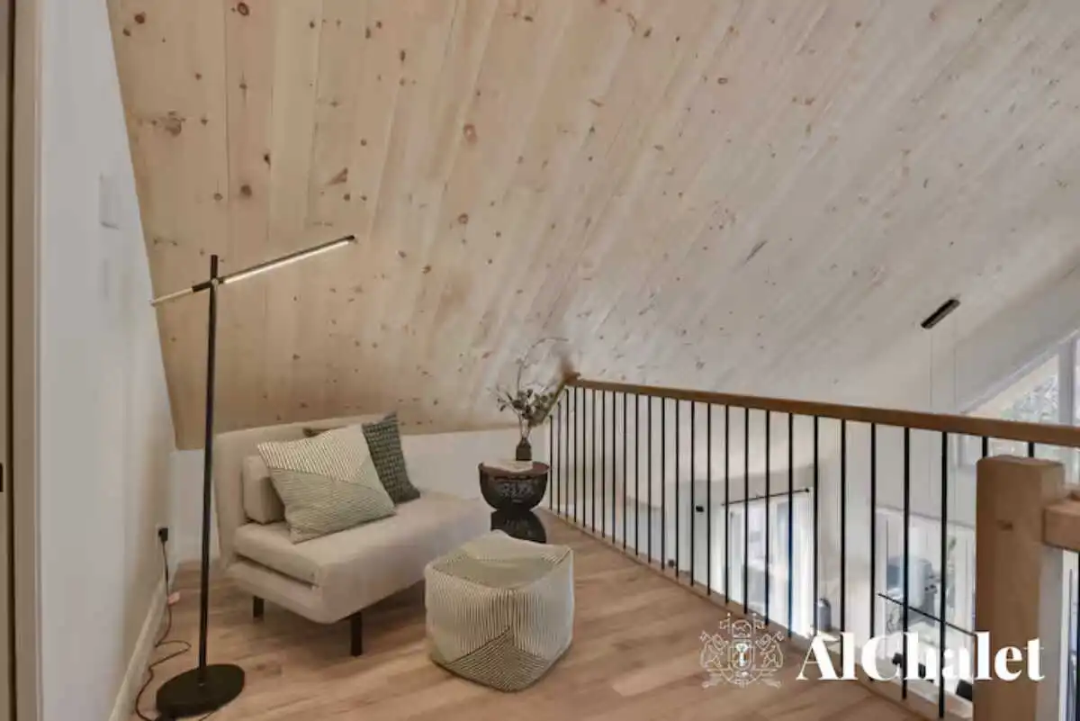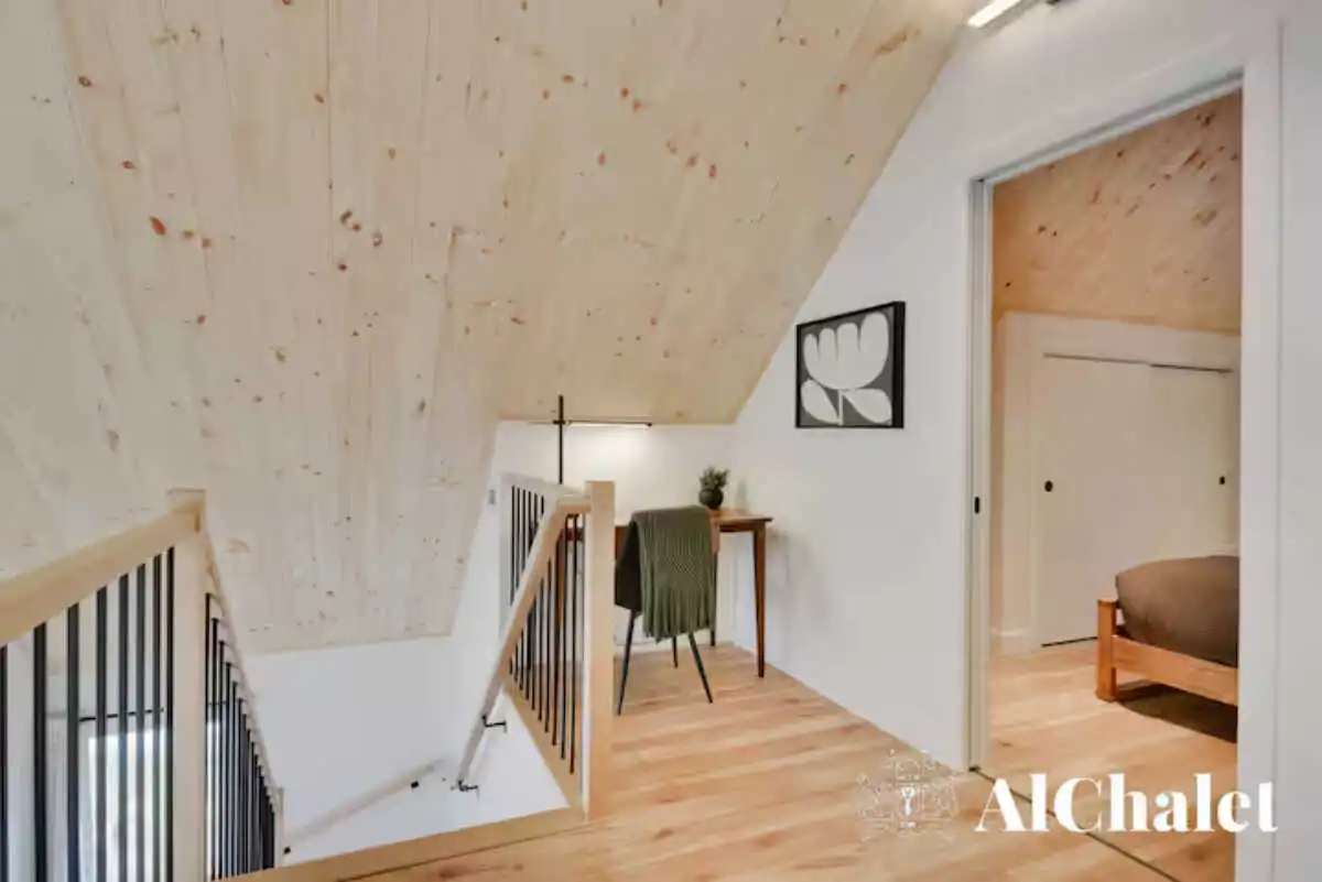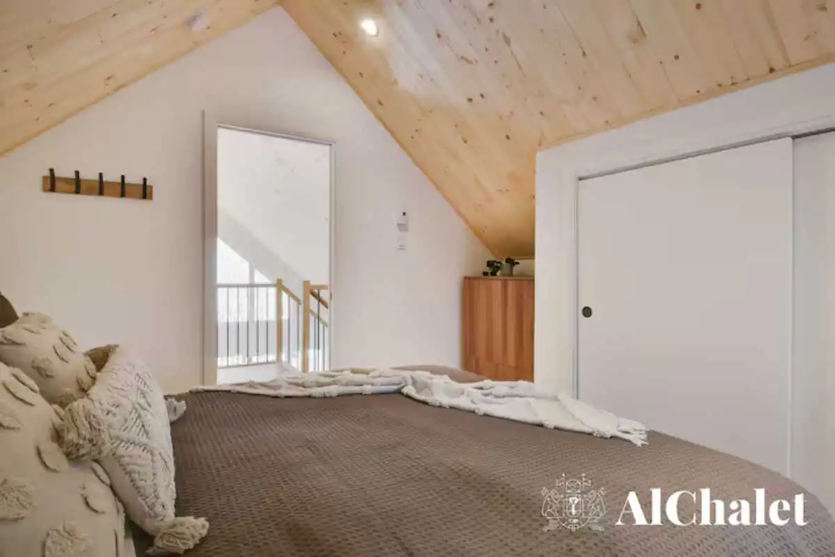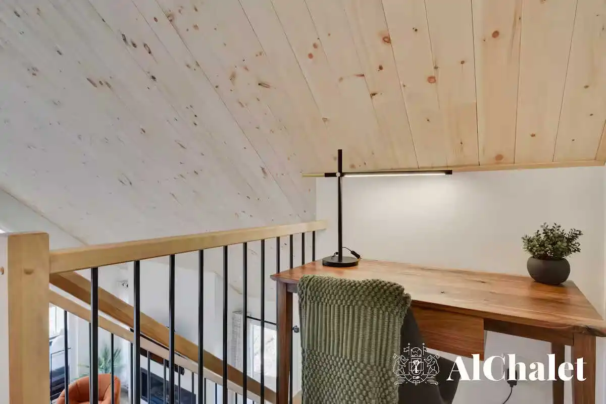 Avec ses 3 chambres confortables, ses 3 salles de bain bien pensées, un foyer électrique et un coin détente sur la mezzanine, le chalet a été imaginé pour les séjours en famille ou entre amis. Que ce soit pour télétravailler depuis l’espace bureau, partager un repas convivial ou simplement lire un livre sous la lumière naturelle, chaque espace respire la simplicité raffinée.