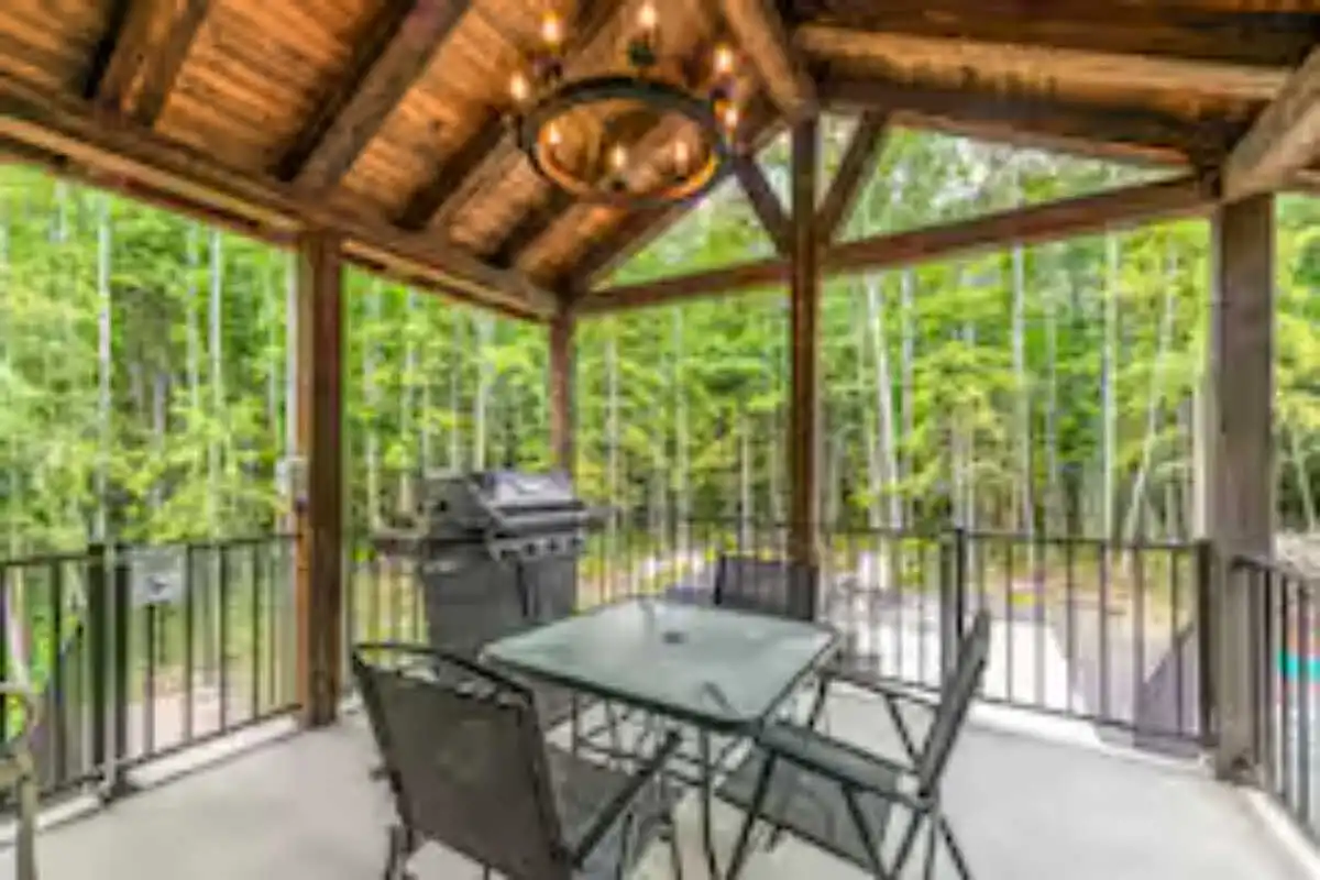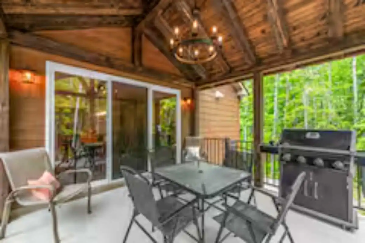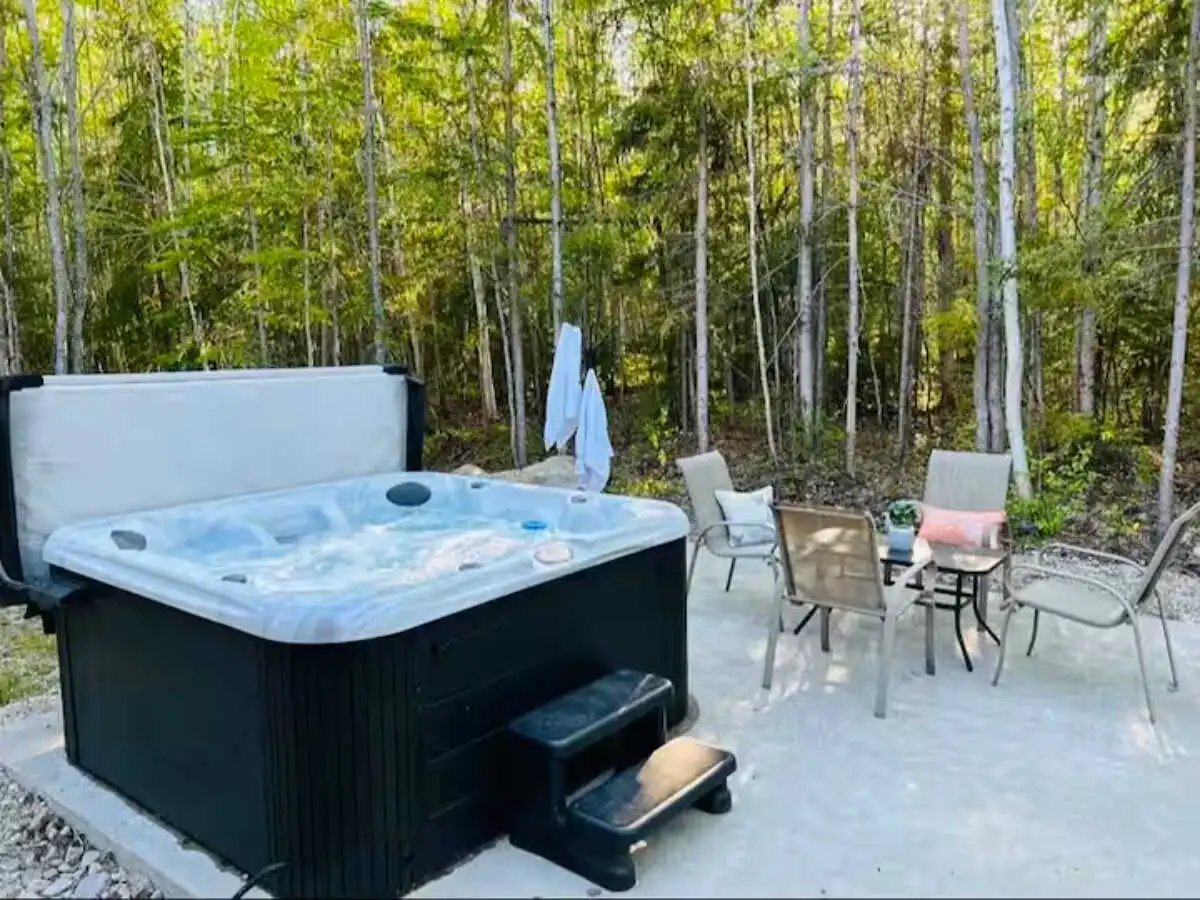 À l’extérieur, un spa privé et un grand espace foyer vous attendent, au cœur d’un décor forestier paisible.