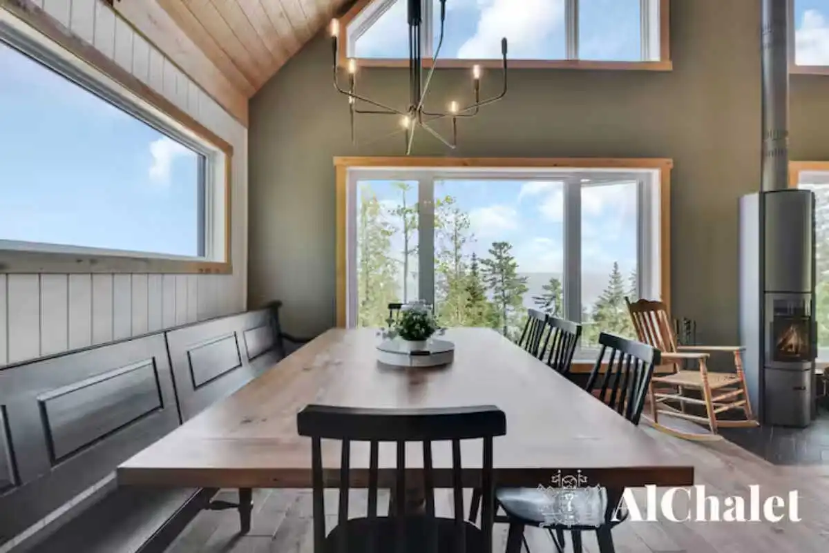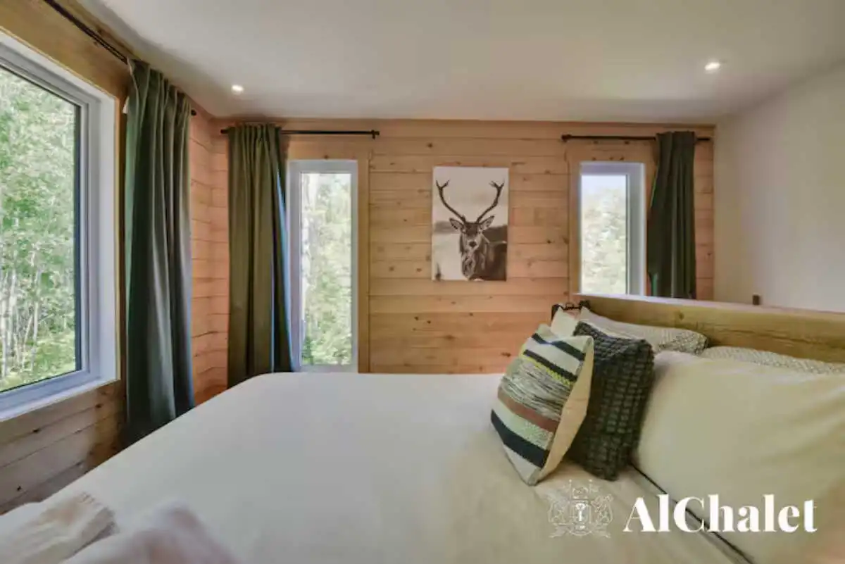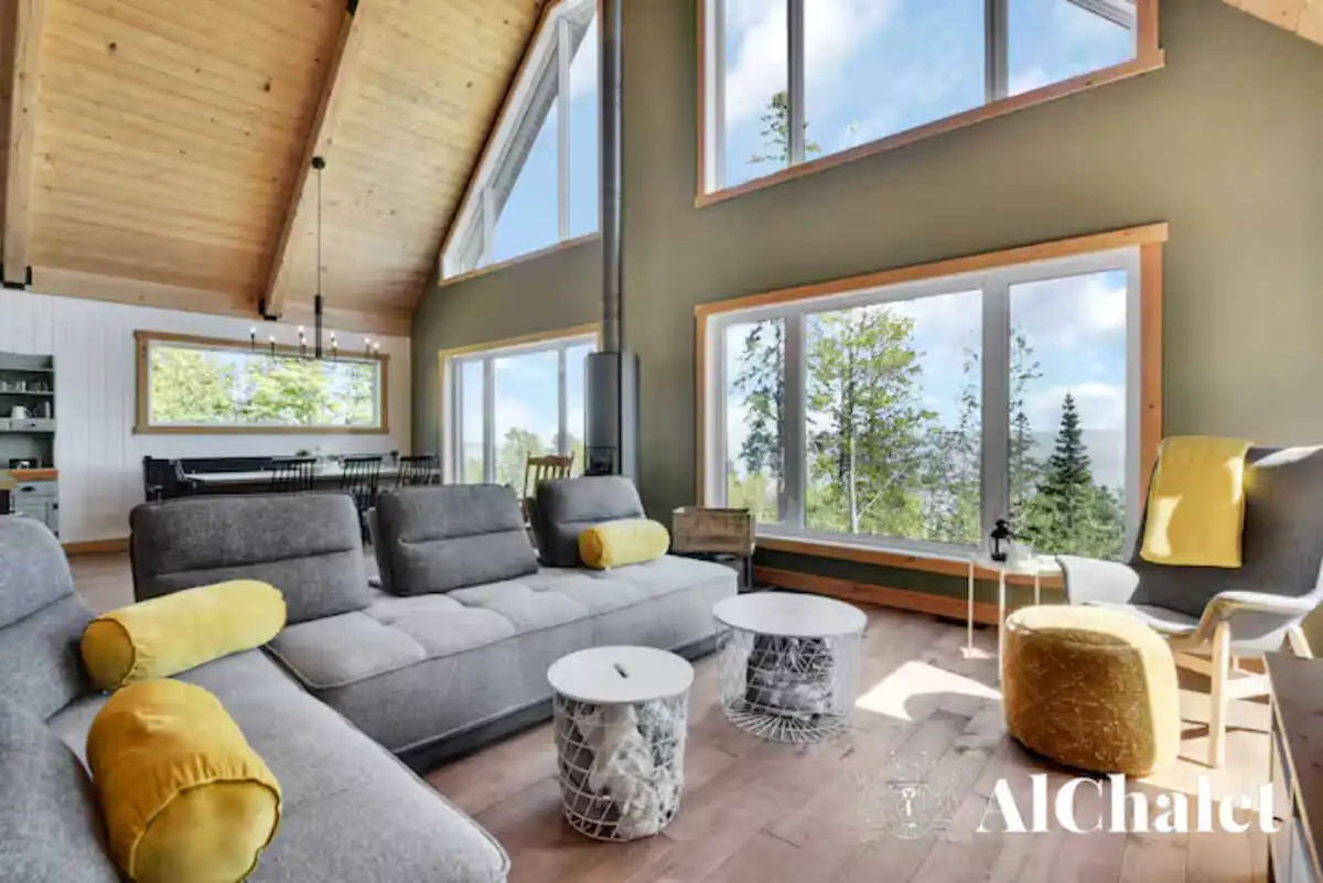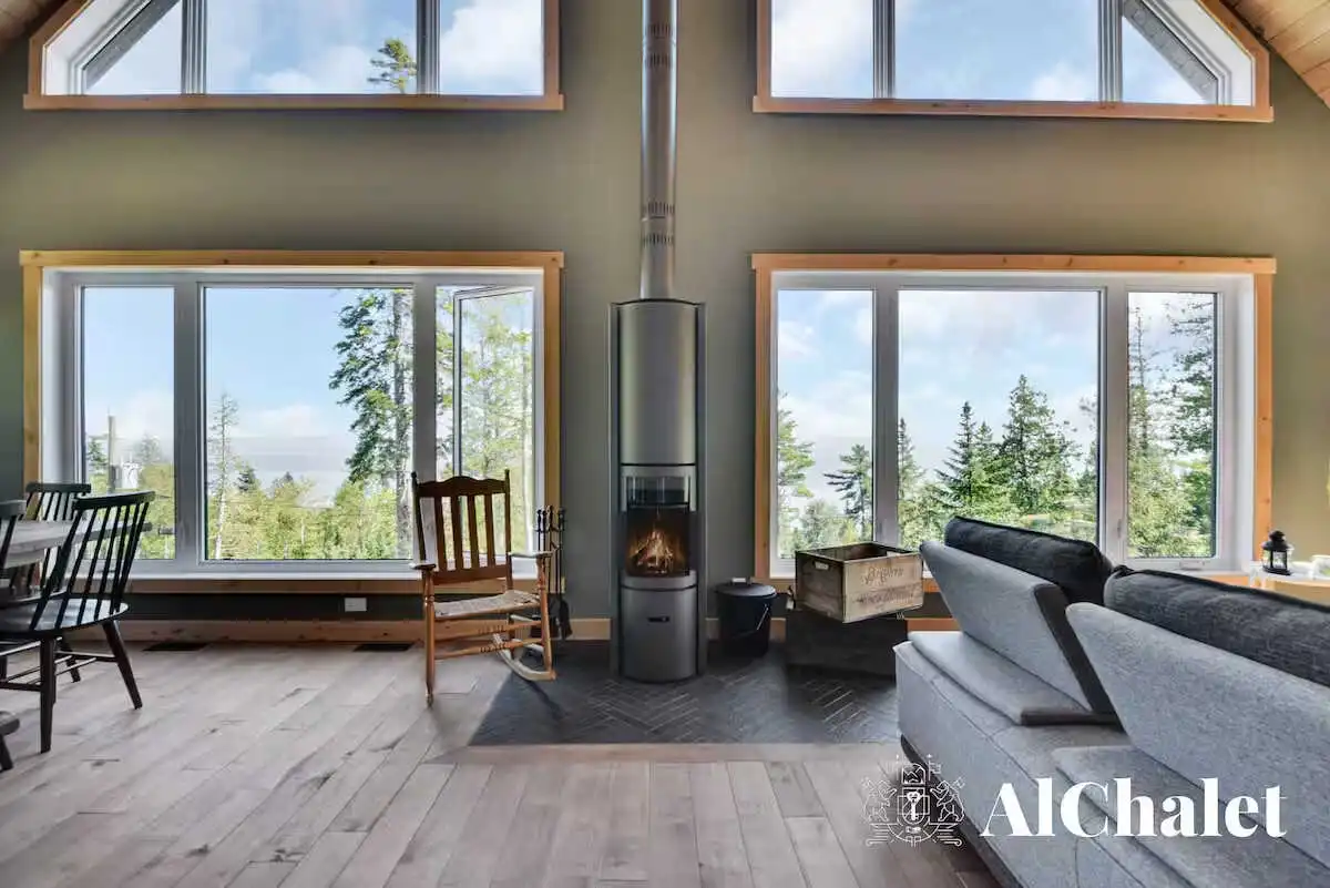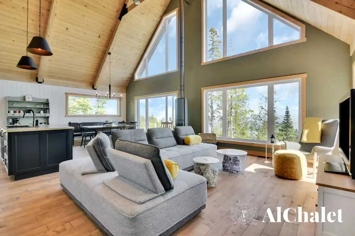 Shack Saison est un chalet aux allures de ranch, alliant simplicité et modernité. Ses teintes vert apportent une fraîcheur bienvenue, tandis que le toit cathédrale et les fenêtres inondent l'intérieur de lumière naturelle. offrant une belle vue sur le fleuve. Pouvant accueillir jusqu'à 8 personnes avec ses 4 chambres, 2 salles de bain, profitez d'un espace vibrant pour toute la famille. Son spa, foyer et terrasse avec sa vue, vous offrent tout le confort nécessaire pour un séjour mémorable.