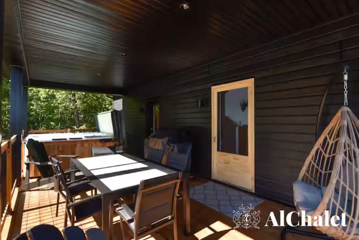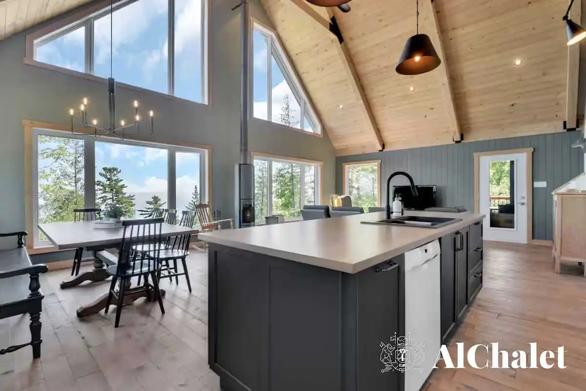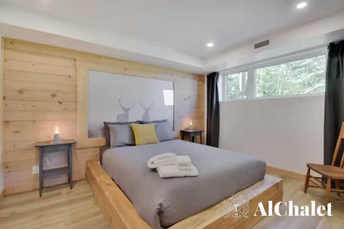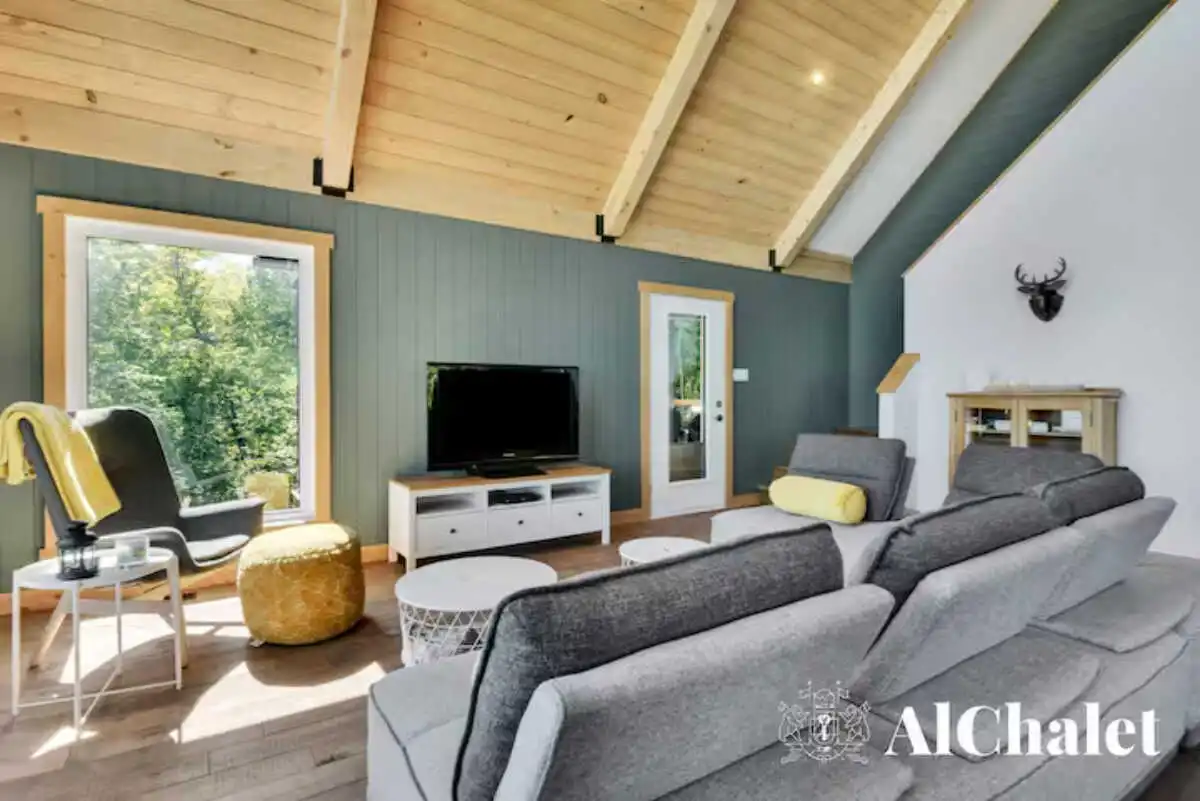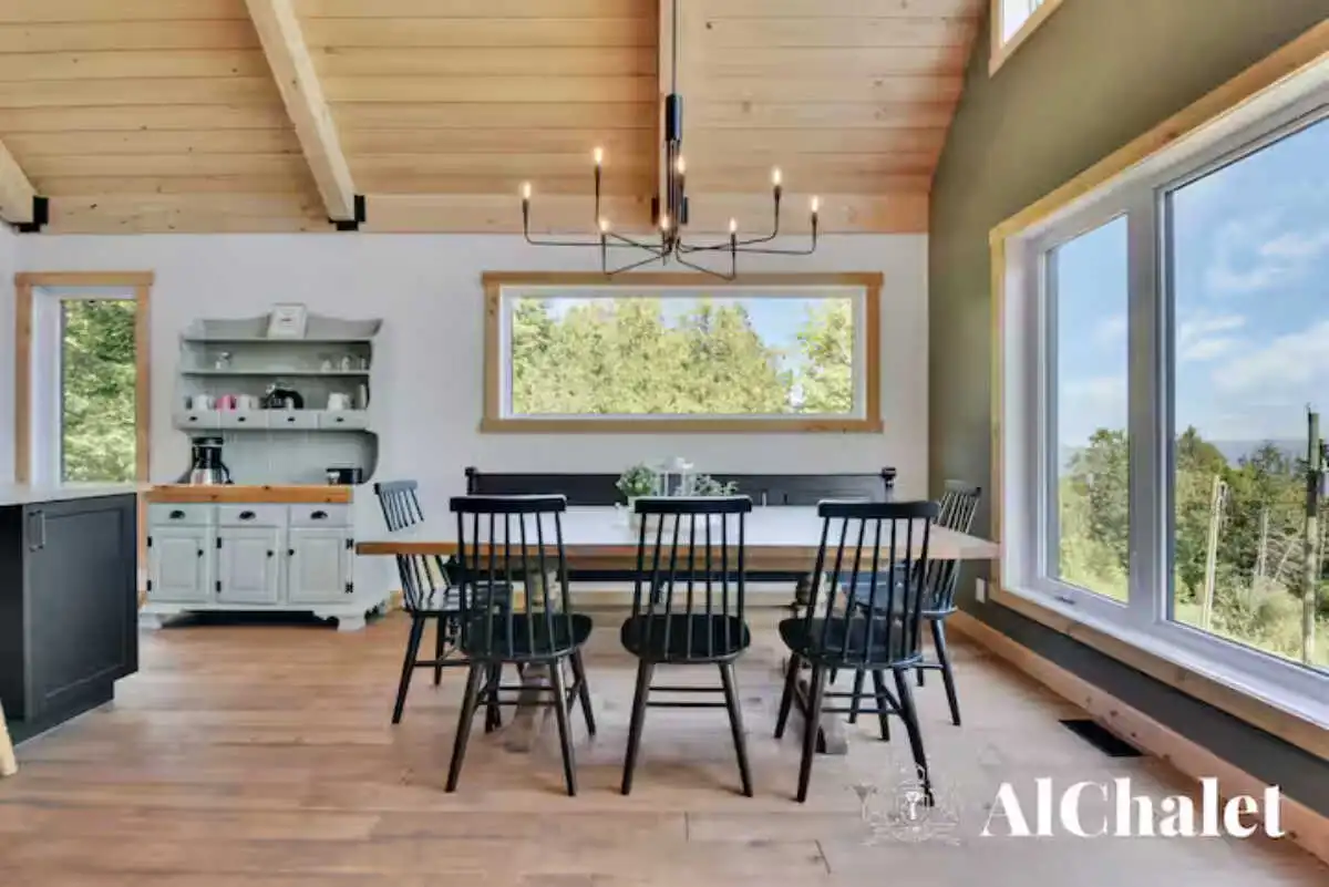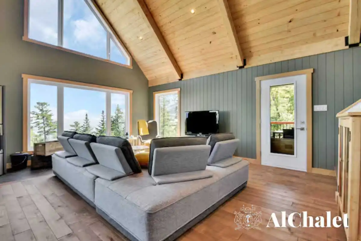 Shack Saison est un chalet aux allures de ranch, alliant simplicité et modernité. Ses teintes vert apportent une fraîcheur bienvenue, tandis que le toit cathédrale et les fenêtres inondent l'intérieur de lumière naturelle. offrant une belle vue sur le fleuve. Pouvant accueillir jusqu'à 8 personnes avec ses 4 chambres, 2 salles de bain, profitez d'un espace vibrant pour toute la famille. Son spa, foyer et terrasse avec sa vue, vous offrent tout le confort nécessaire pour un séjour mémorable.