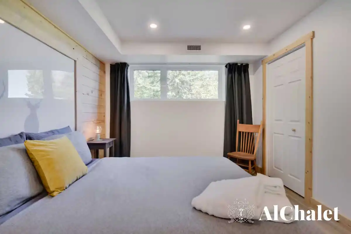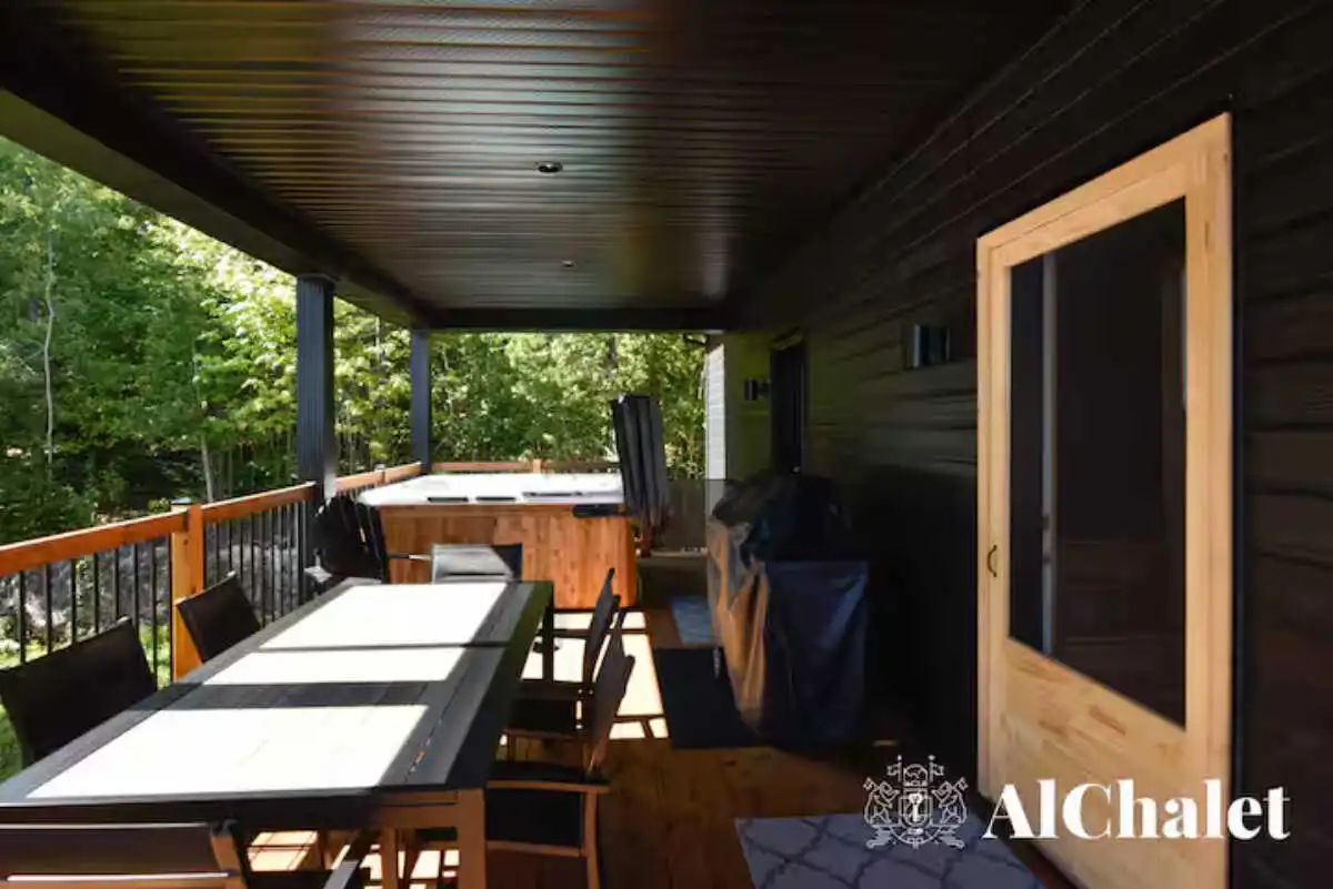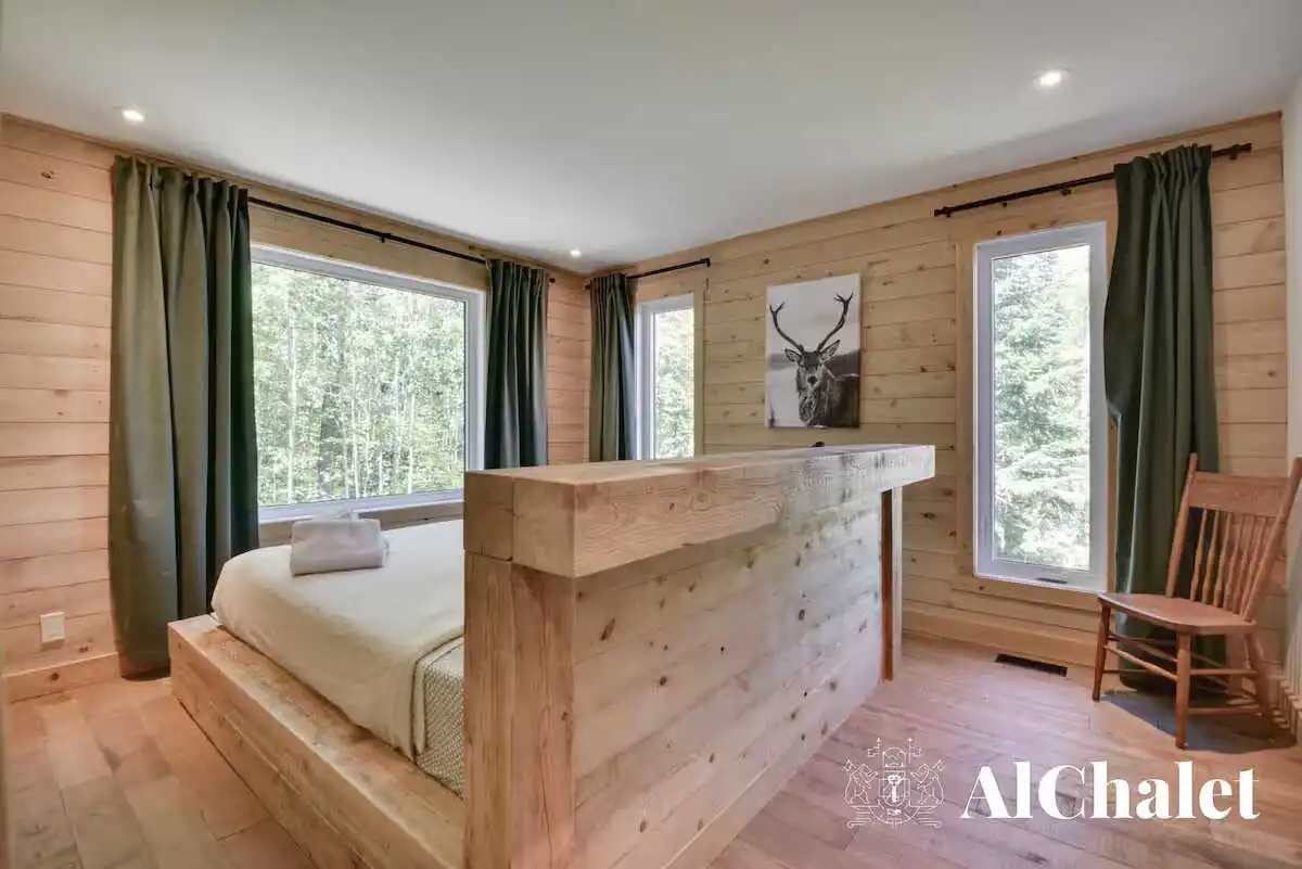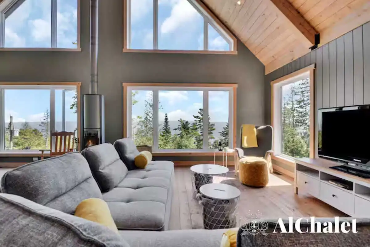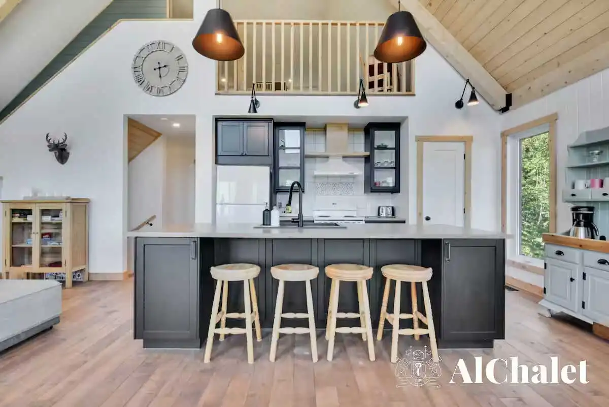 Shack Saison est un chalet aux allures de ranch, alliant simplicité et modernité. Ses teintes vert apportent une fraîcheur bienvenue, tandis que le toit cathédrale et les fenêtres inondent l'intérieur de lumière naturelle. offrant une belle vue sur le fleuve. Pouvant accueillir jusqu'à 8 personnes avec ses 4 chambres, 2 salles de bain, profitez d'un espace vibrant pour toute la famille. Son spa, foyer et terrasse avec sa vue, vous offrent tout le confort nécessaire pour un séjour mémorable.