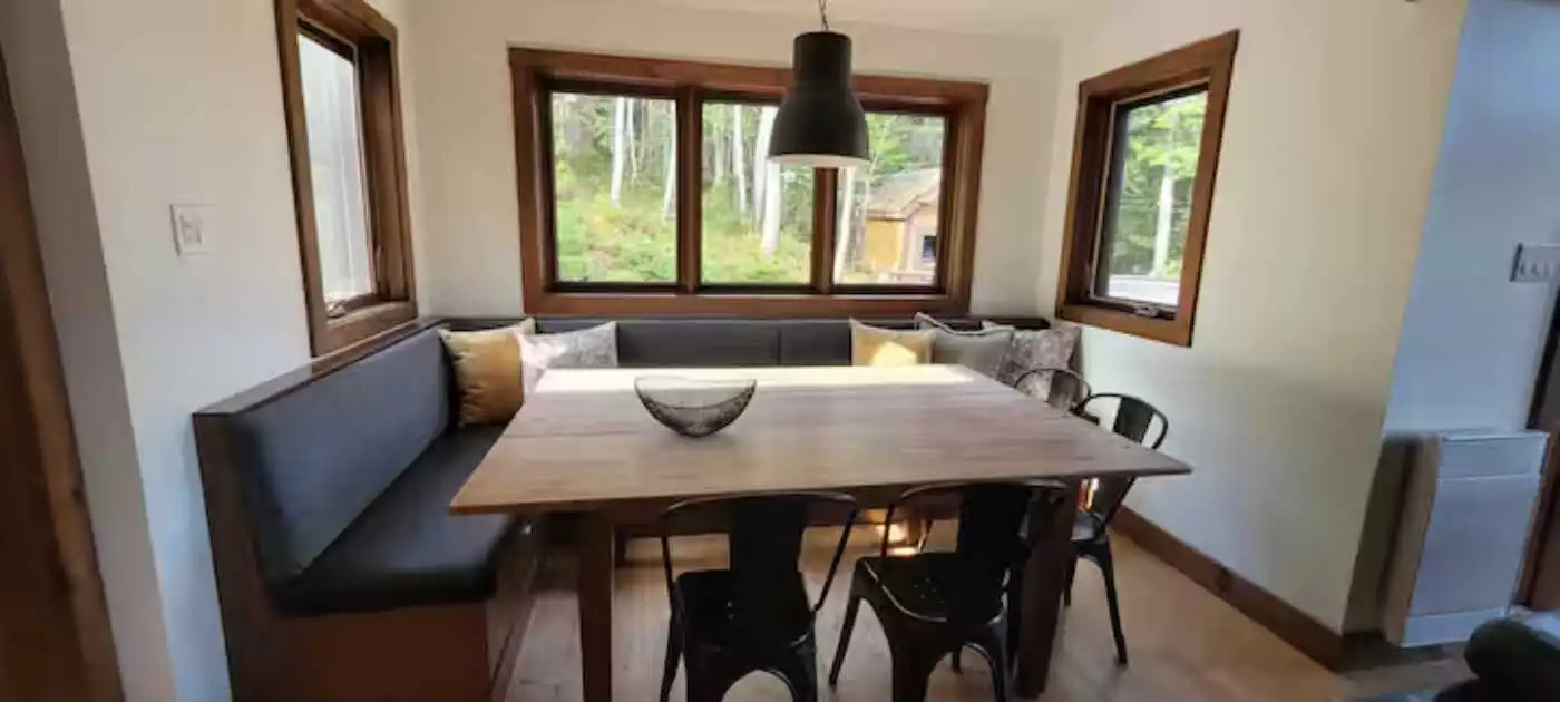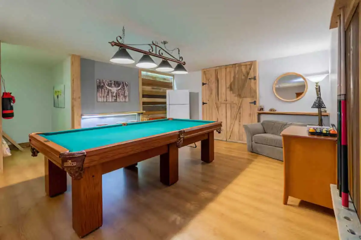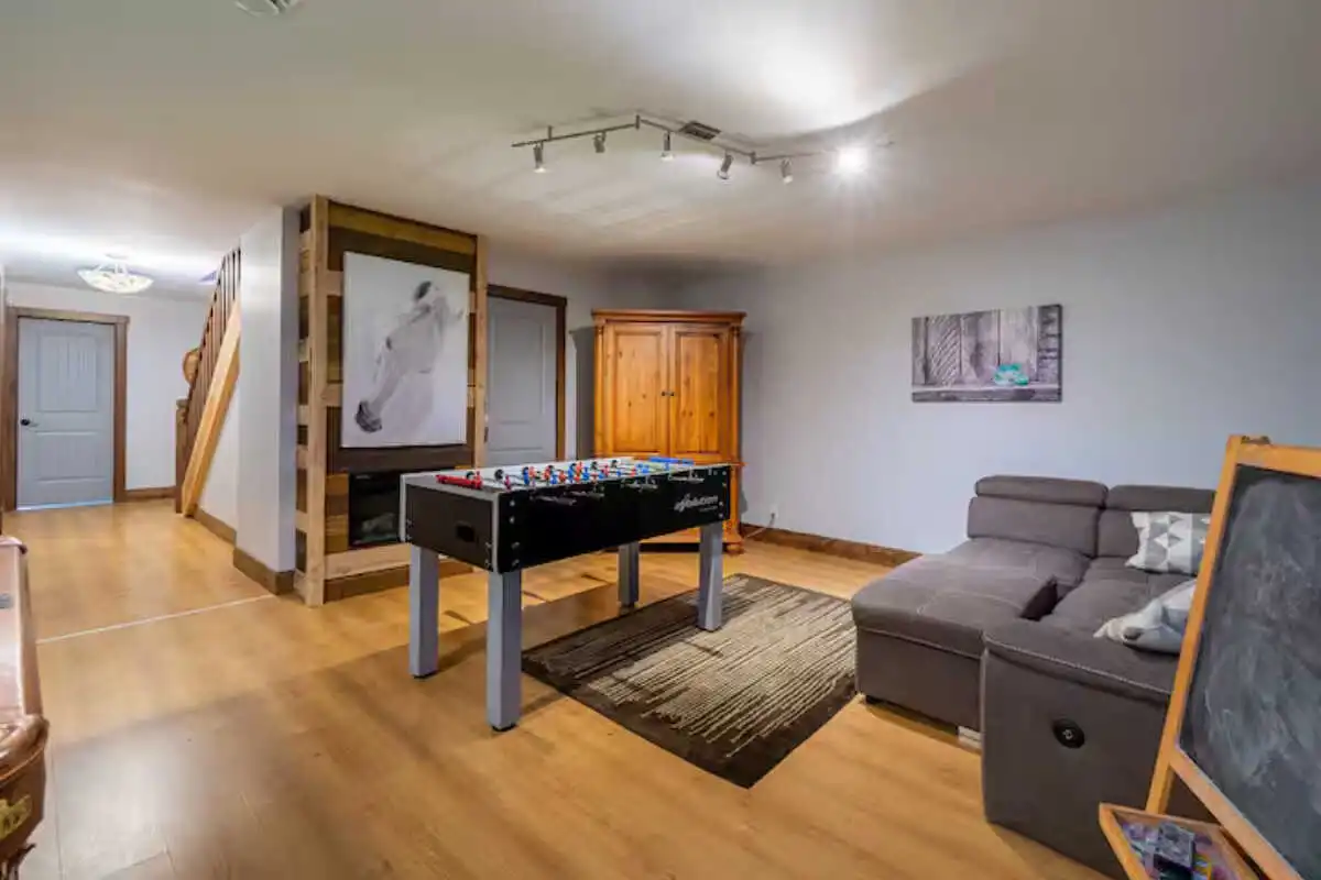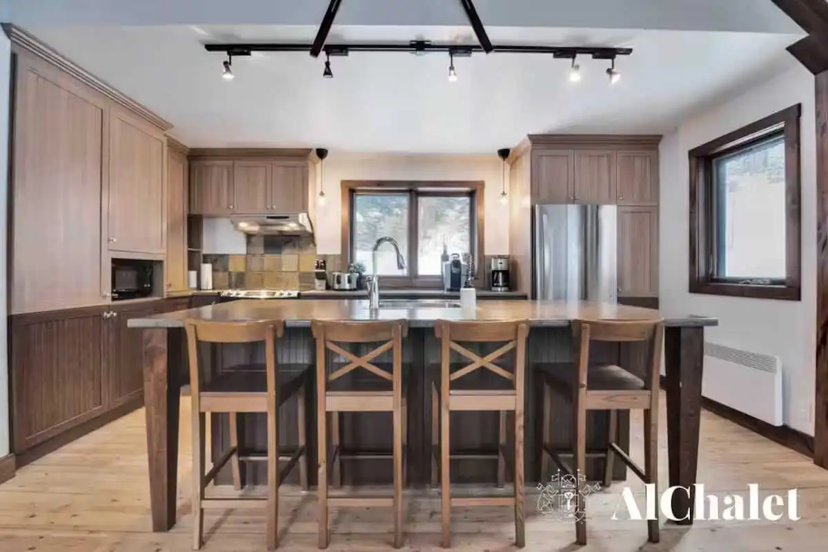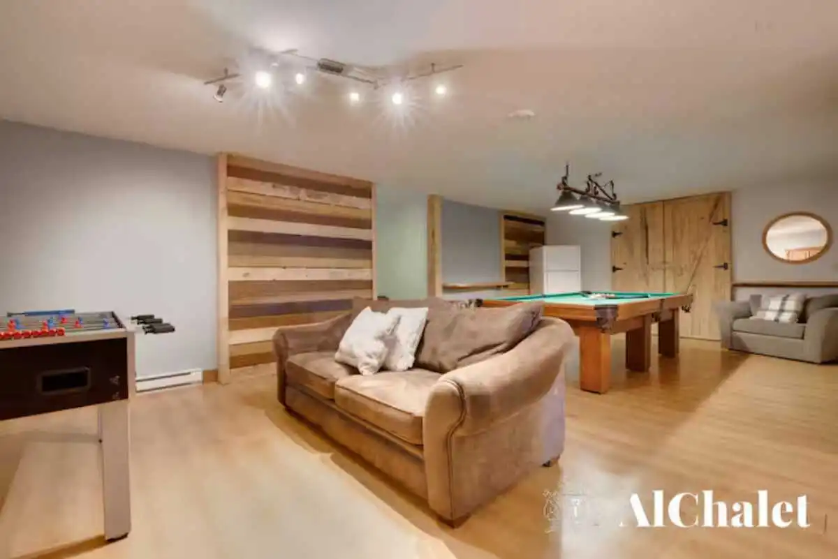 Découvrez ce havre de paix au style montagnard, doté d'un magnifique foyer et d'impressionnantes poutres apparentes. Avec six chambres, neuf lits et deux salles de bains, cette résidence peut accueillir confortablement jusqu'à 14 personnes. La cuisine entièrement équipée comporte un îlot et une table à manger pour accueillir l'ensemble du groupe. Détendez-vous dans le spa ou profitez du billard, du baby-foot ou du foyer extérieur, pour un séjour mémorable avec vos proches.
