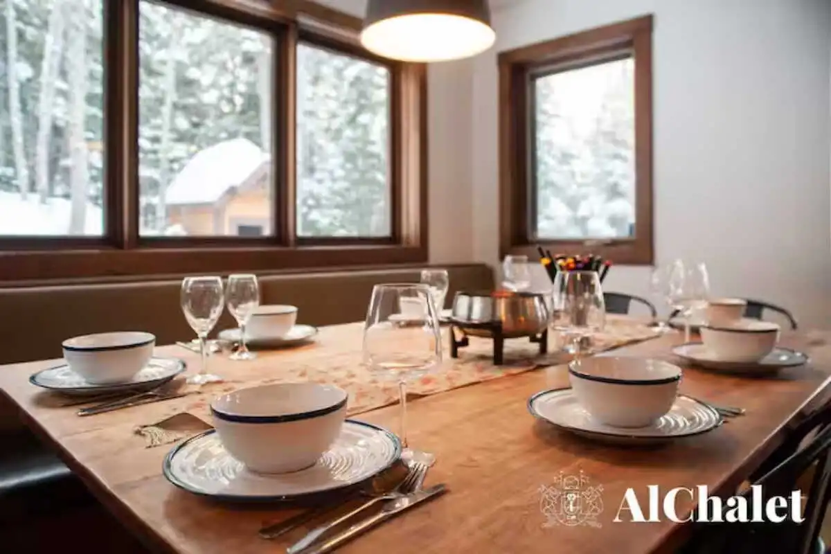 À l'extérieur, les vastes terrasses offrent une vue imprenable sur les montagnes environnantes, créant un cadre idéal pour vos repas en plein air ou vos matinées tranquilles, café en main. Le chalet propose également un spa extérieur pour un moment de relaxation bien mérité après une journée d'activités, ainsi qu'un foyer extérieur où vous pourrez vous retrouver autour d'un feu crépitant, sous le ciel étoilé.