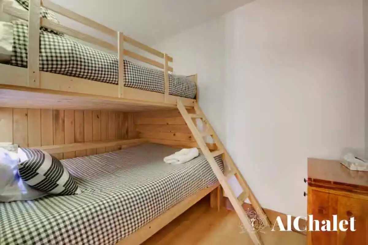 Le chalet dispose de six chambres spacieuses, offrant un total de neuf lits, parfaits pour accueillir confortablement jusqu'à 14 personnes. Les deux salles de bain sont bien équipées, avec une douche et une baignoire pour un maximum de confort, permettant à chaque invité de se détendre en toute tranquillité.