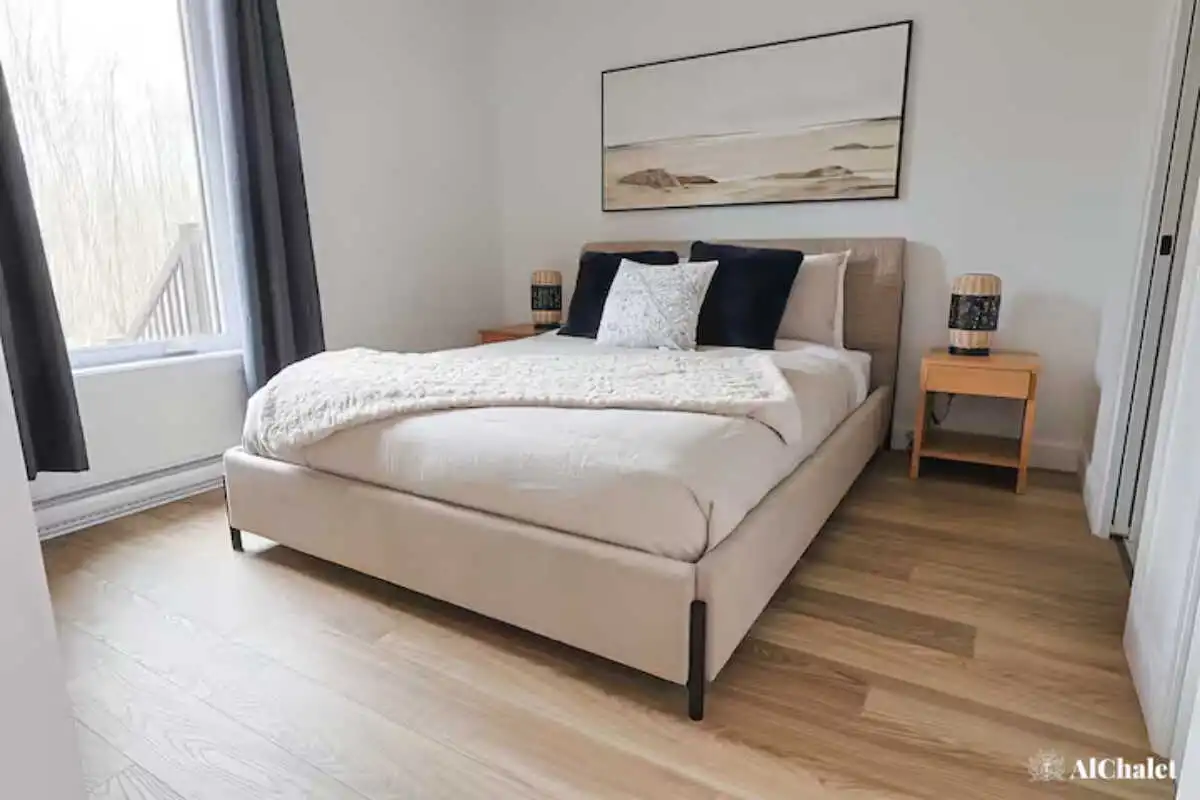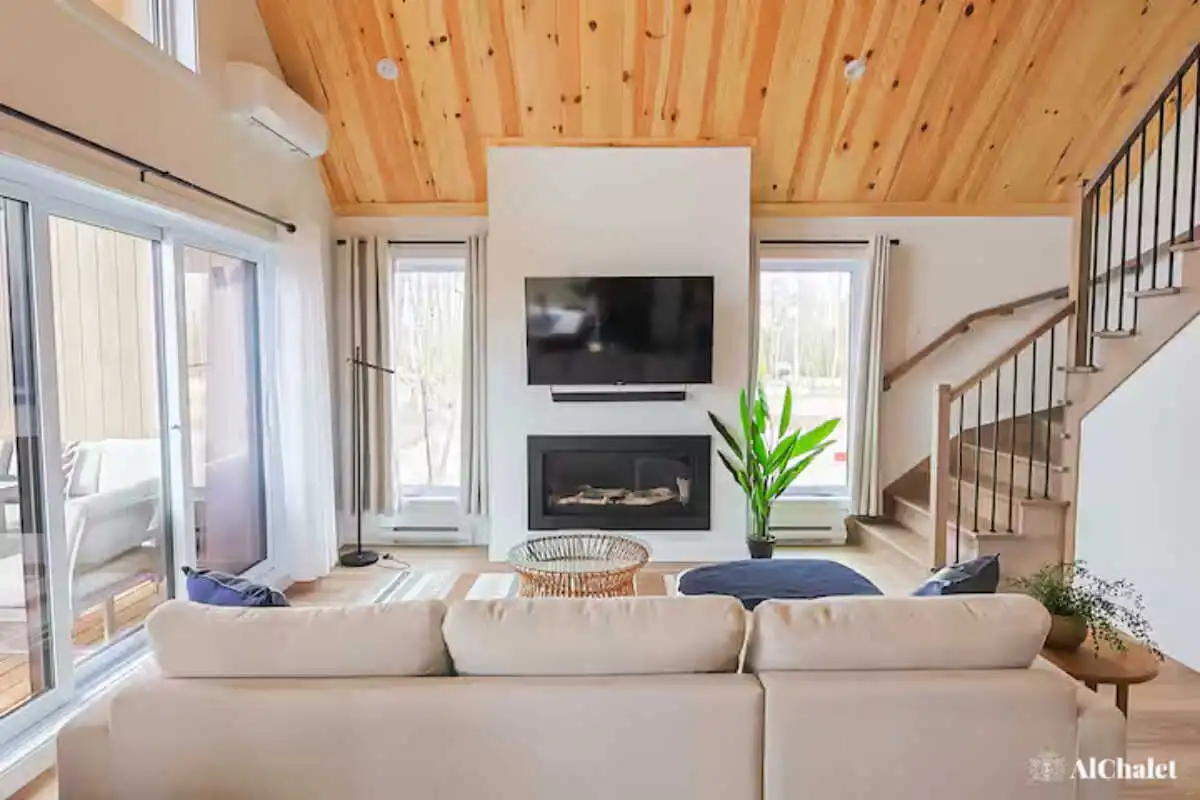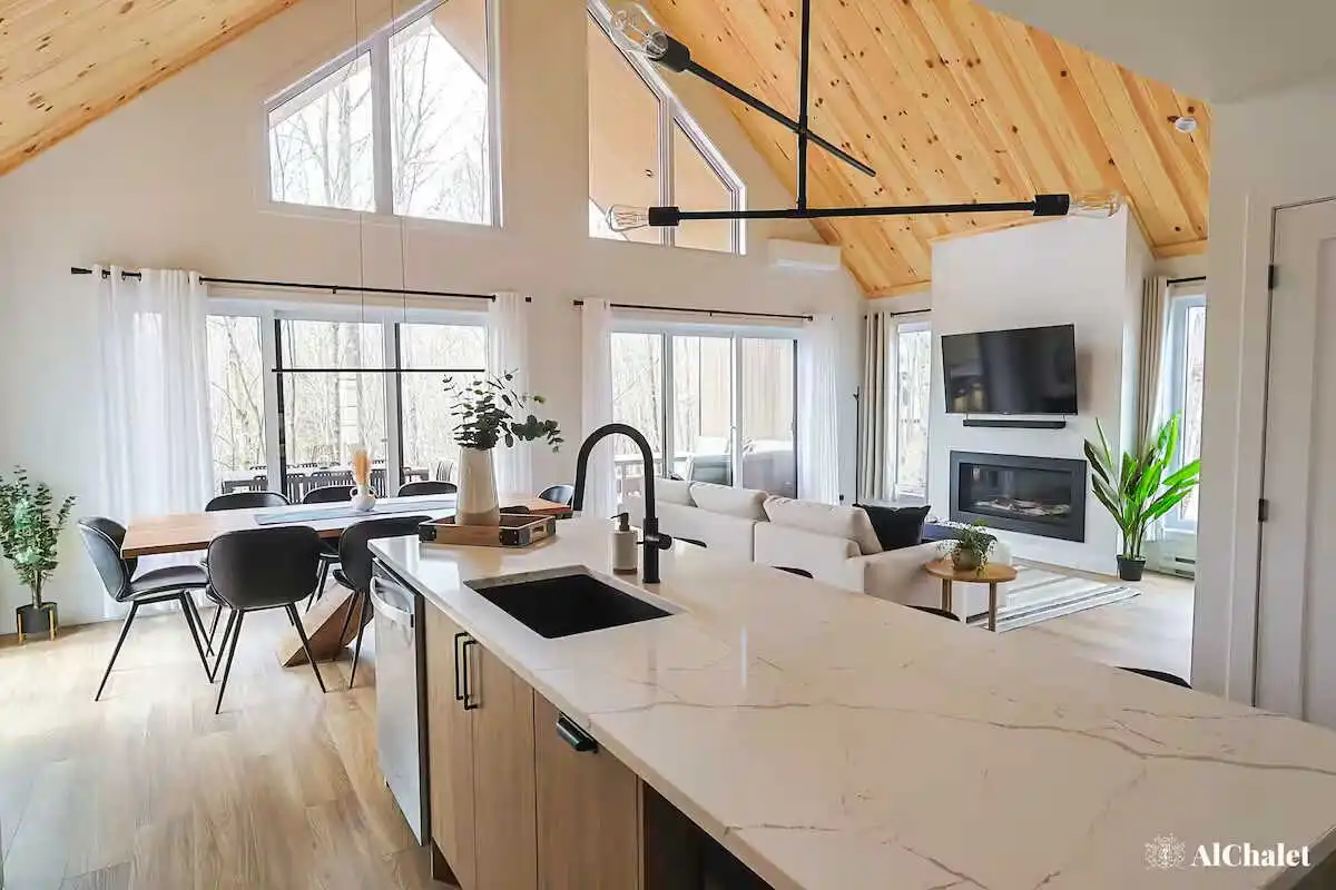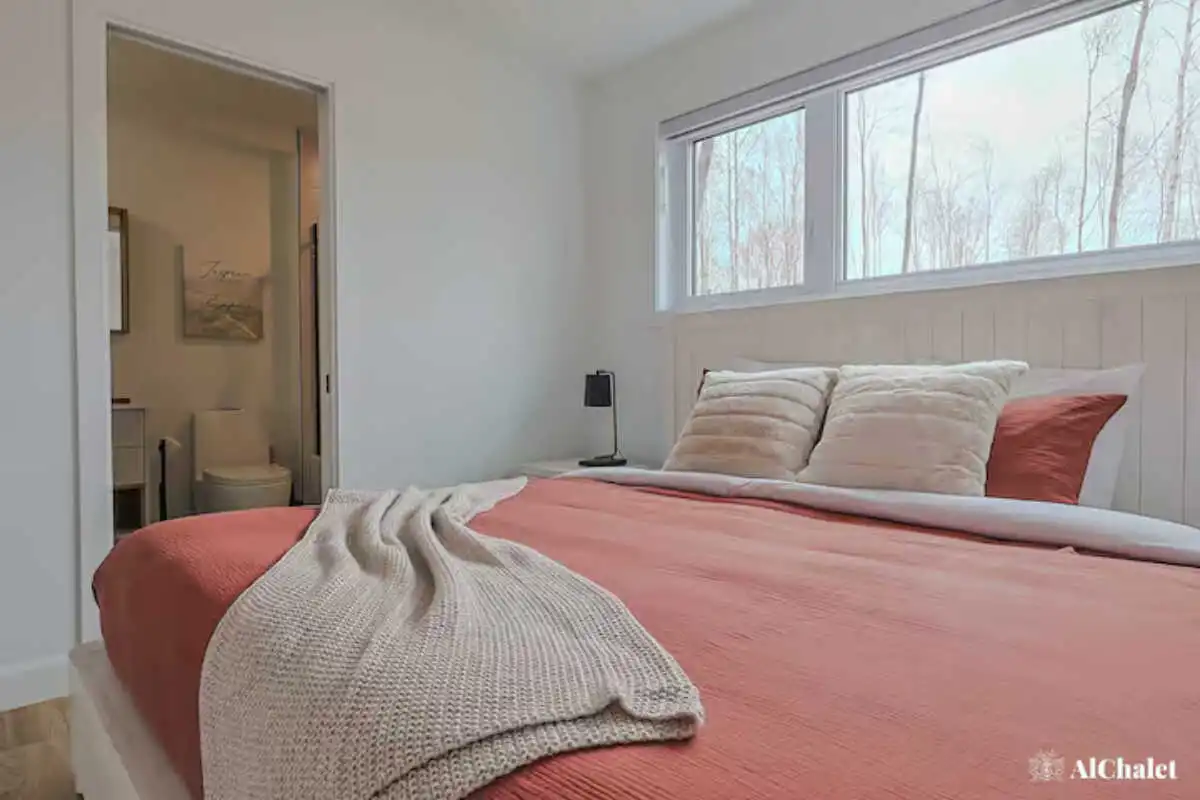 Le Bosquet vous accueille au cœur du Domaine du Grand Portneuf dans un décor moderne et minimaliste, parfait pour se ressourcer en nature. Avec ses grandes fenêtres et son toit cathédrale, la lumière naturelle habille les espaces de vie d’une ambiance apaisante, mettant en valeur une décoration soignée, épurée et chaleureuse.