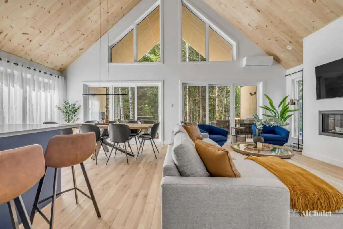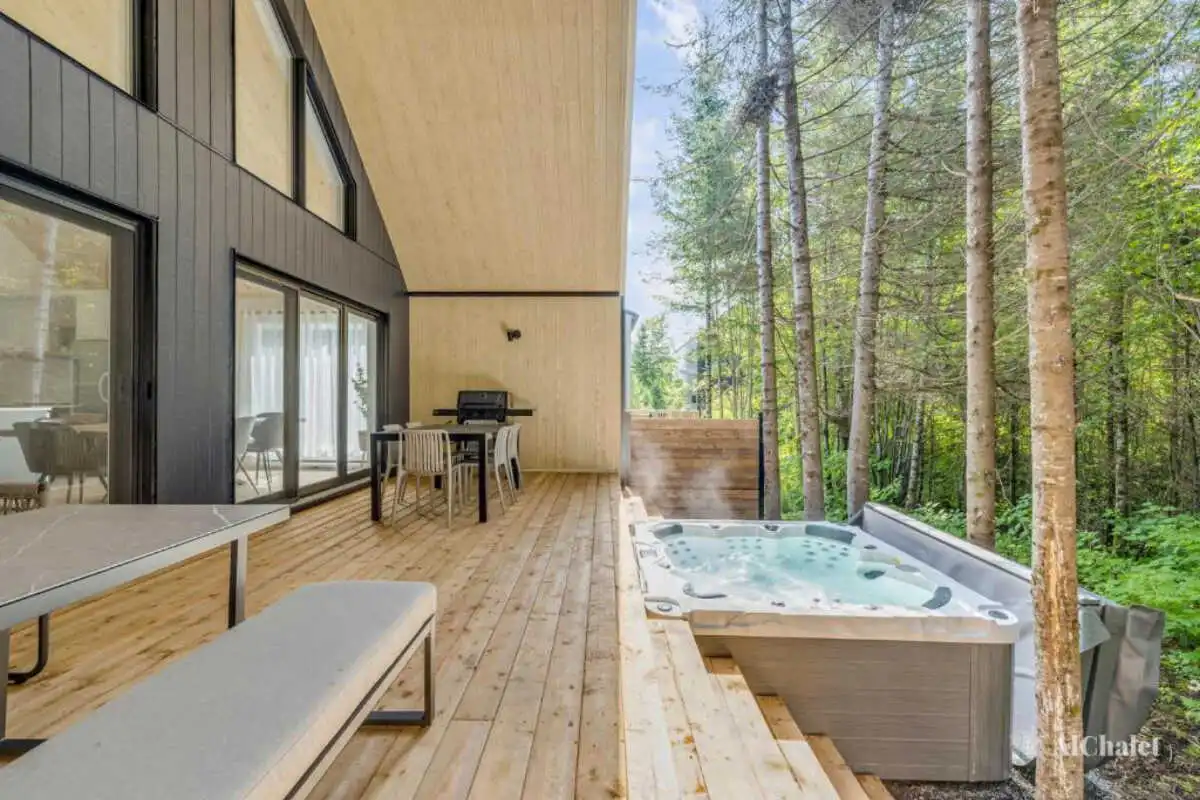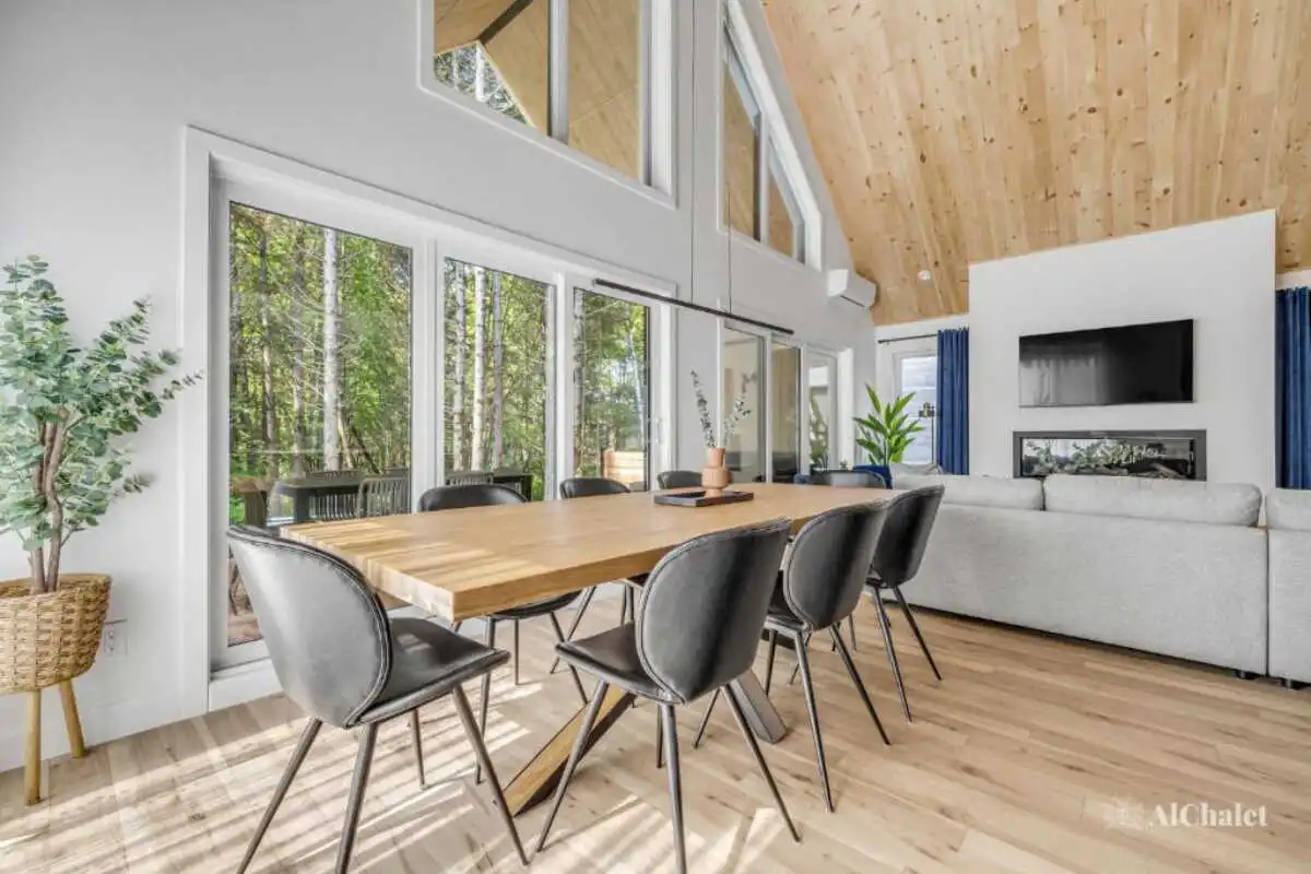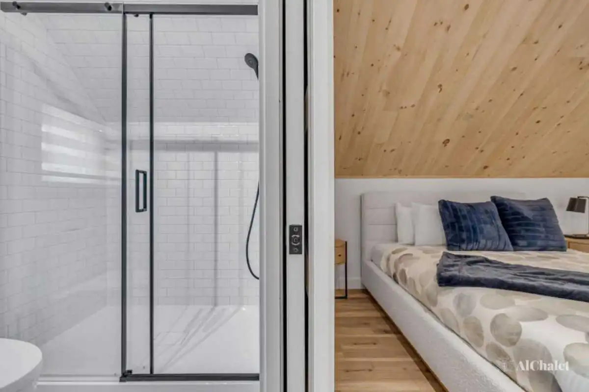 Pouvant accueillir jusqu’à 8 personnes, le chalet offre 3 chambres, 3 salles de bain complètes et un divan-lit, parfaits pour des retrouvailles en famille ou entre amis.