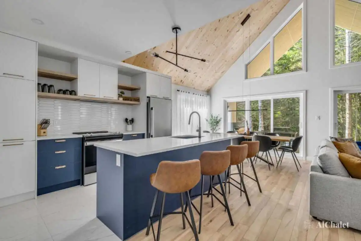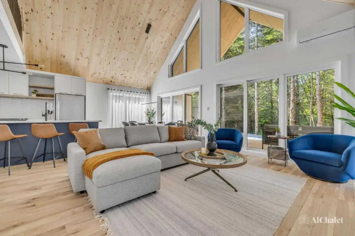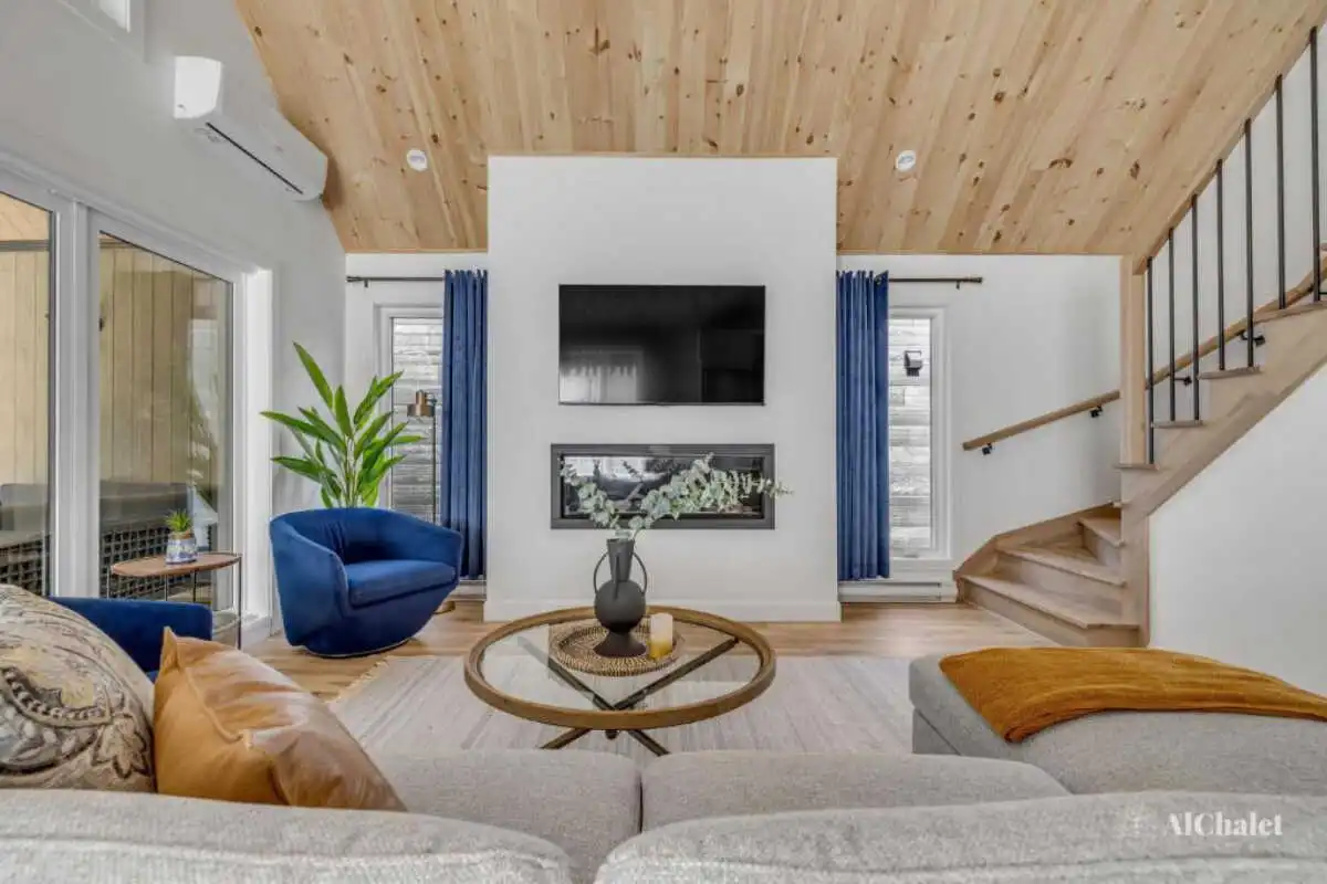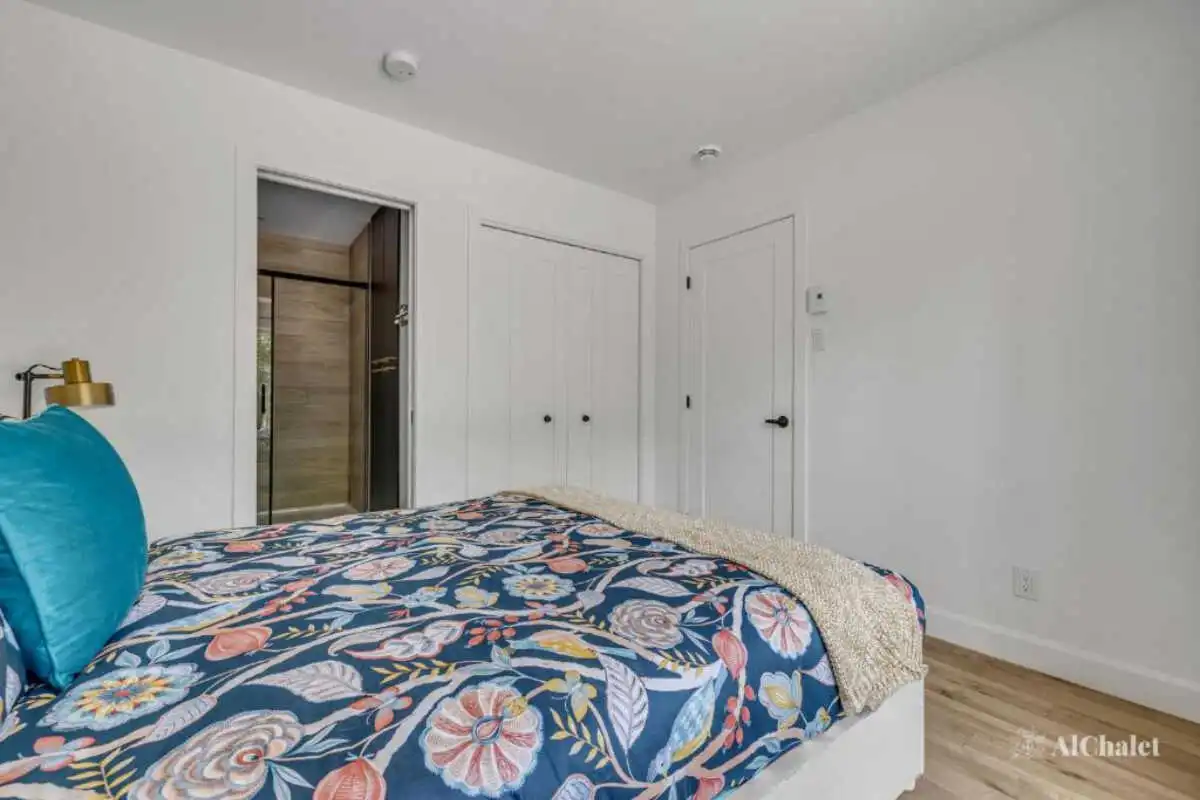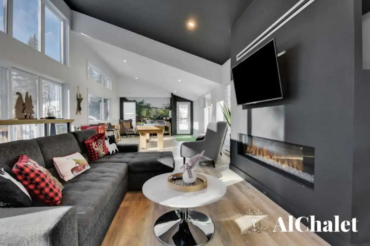 Pouvant accueillir jusqu’à 8 personnes, le chalet offre 3 chambres, 3 salles de bain complètes et un divan-lit, parfaits pour des retrouvailles en famille ou entre amis.