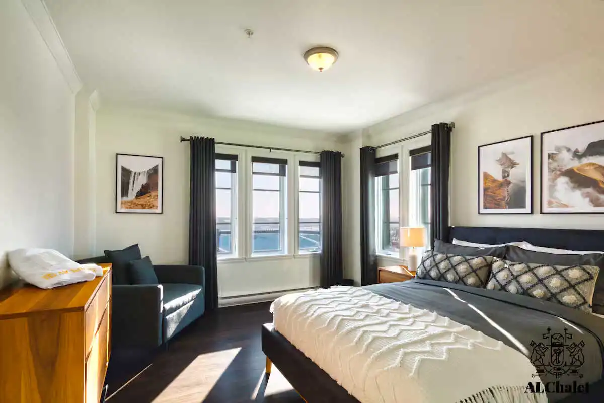 Faites l'expérience du luxe dans notre Chic Condo près des chutes Montmorency. Conçu pour accueillir jusqu'à 4 personnes, il offre des intérieurs modernes, de grandes fenêtres avec des vues imprenables, une cuisine équipée, une chambre à coucher élégante avec des draps de qualité et un salon confortable. Son excellent emplacement permet d'accéder facilement aux chutes majestueuses à 5 minutes en voiture. Idéal pour les affaires comme pour les loisirs, ce condo vous garantit un ... Lire la suite