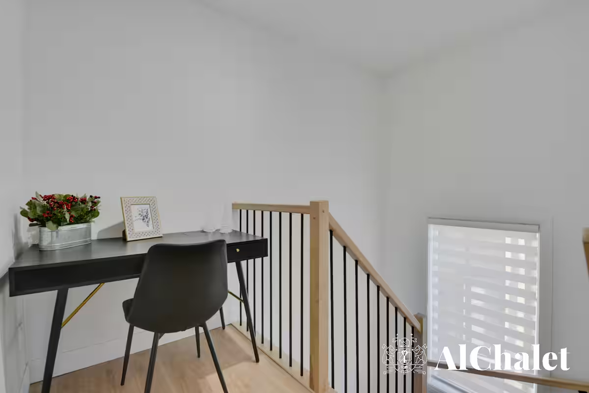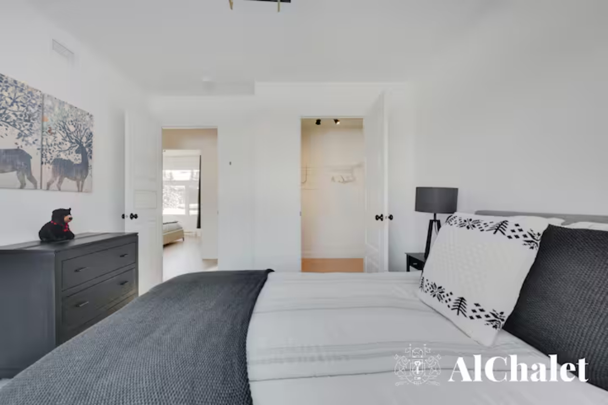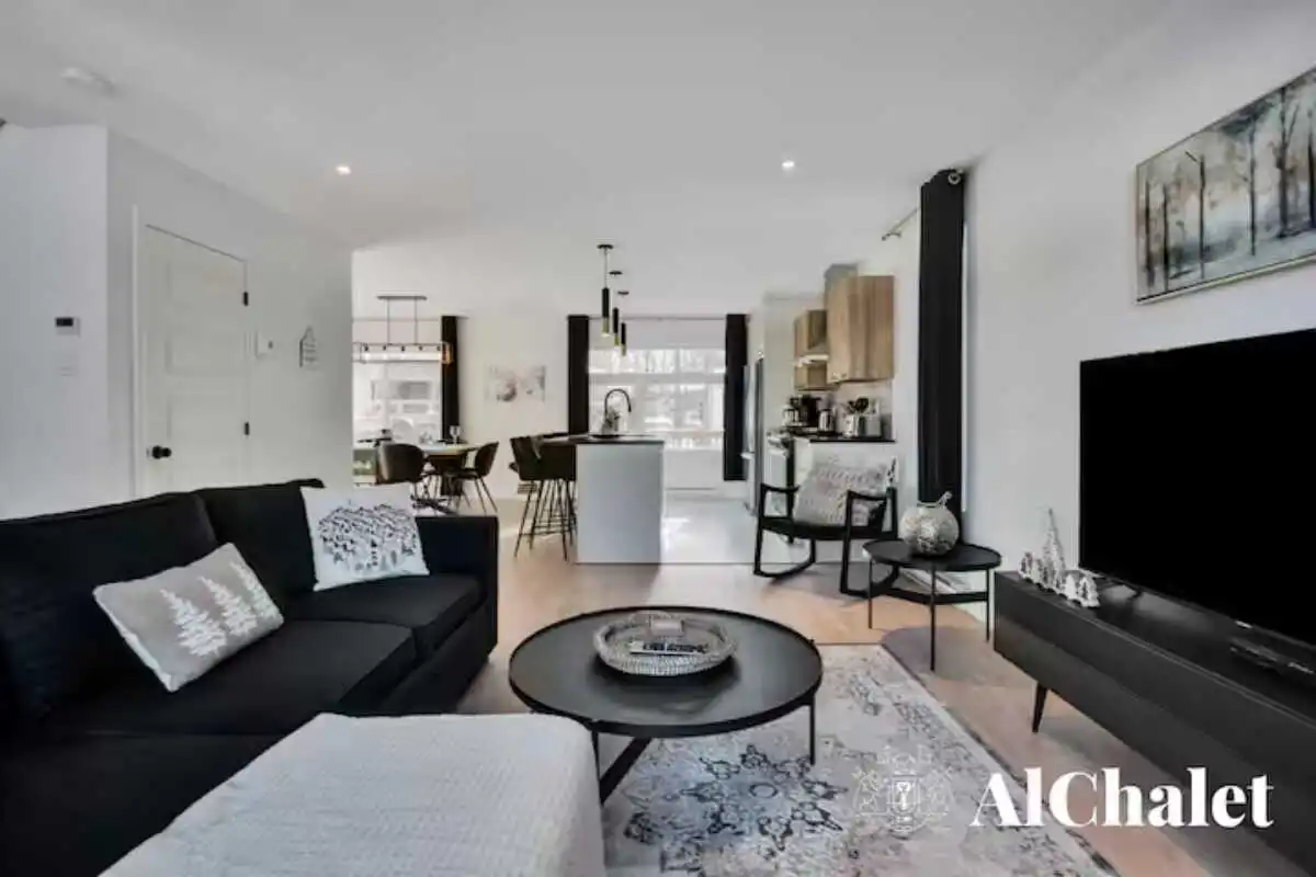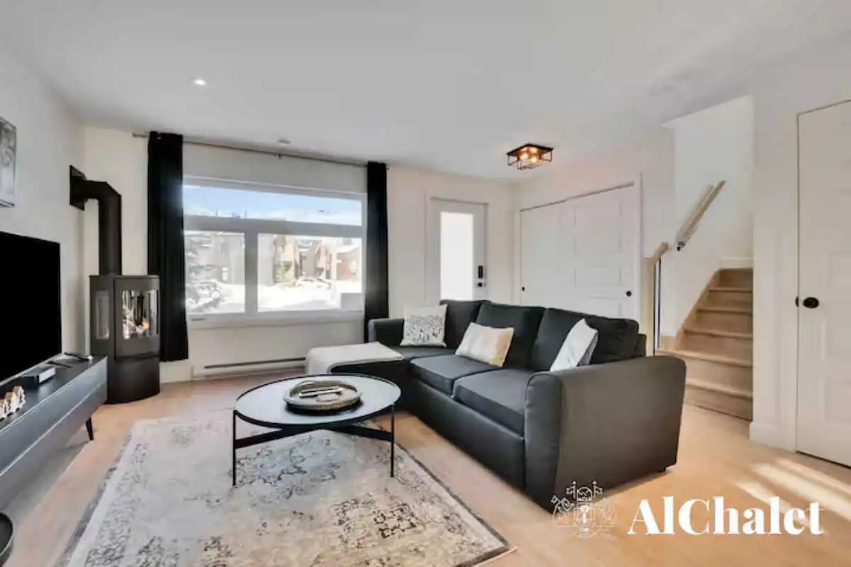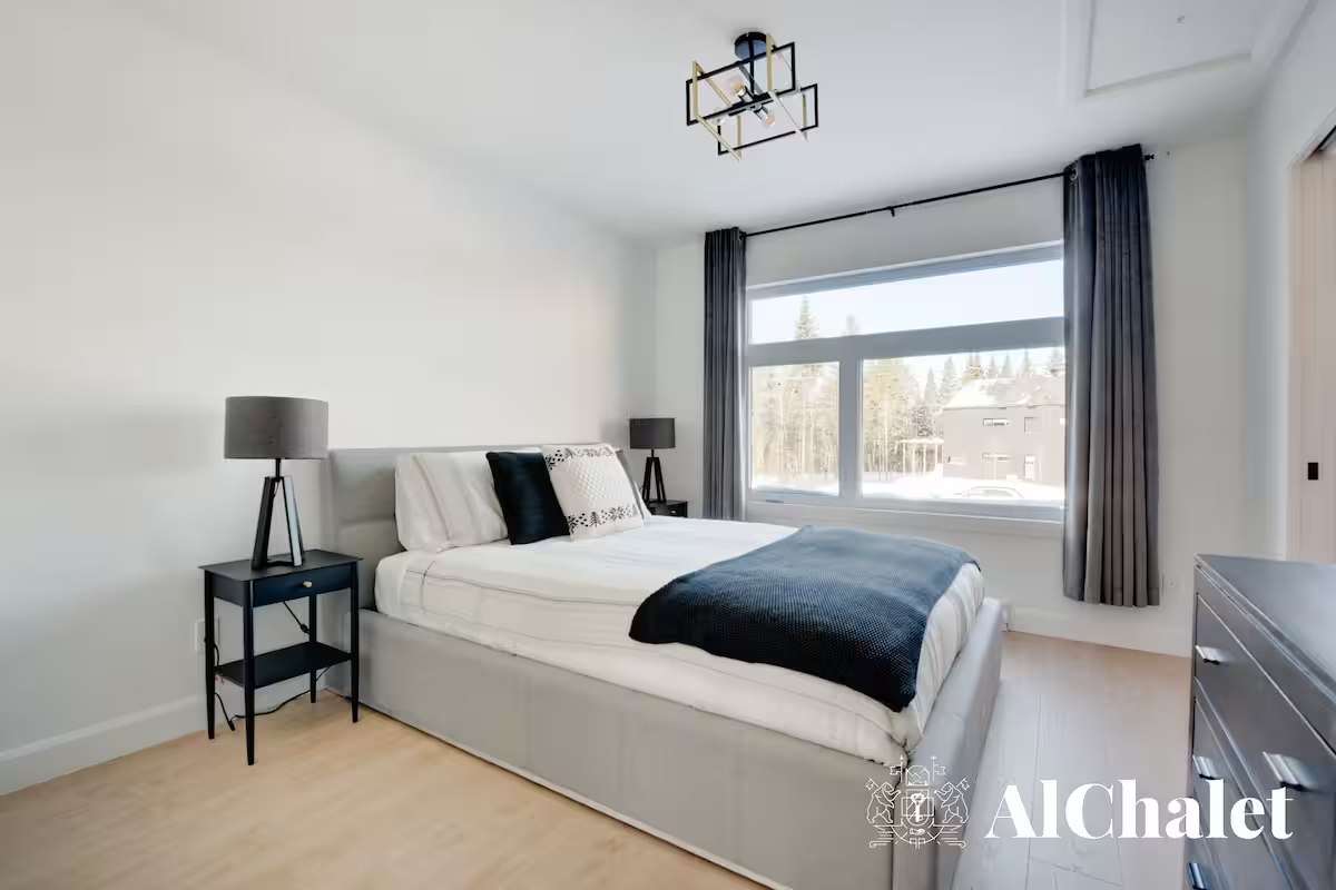 Découvrez le chalet Forêt Blanche, un havre de paix moderne et chaleureux, idéal pour un séjour en famille ou avec vos proches. Situé au cœur du Domaine du Grand Portneuf, ce chalet cozy et fonctionnel peut accueillir jusqu’à 7 personnes avec 2 chambres équipées de lits queen, un canapé-lit avec surmatelas pour un confort optimal, ainsi que deux matelas supplémentaires dans les chambres.