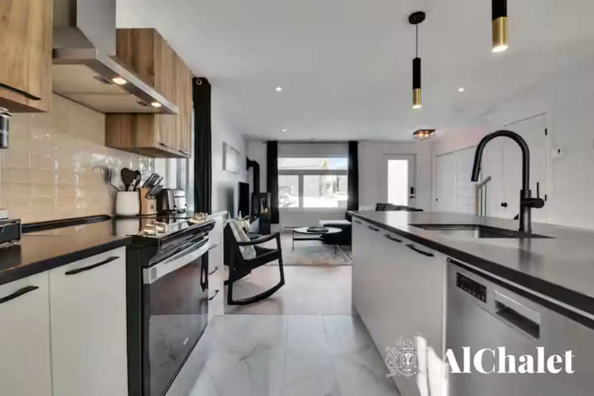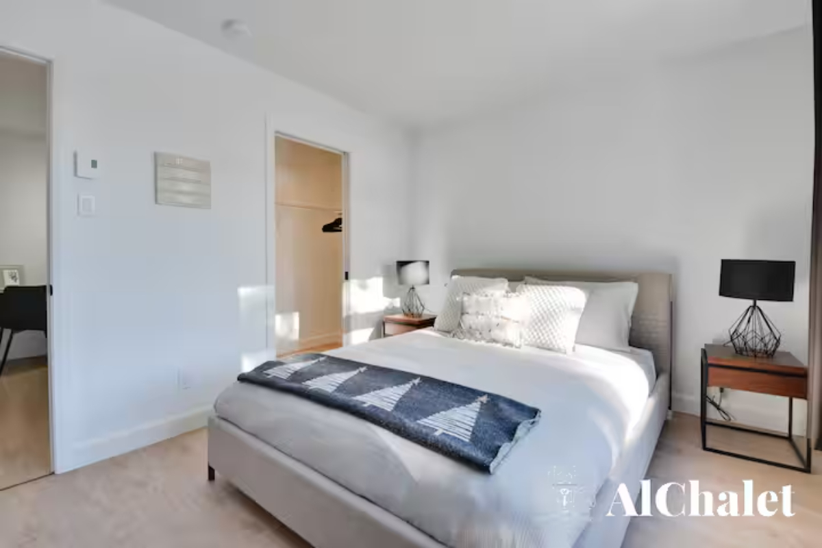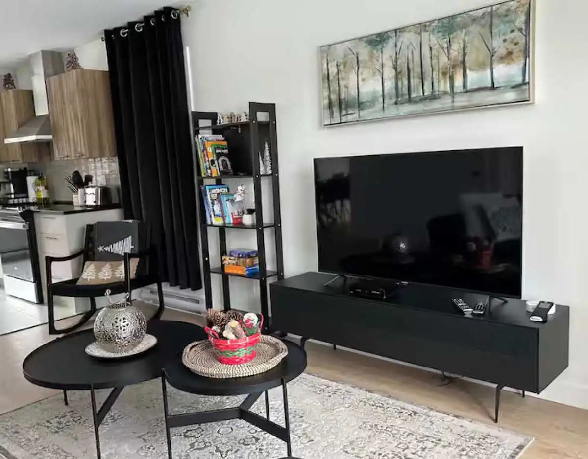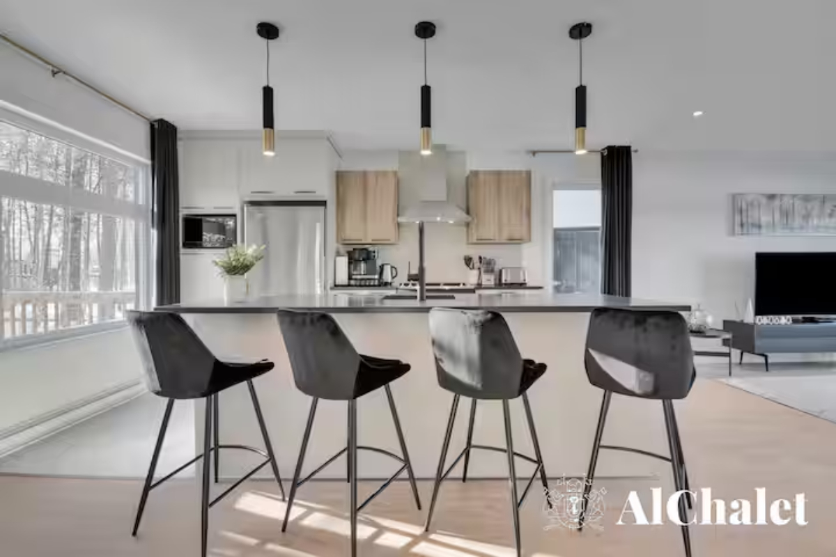 Découvrez le chalet Forêt Blanche, un havre de paix moderne et chaleureux, idéal pour un séjour en famille ou avec vos proches. Situé au cœur du Domaine du Grand Portneuf, ce chalet cozy et fonctionnel peut accueillir jusqu’à 7 personnes avec 2 chambres équipées de lits queen, un canapé-lit avec surmatelas pour un confort optimal, ainsi que deux matelas supplémentaires dans les chambres.