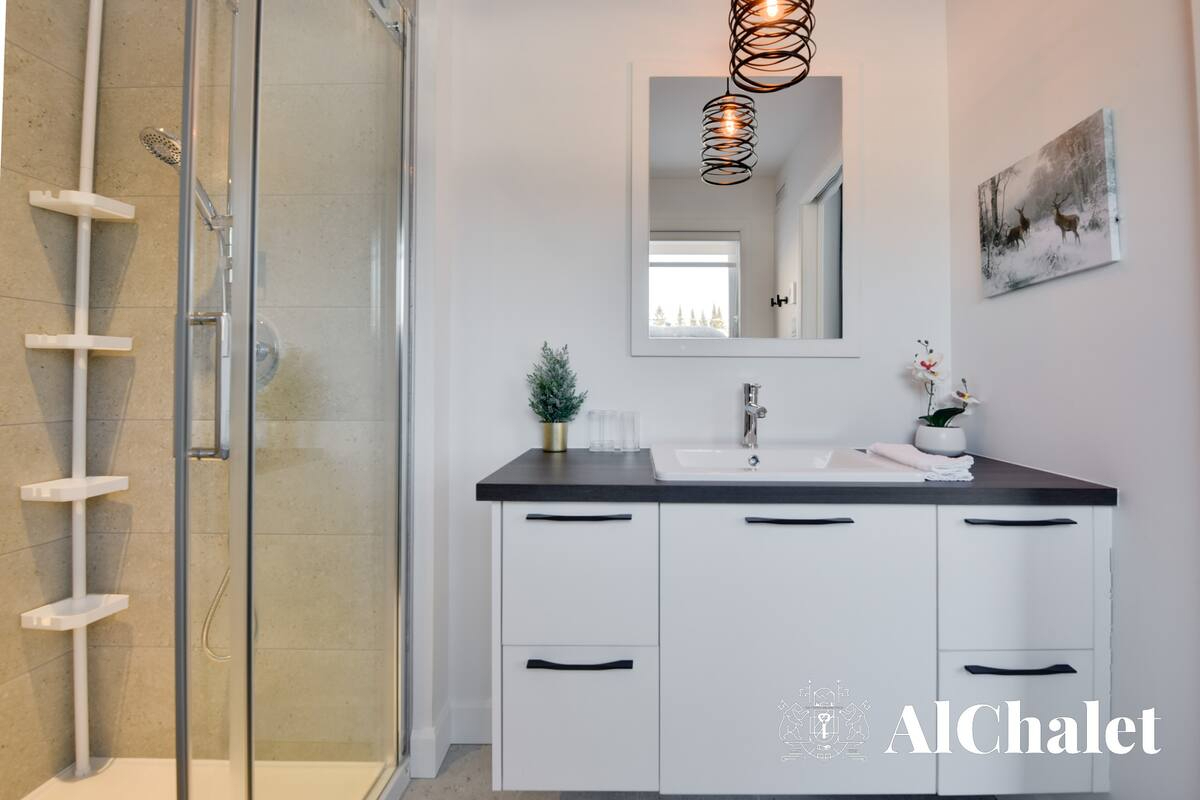 Nos invités ont accès à l'ensemble du chalet et à toutes ses installations. Vous pourrez également profiter des espaces communs avec le salon avec télé et billard, de la terrasse extérieure, de la piscine chauffée (été seulement), du sauna et du spa.