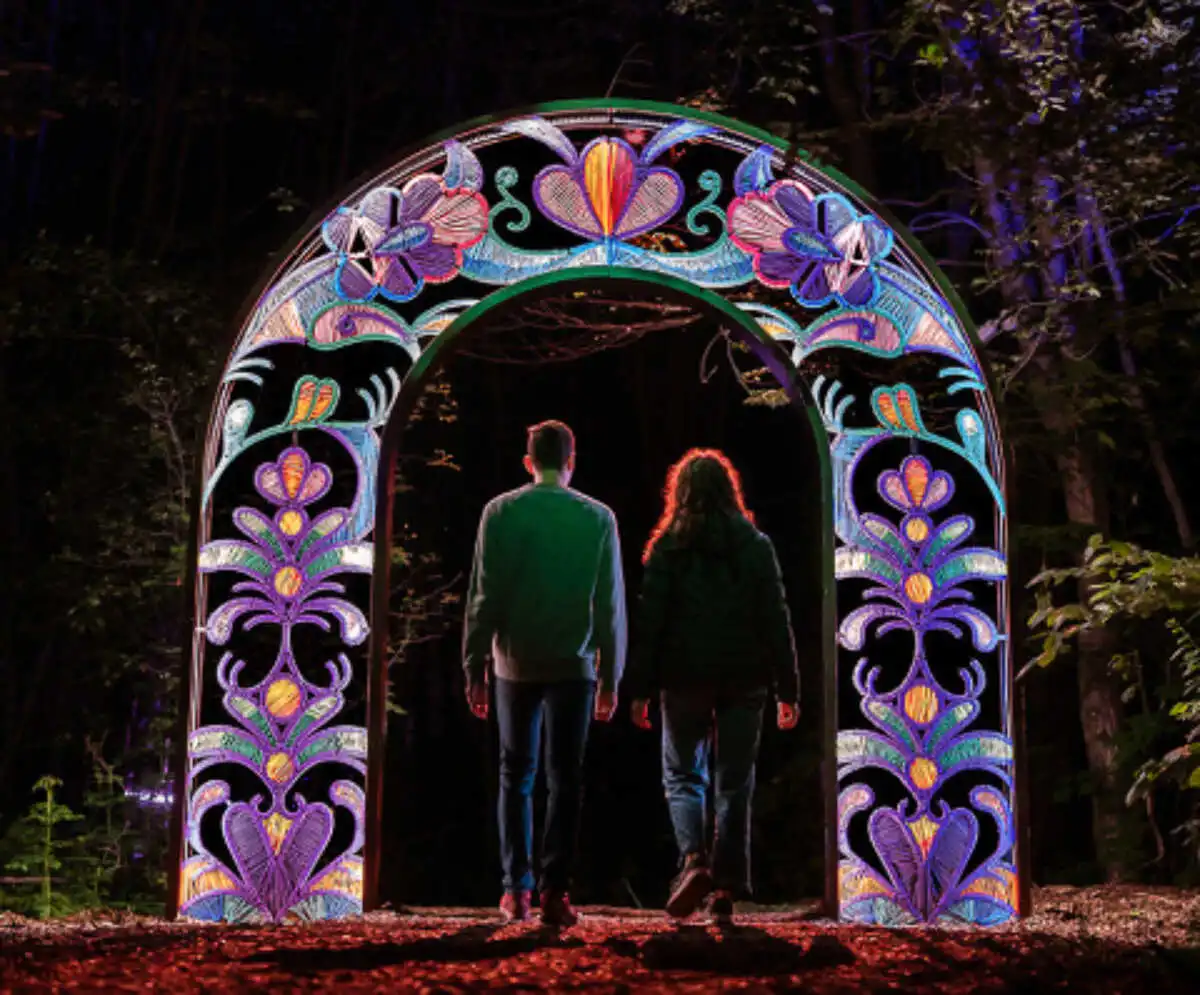 Dès la nuit tombée, Onhwa’ Lumina vous invite à parcourir un sentier enchanté de 1,2 km, illuminé par la magie de la lumière, du son et des projections immersives.