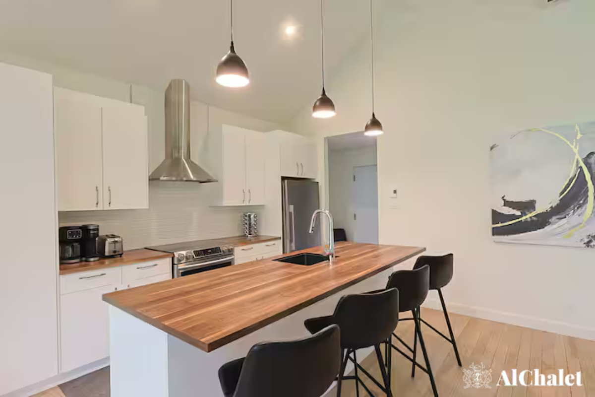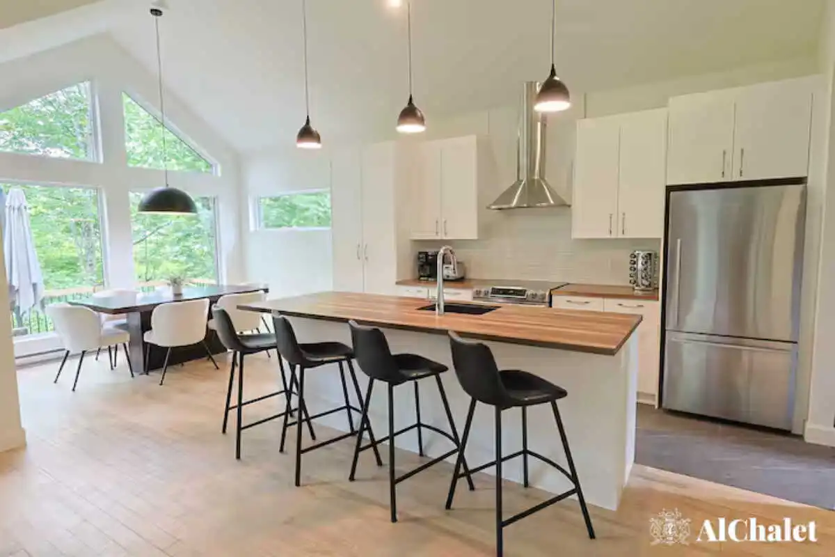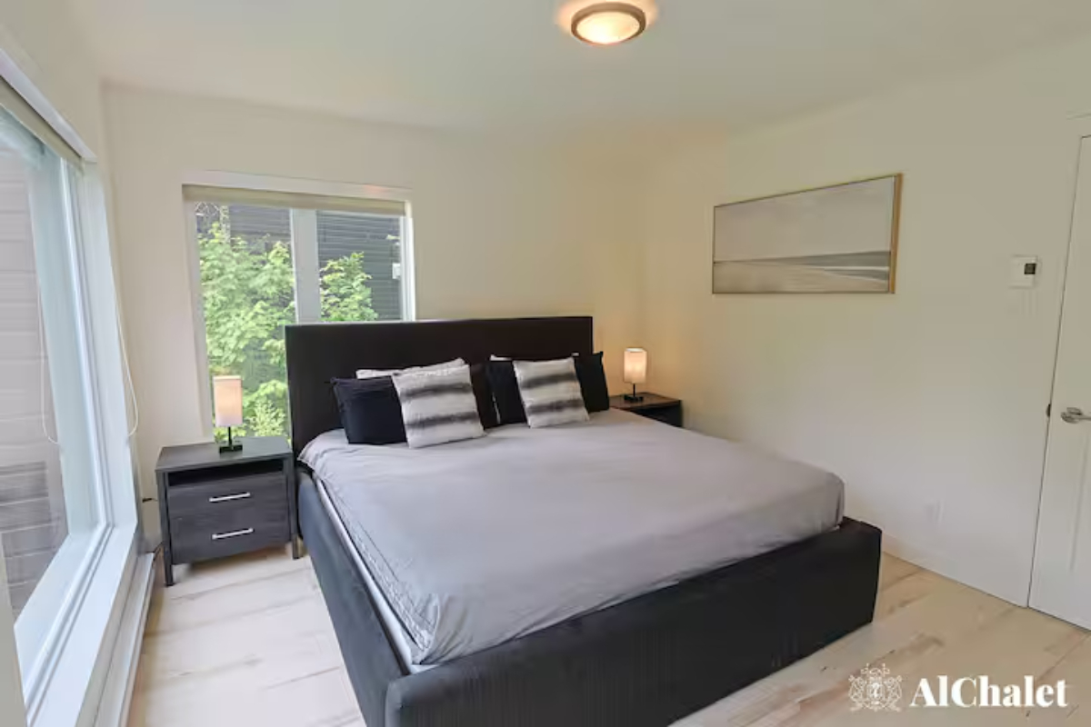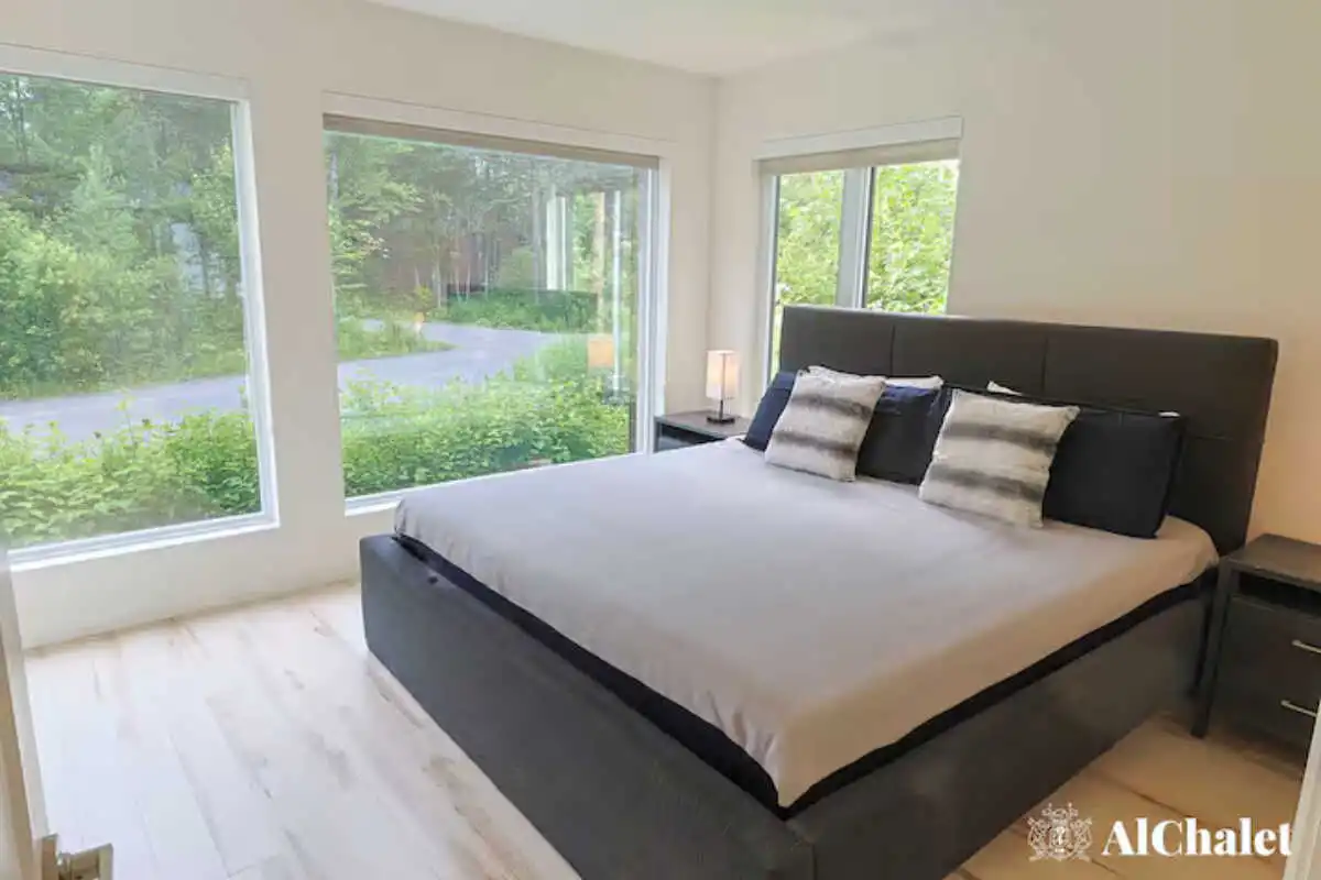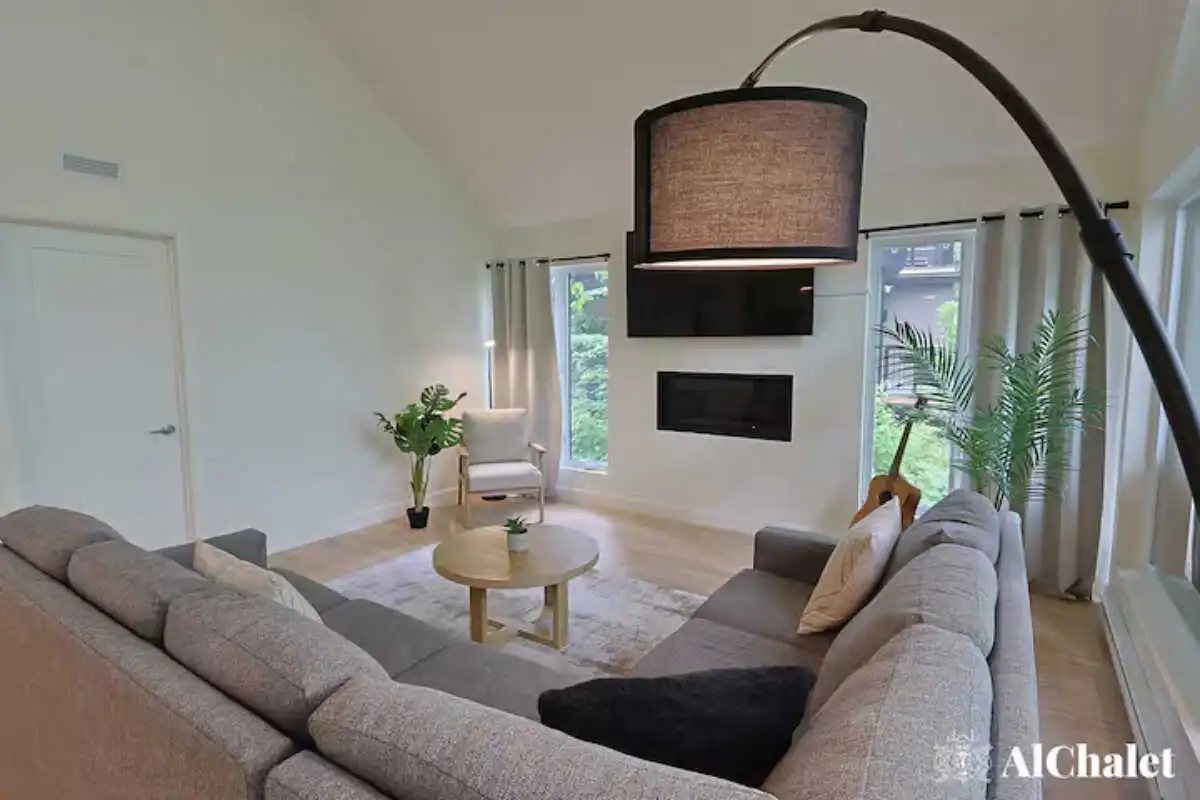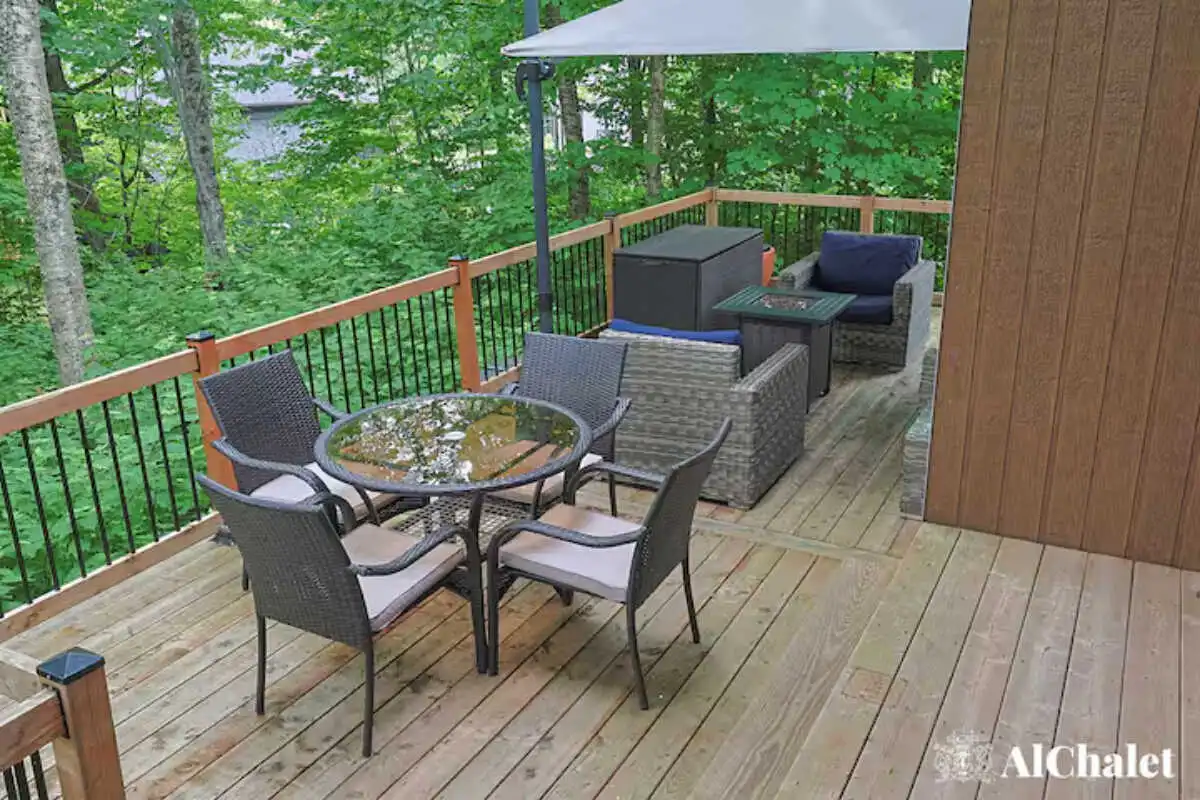 Avec ses 2 chambres, ses 2 salles de bain, et son foyer intérieur, le chalet offre tout le confort nécessaire pour se détendre en toute saison. À l’extérieur, la spacieuse terrasse devient un véritable lieu de rassemblement : coin salon, espace repas avec BBQ, foyer extérieur et spa privé avec vue sur le boisé, parfaits pour prolonger les soirées sous les étoiles.