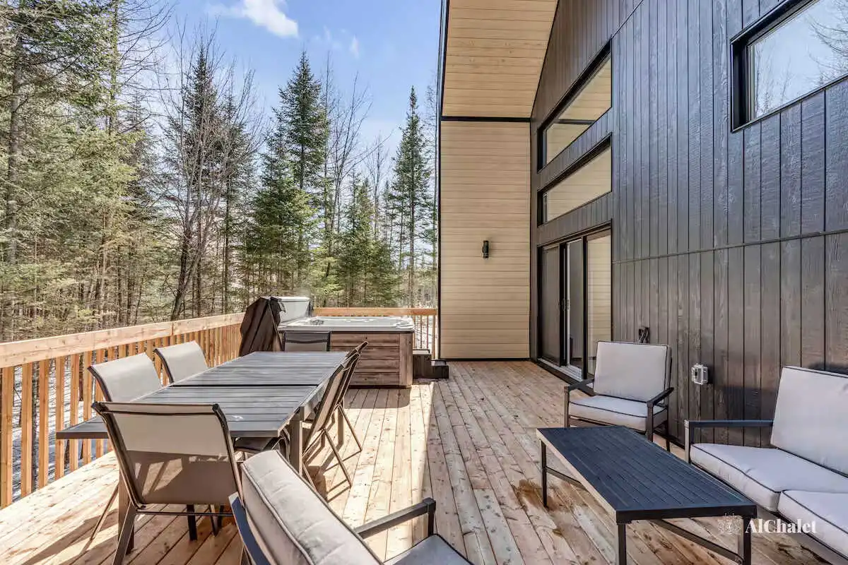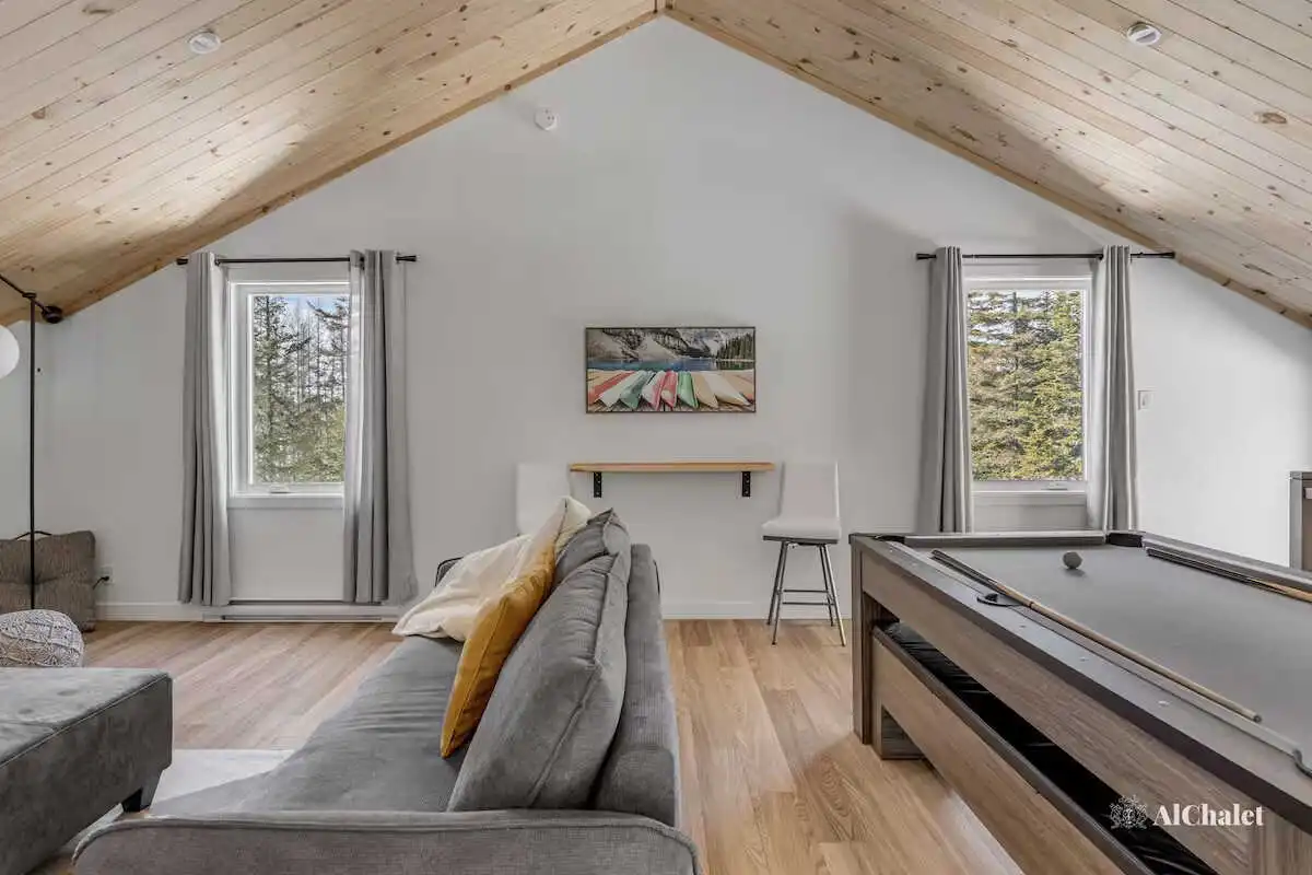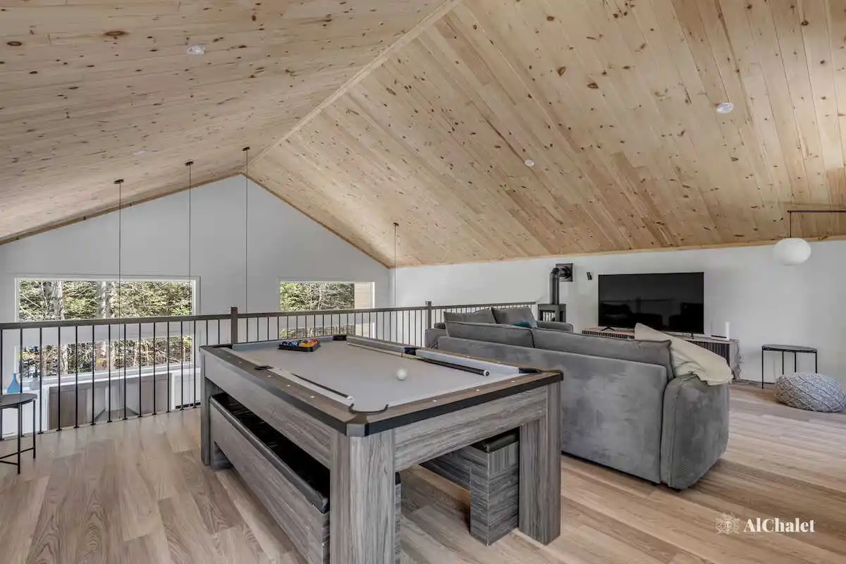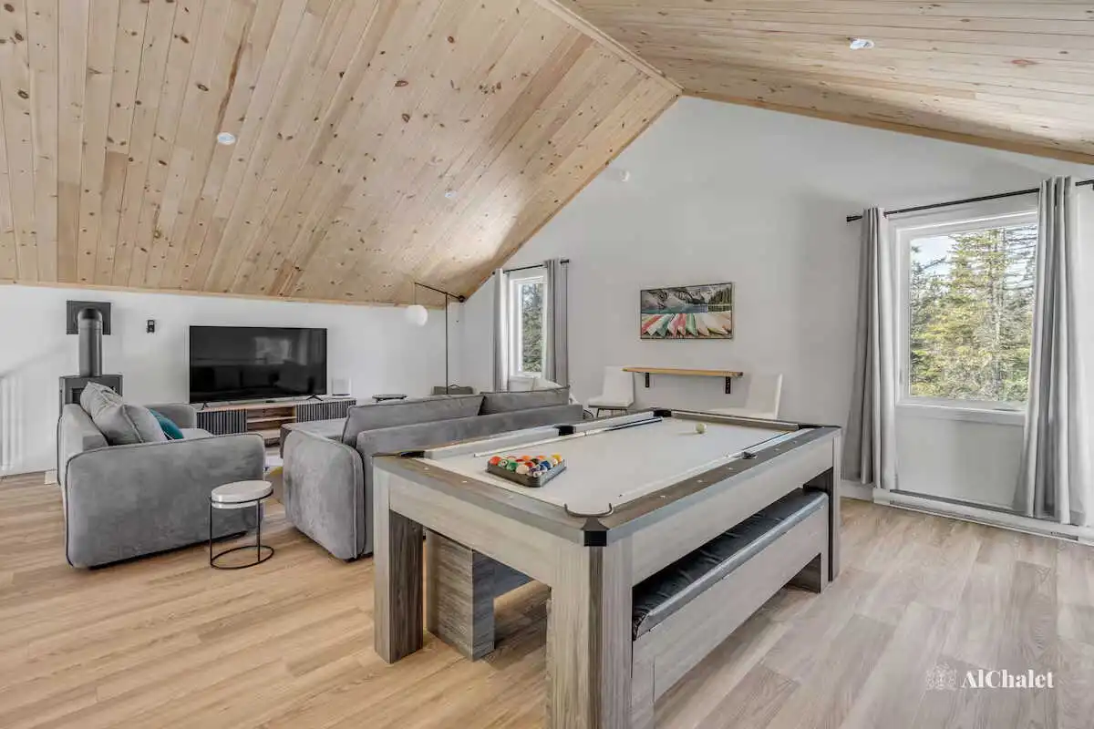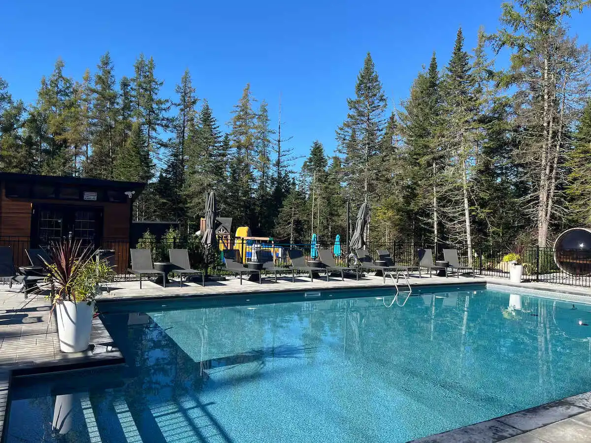 Nos clients ont accès à l'ensemble du chalet et à toutes ses installations. Vous pourrez également profiter des espaces communs avec la terrasse extérieure avec foyer, de la piscine chauffée (été seulement), du spa et du sauna.