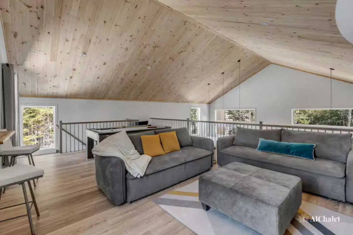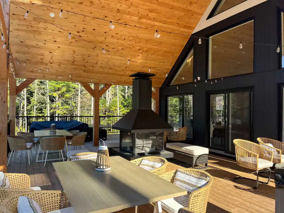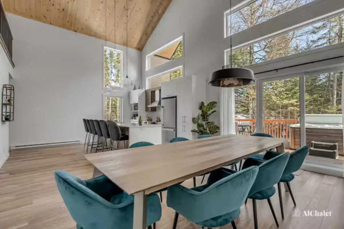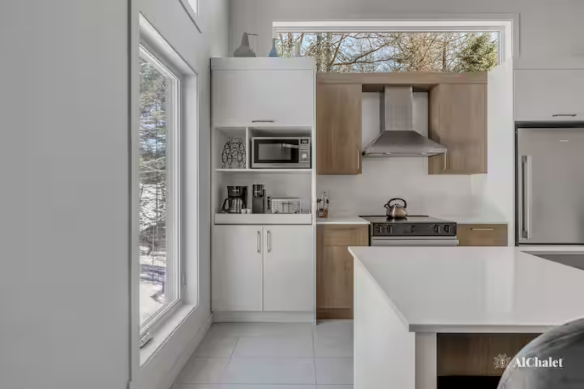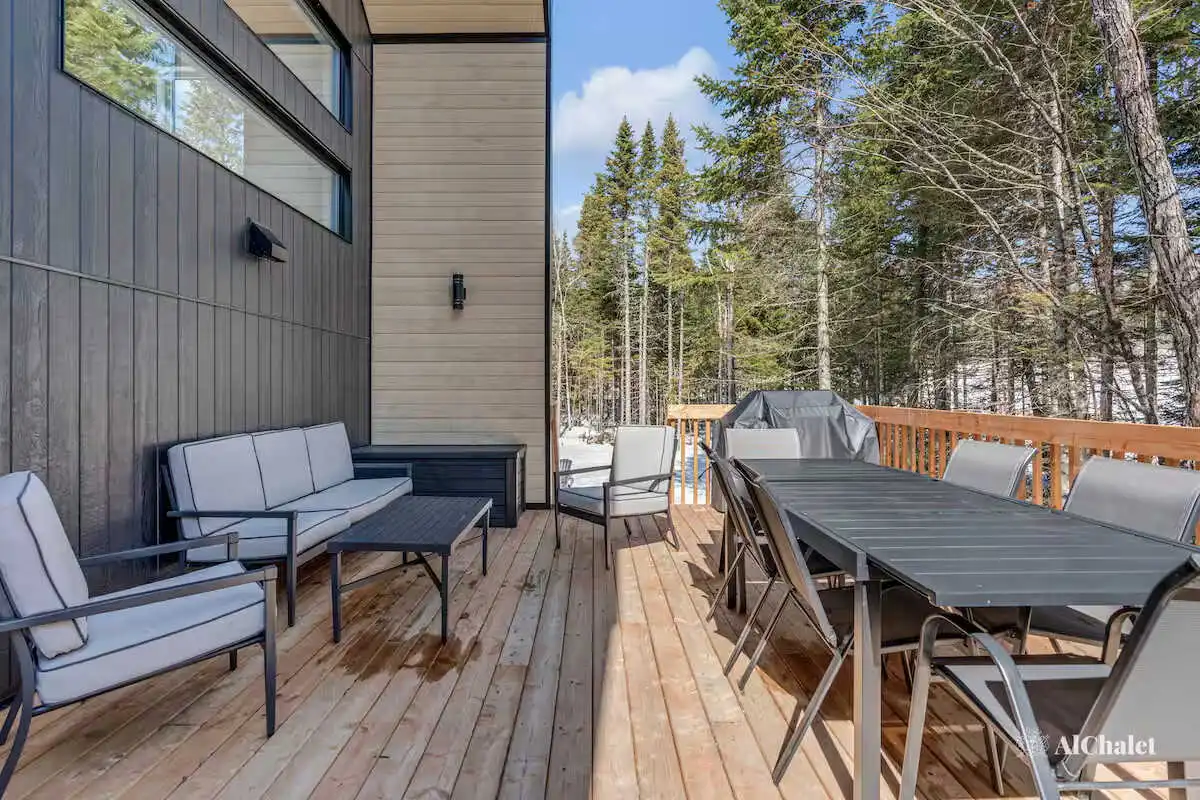 Nos clients ont accès à l'ensemble du chalet et à toutes ses installations. Vous pourrez également profiter des espaces communs avec la terrasse extérieure avec foyer, de la piscine chauffée (été seulement), du spa et du sauna.