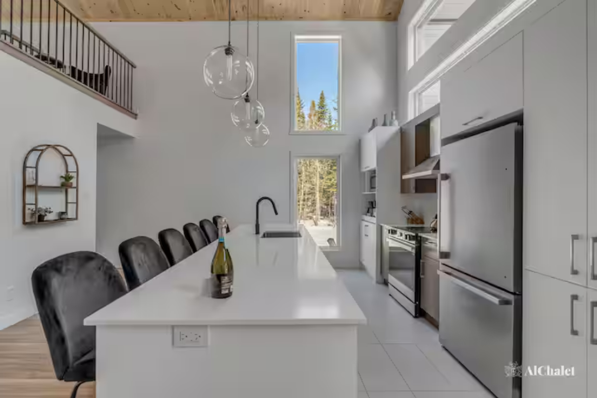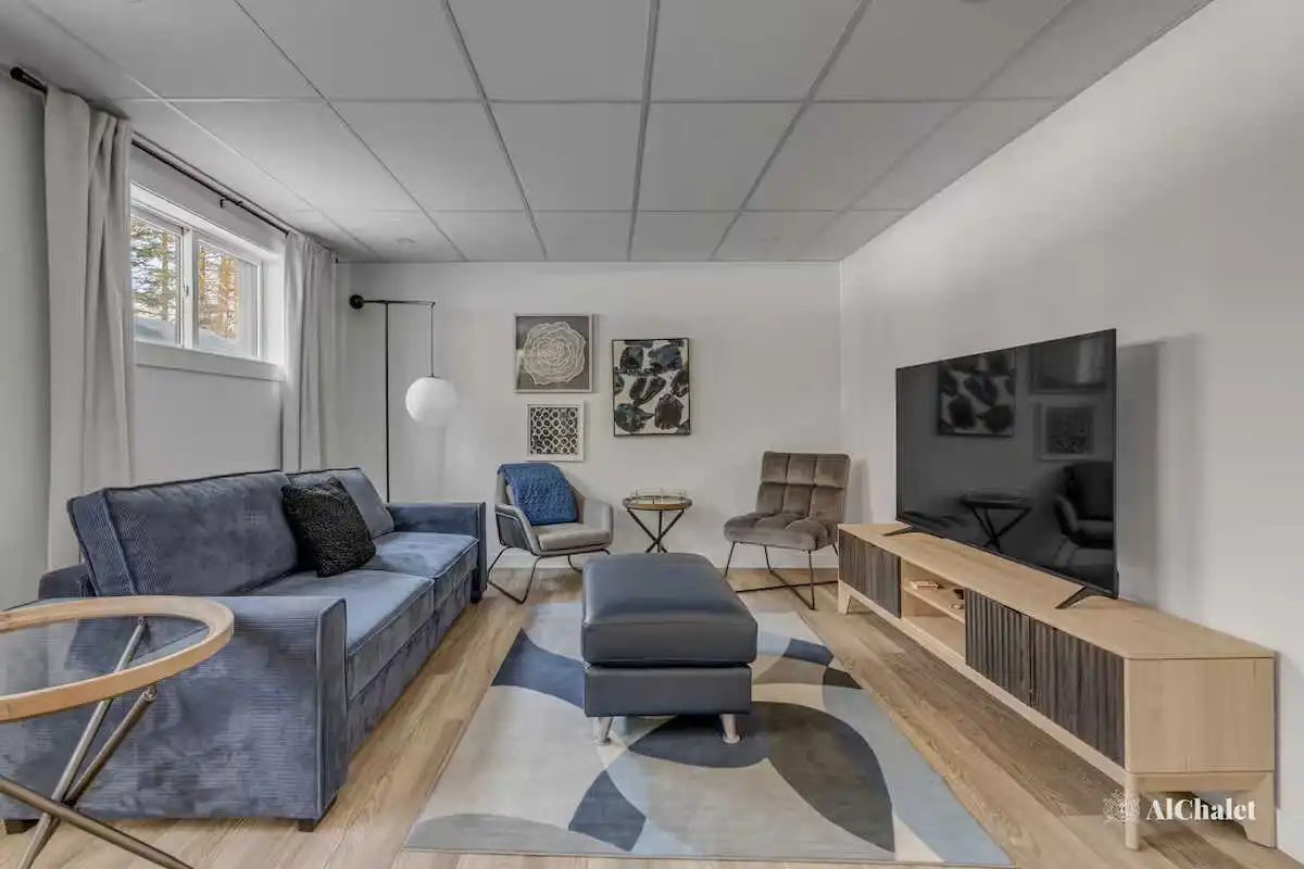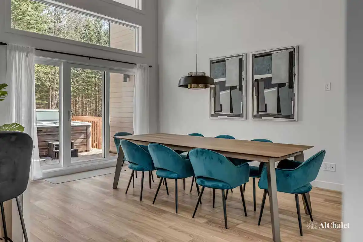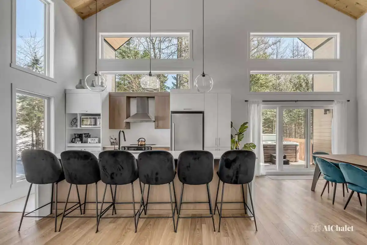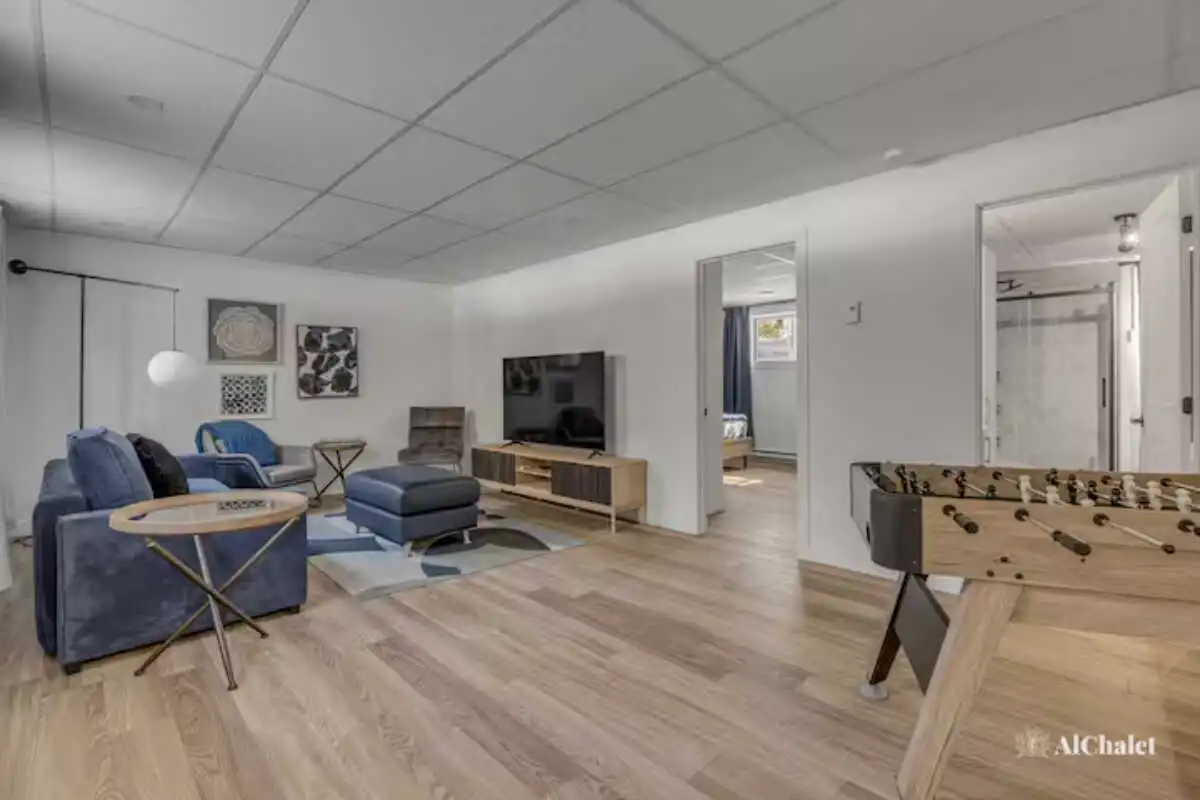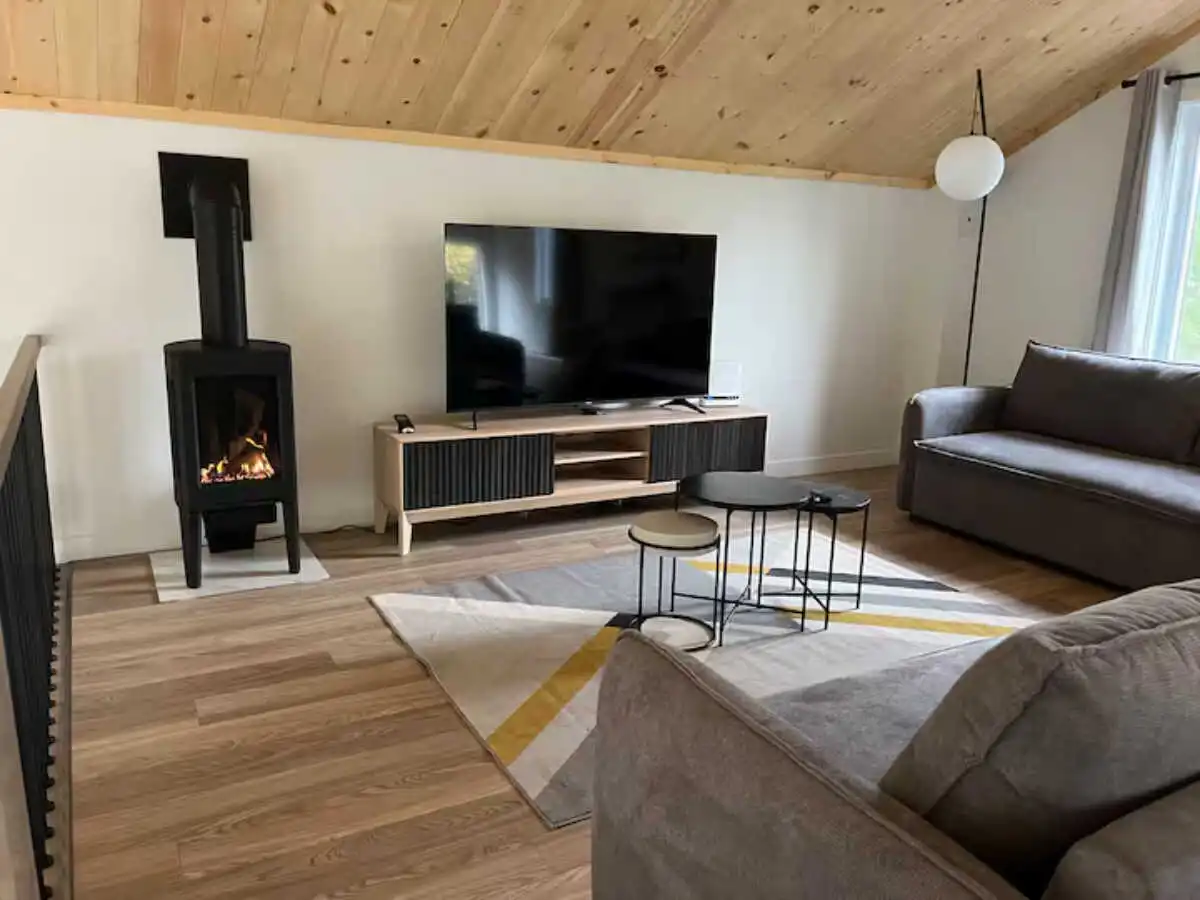 Nos clients ont accès à l'ensemble du chalet et à toutes ses installations. Vous pourrez également profiter des espaces communs avec la terrasse extérieure avec foyer, de la piscine chauffée (été seulement), du spa et du sauna.